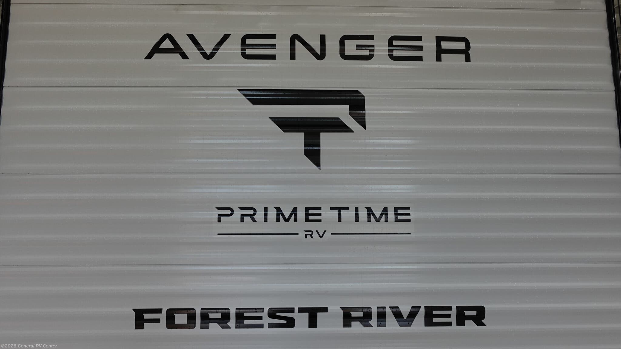 **Prime Time Avenger travel trailer 26DBS highlights:** - Large Slide Out - TV and Fireplace - Oversized Window - Double-Size Bunks You'll appreciate the added space in this travel trailer thanks to the large slide out! The booth dinette and sofa are found here, and there is a moveable storage ottoman for extra blankets or board games. You'll have your own space up front in the private bedroom, complete with a camp king bed and storage for your things, while your guests take the double-size bunk beds towards the back. The chef of your group will find a three burner cooktop and a built-in convection microwave with an air fryer to cook meals, plus there is a 12V refrigerator and large hidden pantry for food storage. This unit also includes a power awning outdoors and an outside refrigerator to keep cold drinks close by. With any Avenger travel trailer by Prime Time RV, you will find innovation, a solid build, and comfort at every turn. Each model is built with Tuff Coat on the exterior metal, a fully enclosed underbelly, and a PVC roof membrane to help extend the life of your trailer. You will also find automotive name badging on the exterior, along with an exterior shower, front rail LED light strips, plus an XL padded entry grab handle to name a few conveniences. There are plenty of storage spaces inside, as well as Congoleum flooring and woven PVC marine grade slide out flooring, a designer shower surround, and seamless pressed countertops. You are sure to appreciate the onboard water filtration system, tankless water heater, plus 30K BTU furnace and 15K ducted A/C to help keep you comfortable.