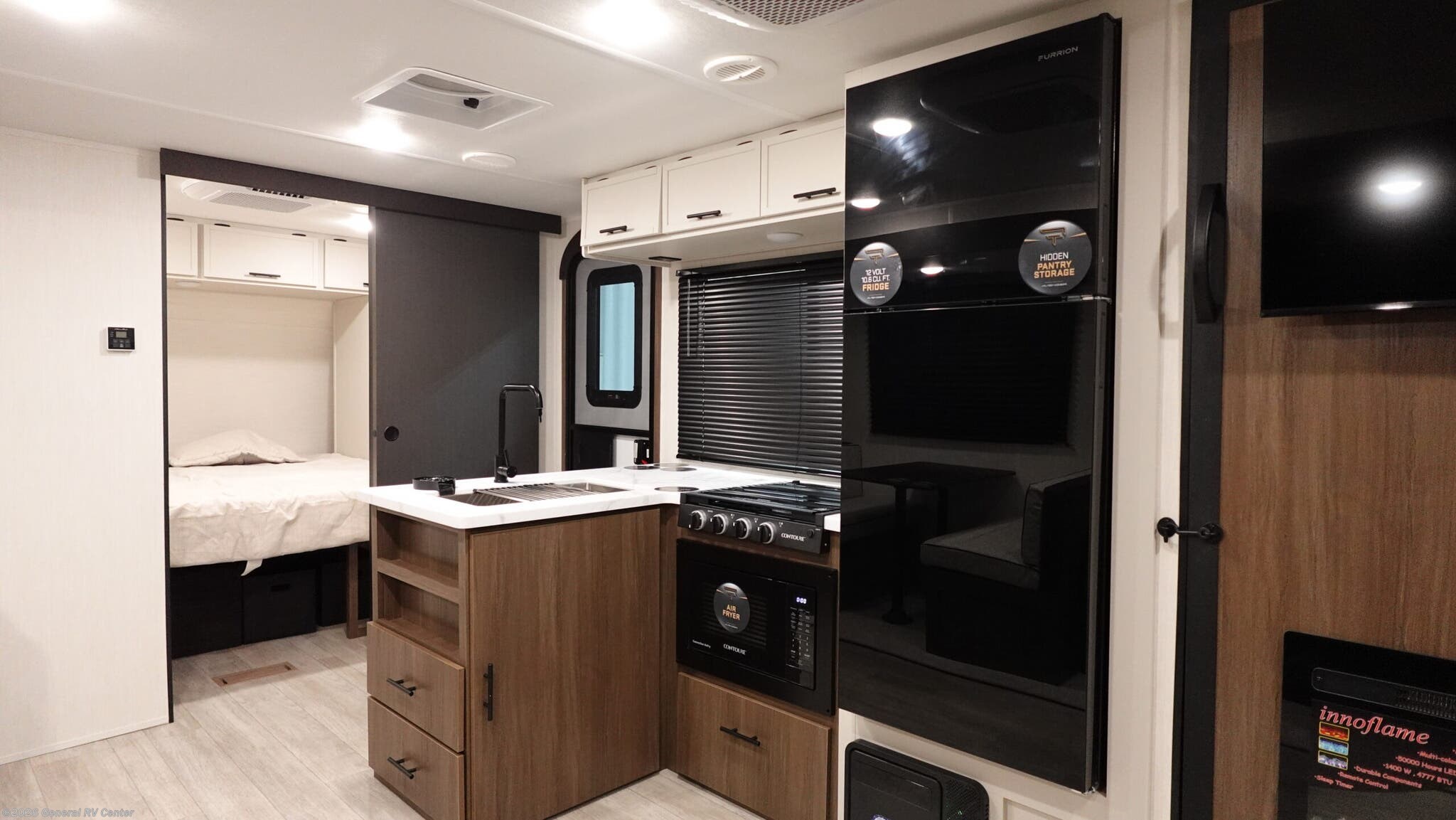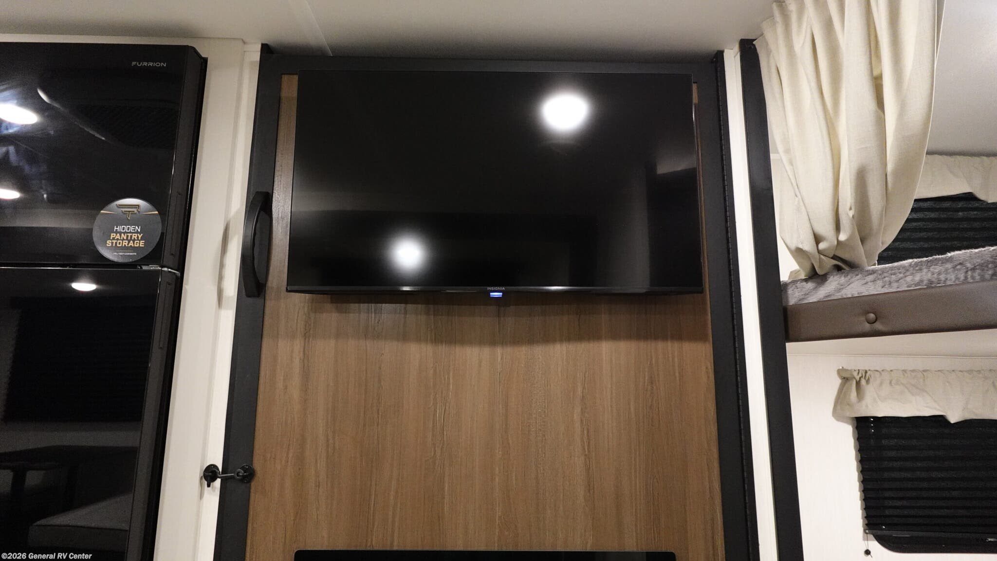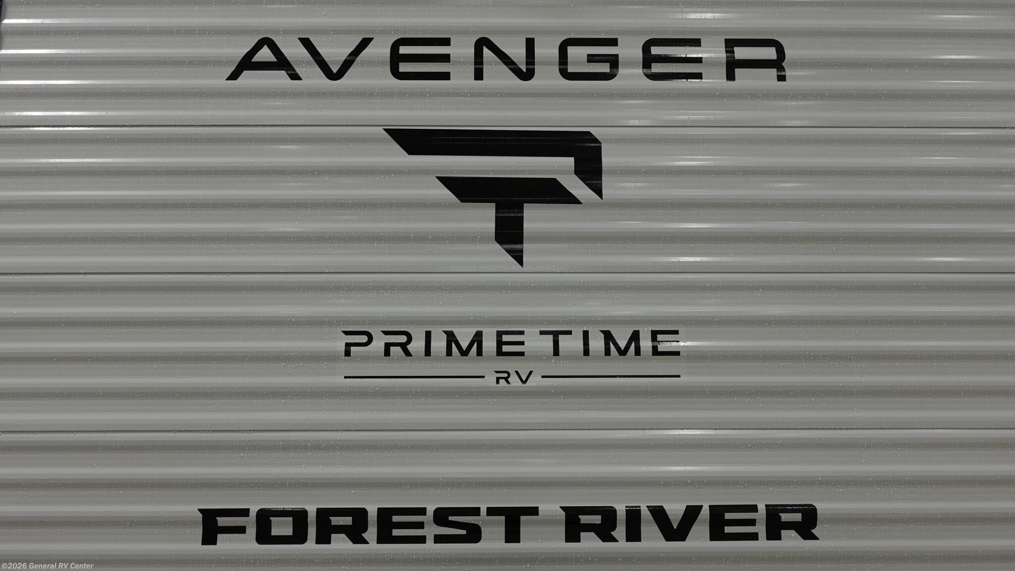 **Prime Time Avenger travel trailer 26DBS highlights:** - Large Slide Out - TV and Fireplace - Oversized Window - Double-Size Bunks You'll appreciate the added space in this travel trailer thanks to the large slide out! The booth dinette and sofa are found here, and there is a moveable storage ottoman for extra blankets or board games. You'll have your own space up front in the private bedroom, complete with a camp king bed and storage for your things, while your guests take the double-size bunk beds towards the back. The chef of your group will find a three burner cooktop and a built-in convection microwave with an air fryer to cook meals, plus there is a 12V refrigerator and large hidden pantry for food storage. This unit also includes a power awning outdoors and an outside refrigerator to keep cold drinks close by. With any Avenger travel trailer by Prime Time RV, you will find innovation, a solid build, and comfort at every turn. Each model is built with Tuff Coat on the exterior metal, a fully enclosed underbelly, and a PVC roof membrane to help extend the life of your trailer. You will also find automotive name badging on the exterior, along with an exterior shower, front rail LED light strips, plus an XL padded entry grab handle to name a few conveniences. There are plenty of storage spaces inside, as well as Congoleum flooring and woven PVC marine grade slide out flooring, a designer shower surround, and seamless pressed countertops. You are sure to appreciate the onboard water filtration system, tankless water heater, plus 30K BTU furnace and 15K ducted A/C to help keep you comfortable.