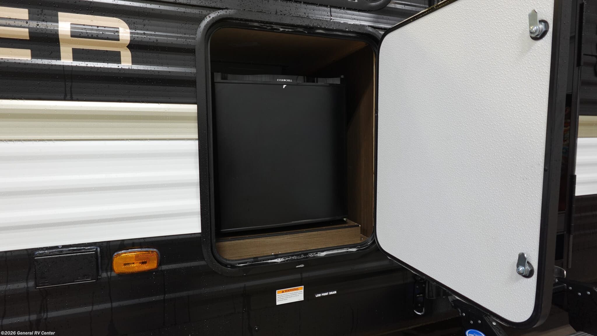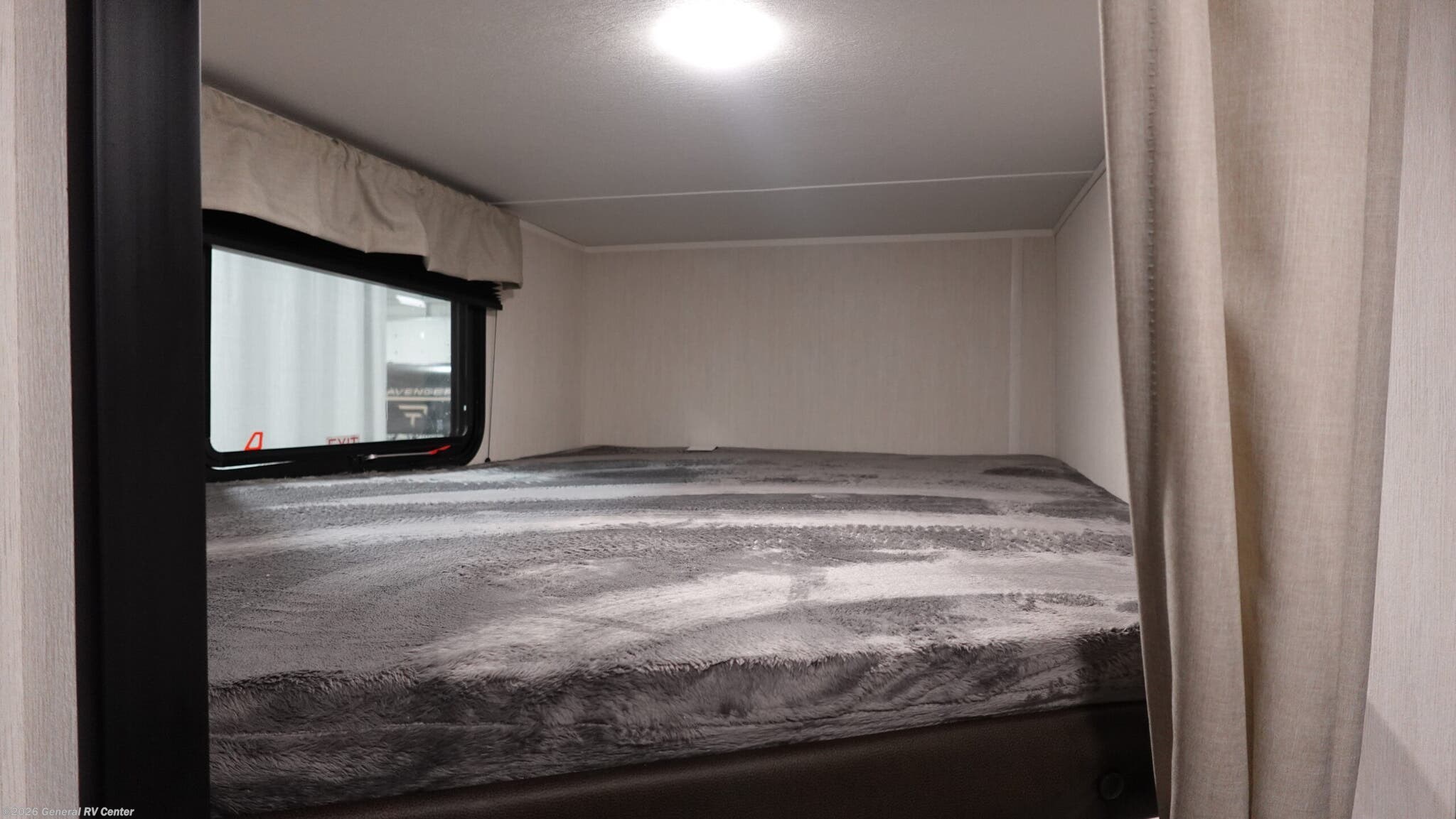 **Prime Time Avenger travel trailer 26DBS highlights:** - Large Slide Out - TV and Fireplace - Oversized Window - Double-Size Bunks You'll appreciate the added space in this travel trailer thanks to the large slide out! The booth dinette and sofa are found here, and there is a moveable storage ottoman for extra blankets or board games. You'll have your own space up front in the private bedroom, complete with a camp king bed and storage for your things, while your guests take the double-size bunk beds towards the back. The chef of your group will find a three burner cooktop and a built-in convection microwave with an air fryer to cook meals, plus there is a 12V refrigerator and large hidden pantry for food storage. This unit also includes a power awning outdoors and an outside refrigerator to keep cold drinks close by. With any Avenger travel trailer by Prime Time RV, you will find innovation, a solid build, and comfort at every turn. Each model is built with Tuff Coat on the exterior metal, a fully enclosed underbelly, and a PVC roof membrane to help extend the life of your trailer. You will also find automotive name badging on the exterior, along with an exterior shower, front rail LED light strips, plus an XL padded entry grab handle to name a few conveniences. There are plenty of storage spaces inside, as well as Congoleum flooring and woven PVC marine grade slide out flooring, a designer shower surround, and seamless pressed countertops. You are sure to appreciate the onboard water filtration system, tankless water heater, plus 30K BTU furnace and 15K ducted A/C to help keep you comfortable.