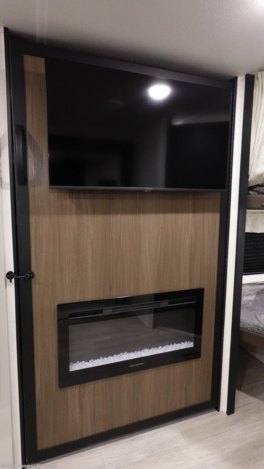 **Prime Time Avenger travel trailer 26DBS highlights:** - Large Slide Out - TV and Fireplace - Oversized Window - Double-Size Bunks You'll appreciate the added space in this travel trailer thanks to the large slide out! The booth dinette and sofa are found here, and there is a moveable storage ottoman for extra blankets or board games. You'll have your own space up front in the private bedroom, complete with a camp king bed and storage for your things, while your guests take the double-size bunk beds towards the back. The chef of your group will find a three burner cooktop and a built-in convection microwave with an air fryer to cook meals, plus there is a 12V refrigerator and large hidden pantry for food storage. This unit also includes a power awning outdoors and an outside refrigerator to keep cold drinks close by. With any Avenger travel trailer by Prime Time RV, you will find innovation, a solid build, and comfort at every turn. Each model is built with Tuff Coat on the exterior metal, a fully enclosed underbelly, and a PVC roof membrane to help extend the life of your trailer. You will also find automotive name badging on the exterior, along with an exterior shower, front rail LED light strips, plus an XL padded entry grab handle to name a few conveniences. There are plenty of storage spaces inside, as well as Congoleum flooring and woven PVC marine grade slide out flooring, a designer shower surround, and seamless pressed countertops. You are sure to appreciate the onboard water filtration system, tankless water heater, plus 30K BTU furnace and 15K ducted A/C to help keep you comfortable.