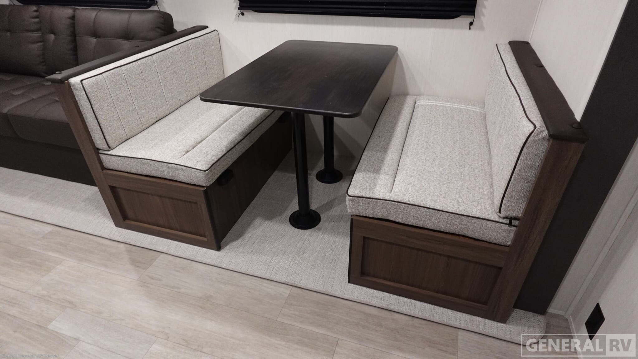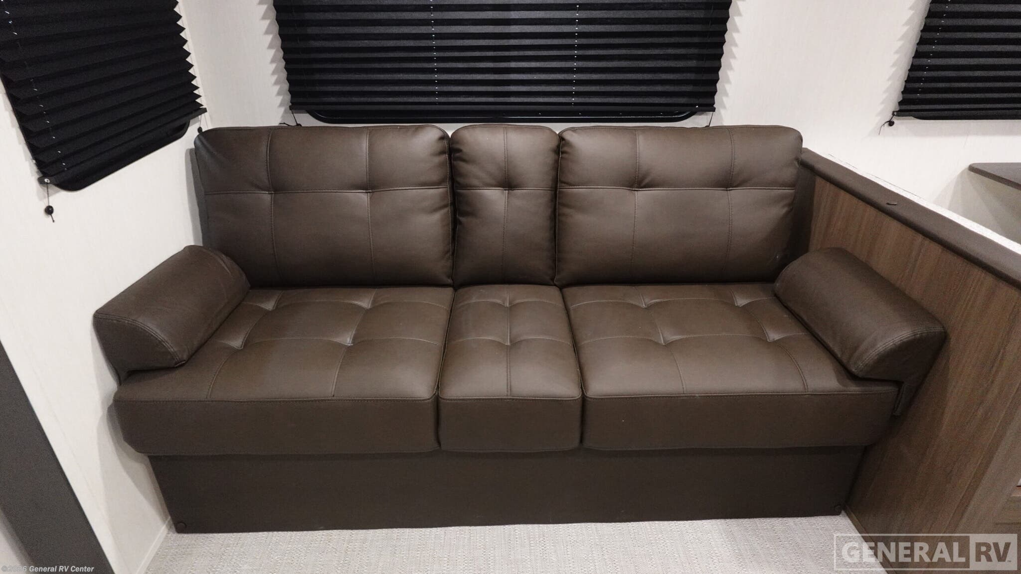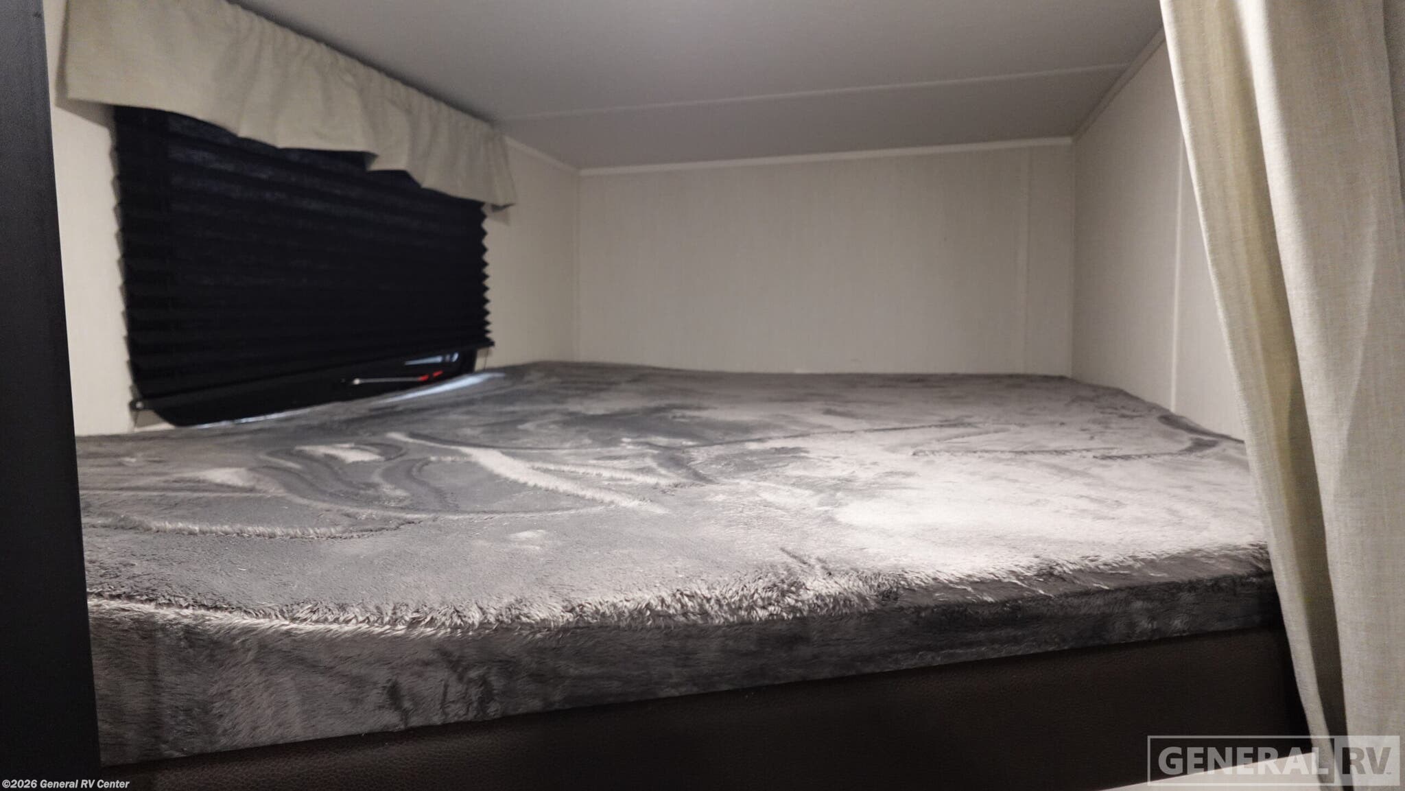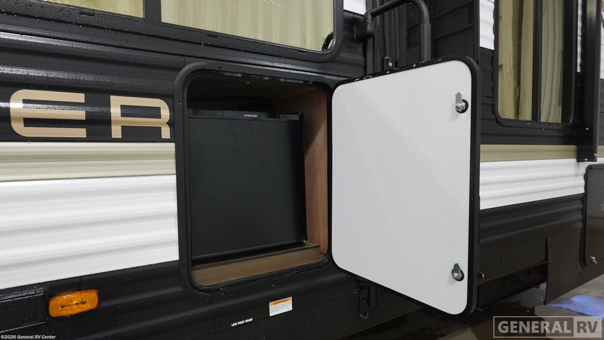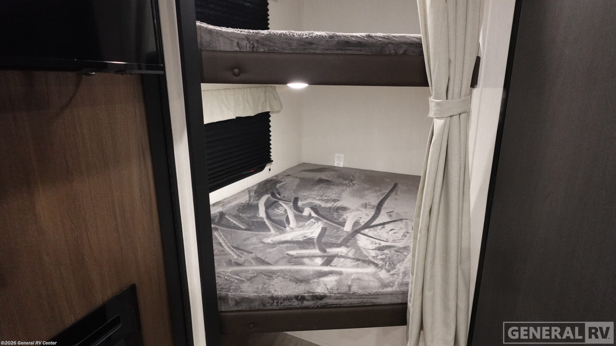 Prime Time Avenger travel trailer 26DBS highlights: Large Slide Out TV and Fireplace Oversized Window Double-Size Bunks You'll appreciate the added space in this travel trailer thanks to the large slide out! The booth dinette and sofa are found here, and there is a moveable storage ottoman for extra blankets or board games. You'll have your own space up front in the private bedroom, complete with a camp king bed and storage for your things, while your guests take the double-size bunk beds towards the back. The chef of your group will find a three burner cooktop and a built-in convection microwave with an air fryer to cook meals, plus there is a 12V refrigerator and large hidden pantry for food storage. This unit also includes a power awning outdoors and an outside refrigerator to keep cold drinks close by. With any Avenger travel trailer by Prime Time RV, you will find innovation, a solid build, and comfort at every turn. Each model is built with Tuff Coat on the exterior metal, a fully enclosed underbelly, and a PVC roof membrane to help extend the life of your trailer. You will also find automotive name badging on the exterior, along with an exterior shower, front rail LED light strips, plus an XL padded entry grab handle to name a few conveniences. There are plenty of storage spaces inside, as well as Congoleum flooring and woven PVC marine grade slide out flooring, a designer shower surround, and seamless pressed countertops. You are sure to appreciate the onboard water filtration system, tankless water heater, plus 30K BTU furnace and 15K ducted A/C to help keep you comfortable.
