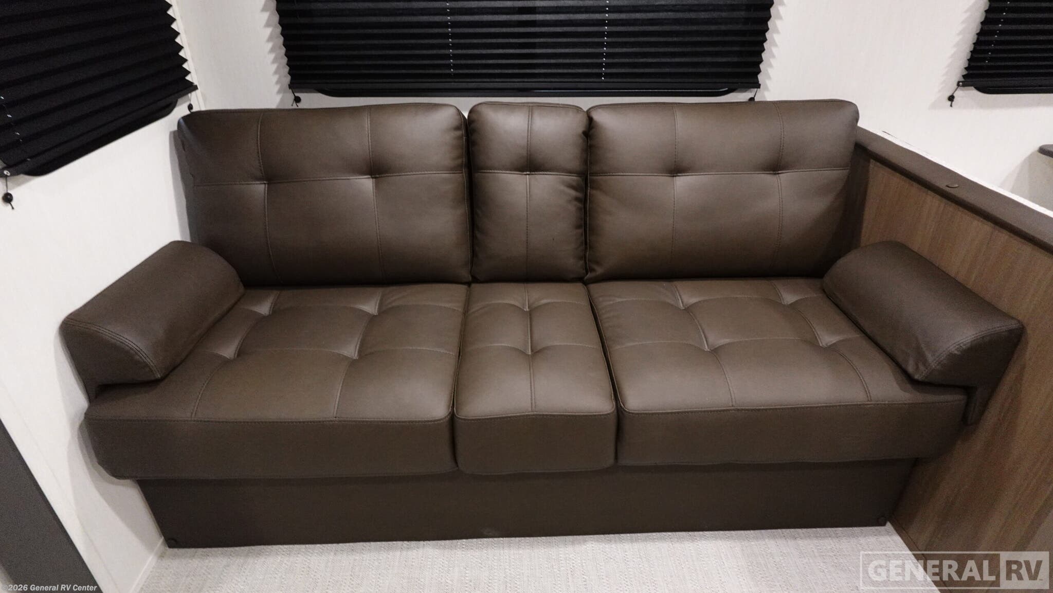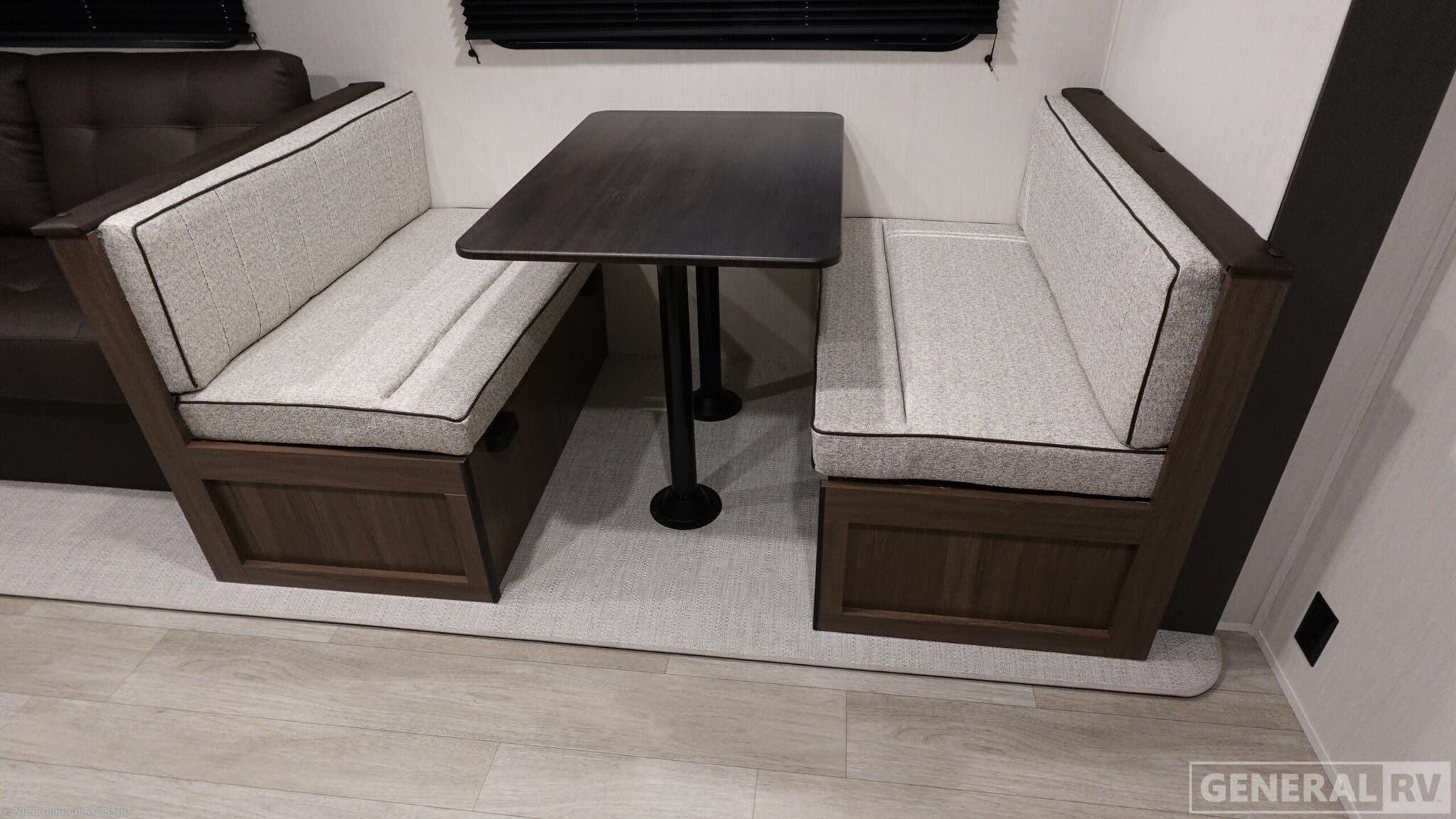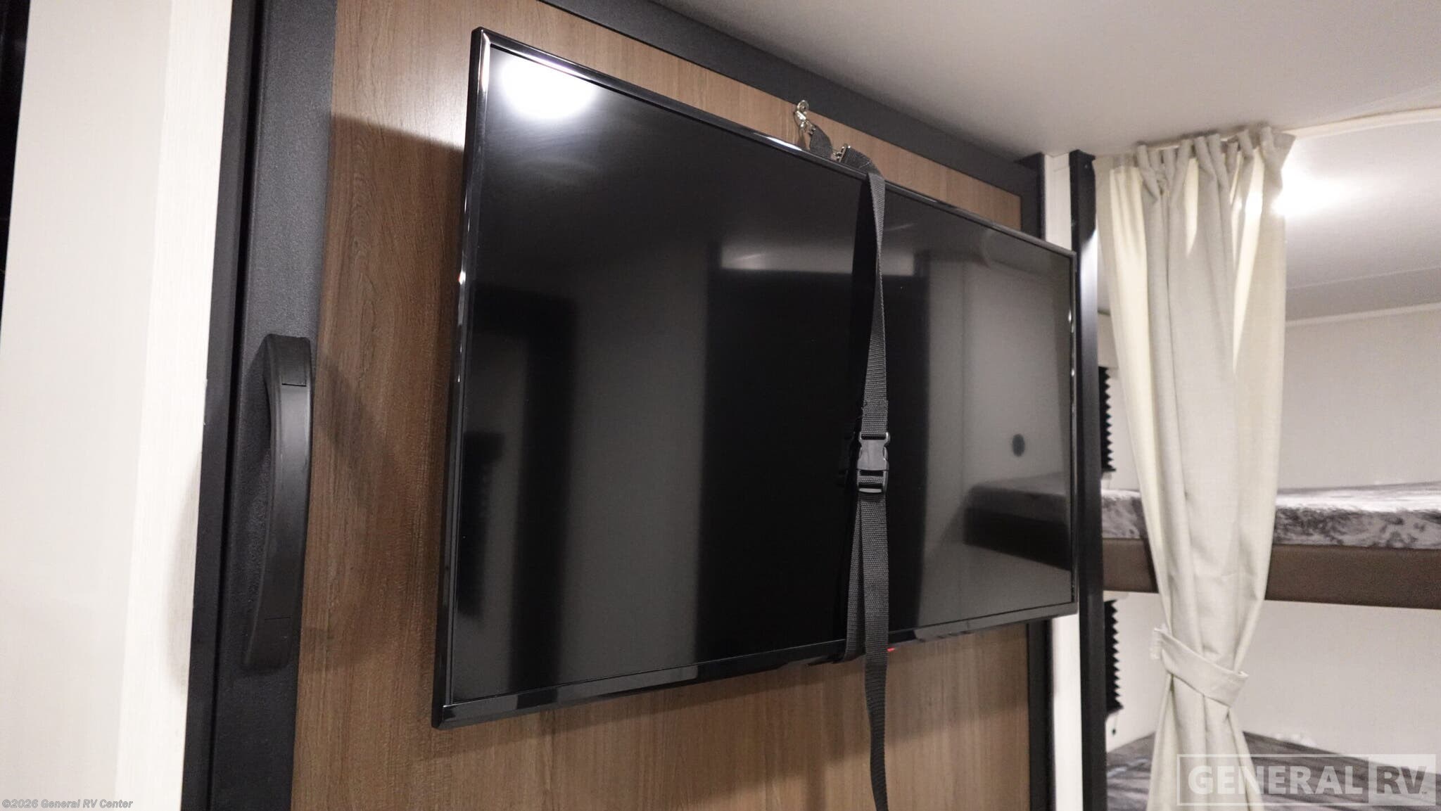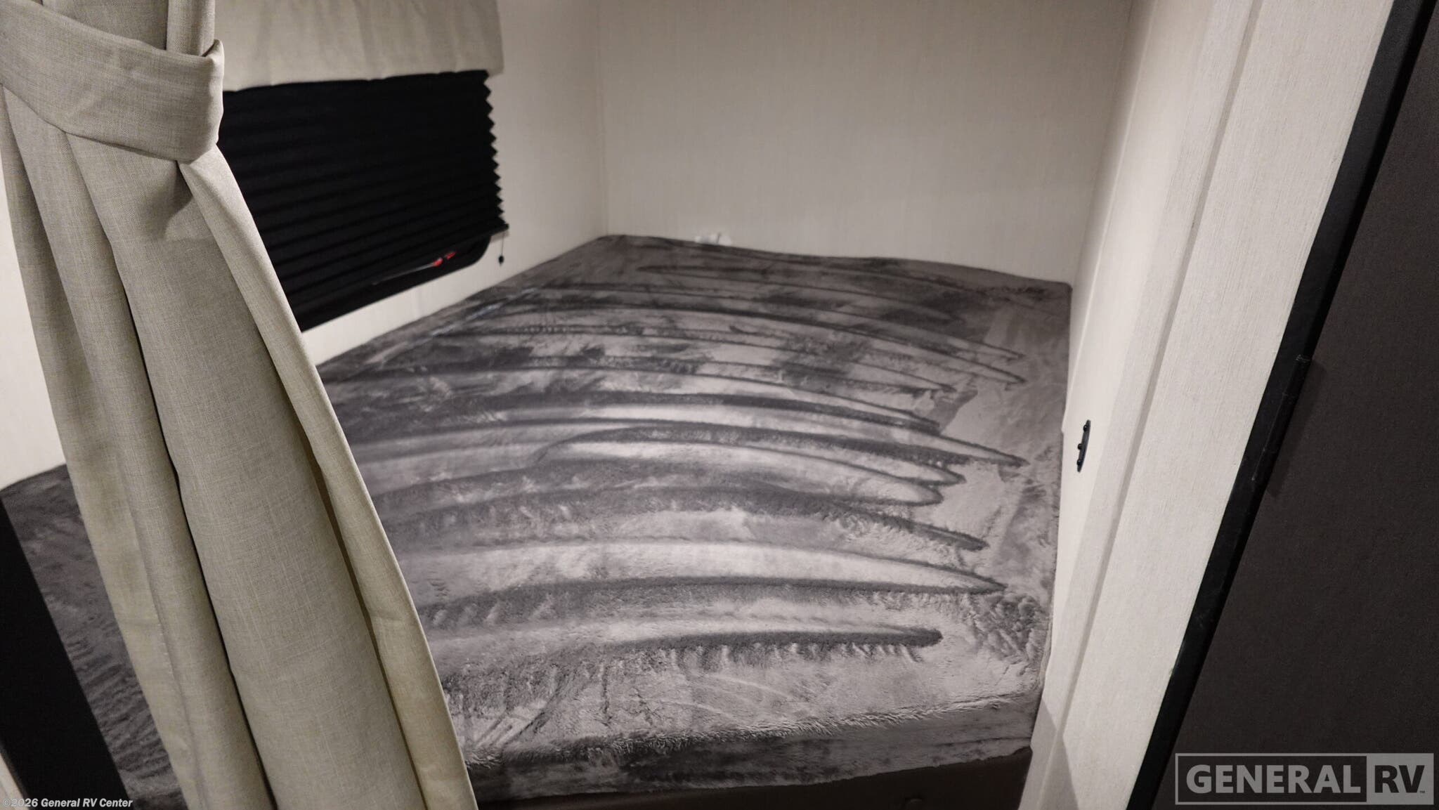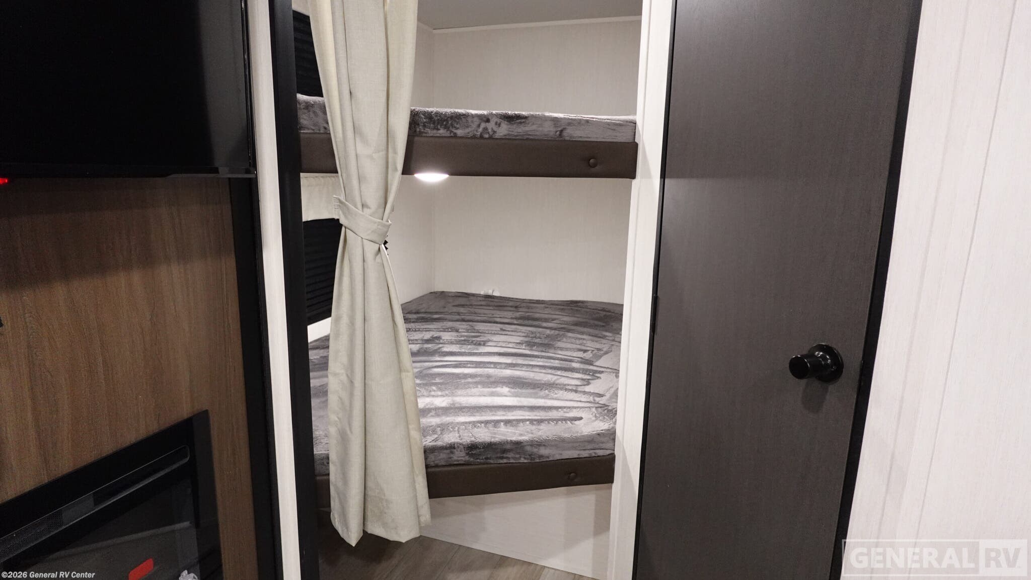 Prime Time Avenger travel trailer 26DBS highlights: Large Slide Out TV and Fireplace Oversized Window Double-Size Bunks You'll appreciate the added space in this travel trailer thanks to the large slide out! The booth dinette and sofa are found here, and there is a moveable storage ottoman for extra blankets or board games. You'll have your own space up front in the private bedroom, complete with a camp king bed and storage for your things, while your guests take the double-size bunk beds towards the back. The chef of your group will find a three burner cooktop and a built-in convection microwave with an air fryer to cook meals, plus there is a 12V refrigerator and large hidden pantry for food storage. This unit also includes a power awning outdoors and an outside refrigerator to keep cold drinks close by. With any Avenger travel trailer by Prime Time RV, you will find innovation, a solid build, and comfort at every turn. Each model is built with Tuff Coat on the exterior metal, a fully enclosed underbelly, and a PVC roof membrane to help extend the life of your trailer. You will also find automotive name badging on the exterior, along with an exterior shower, front rail LED light strips, plus an XL padded entry grab handle to name a few conveniences. There are plenty of storage spaces inside, as well as Congoleum flooring and woven PVC marine grade slide out flooring, a designer shower surround, and seamless pressed countertops. You are sure to appreciate the onboard water filtration system, tankless water heater, plus 30K BTU furnace and 15K ducted A/C to help keep you comfortable.