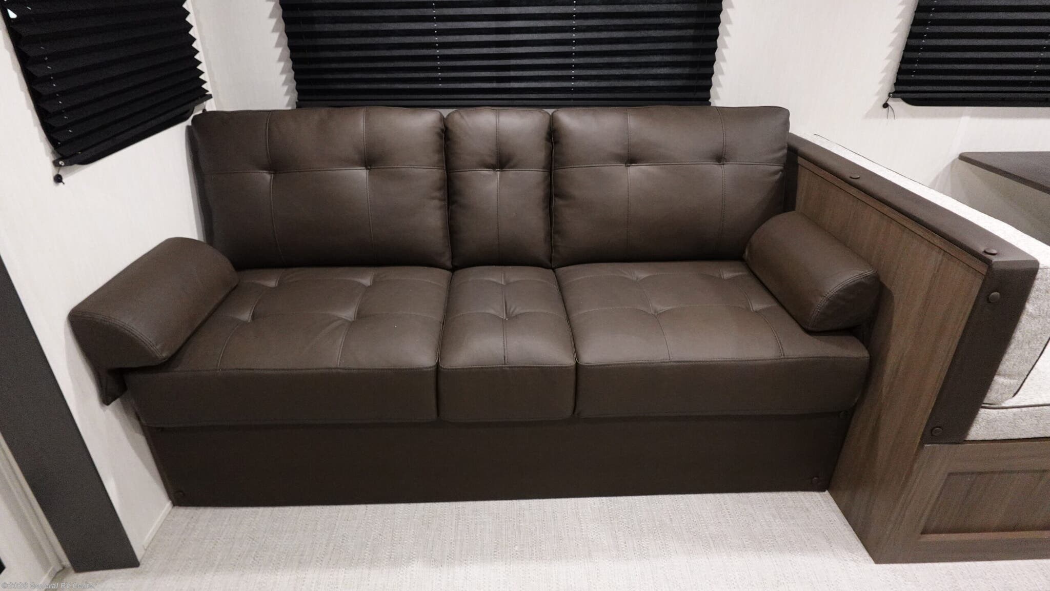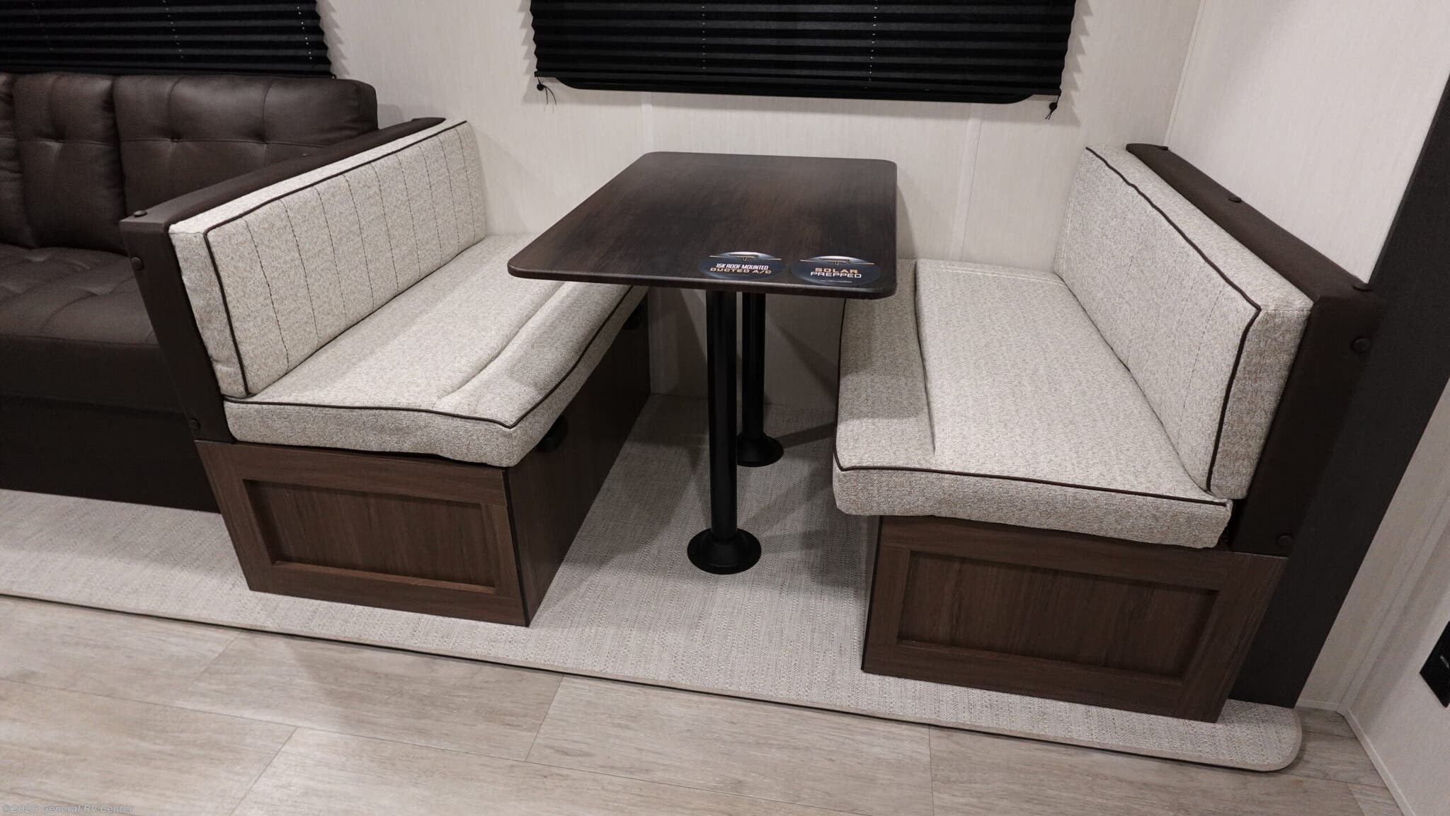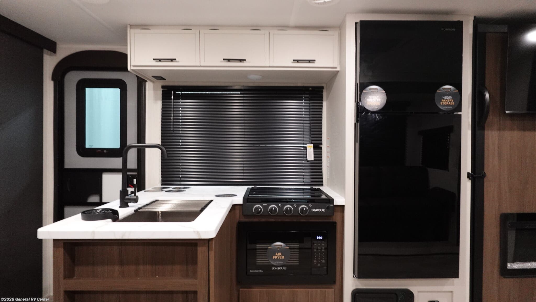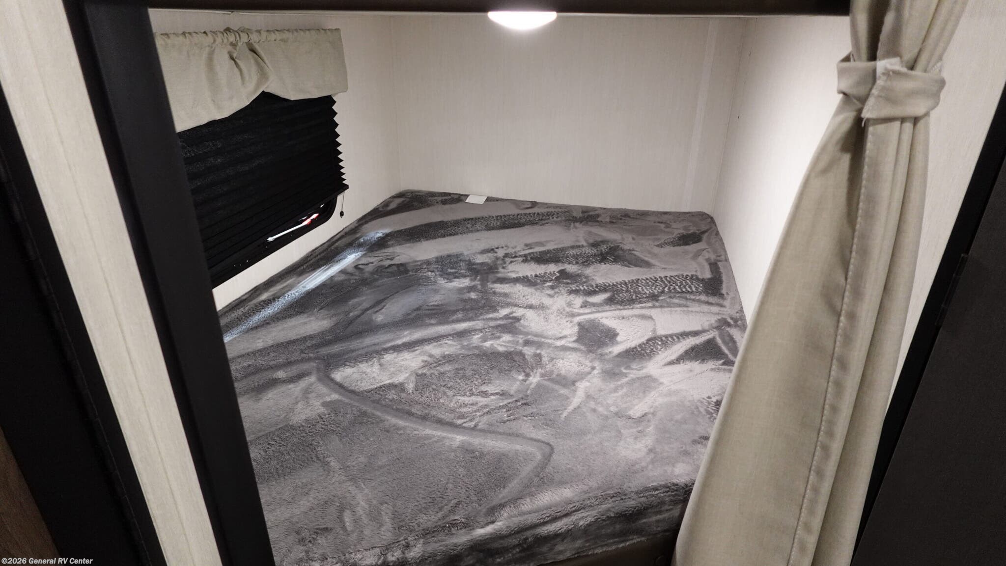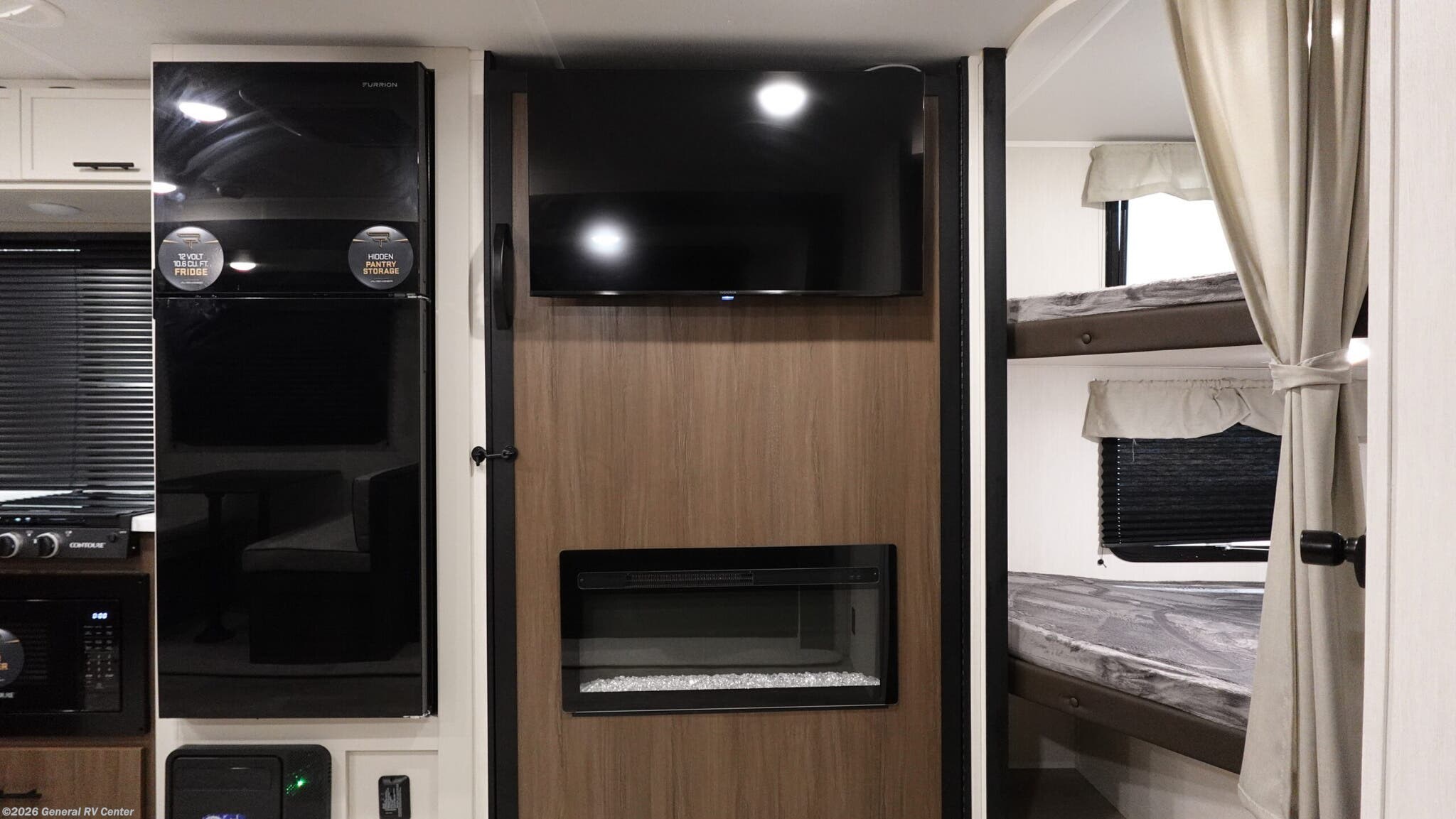 Prime Time Avenger travel trailer 26DBS highlights: Large Slide Out TV and Fireplace Oversized Window Double-Size Bunks You'll appreciate the added space in this travel trailer thanks to the large slide out! The booth dinette and sofa are found here, and there is a moveable storage ottoman for extra blankets or board games. You'll have your own space up front in the private bedroom, complete with a camp king bed and storage for your things, while your guests take the double-size bunk beds towards the back. The chef of your group will find a three burner cooktop and a built-in convection microwave with an air fryer to cook meals, plus there is a 12V refrigerator and large hidden pantry for food storage. This unit also includes a power awning outdoors and an outside refrigerator to keep cold drinks close by. With any Avenger travel trailer by Prime Time RV, you will find innovation, a solid build, and comfort at every turn. Each model is built with Tuff Coat on the exterior metal, a fully enclosed underbelly, and a PVC roof membrane to help extend the life of your trailer. You will also find automotive name badging on the exterior, along with an exterior shower, front rail LED light strips, plus an XL padded entry grab handle to name a few conveniences. There are plenty of storage spaces inside, as well as Congoleum flooring and woven PVC marine grade slide out flooring, a designer shower surround, and seamless pressed countertops. You are sure to appreciate the onboard water filtration system, tankless water heater, plus 30K BTU furnace and 15K ducted A/C to help keep you comfortable.