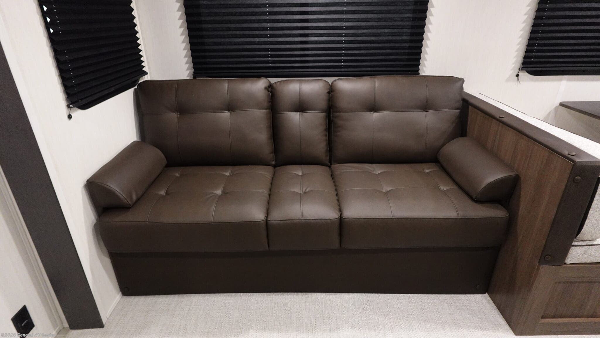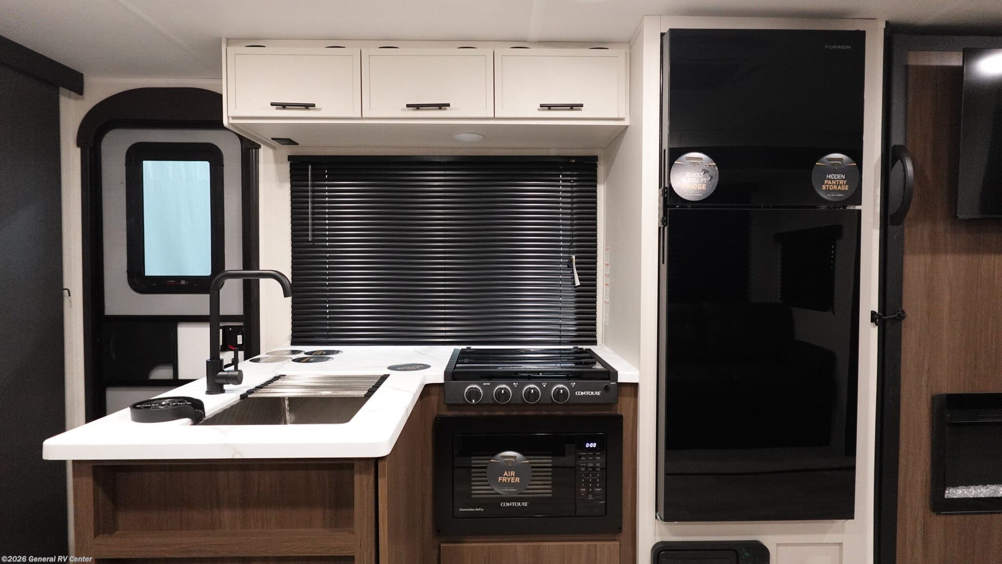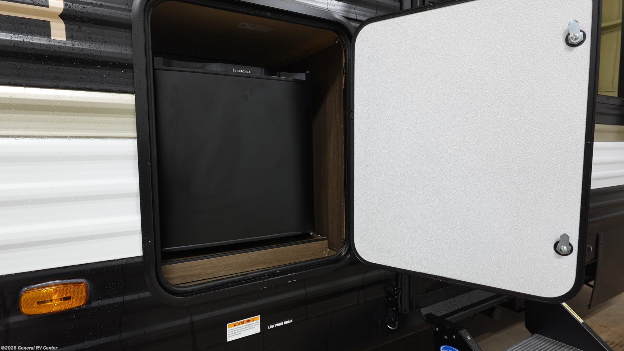**Prime Time Avenger travel trailer 26DBS highlights:** - Large Slide Out - TV and Fireplace - Oversized Window - Double-Size Bunks You'll appreciate the added space in this travel trailer thanks to the large slide out! The booth dinette and sofa are found here, and there is a moveable storage ottoman for extra blankets or board games. You'll have your own space up front in the private bedroom, complete with a camp king bed and storage for your things, while your guests take the double-size bunk beds towards the back. The chef of your group will find a three burner cooktop and a built-in convection microwave with an air fryer to cook meals, plus there is a 12V refrigerator and large hidden pantry for food storage. This unit also includes a power awning outdoors and an outside refrigerator to keep cold drinks close by. With any Avenger travel trailer by Prime Time RV, you will find innovation, a solid build, and comfort at every turn. Each model is built with Tuff Coat on the exterior metal, a fully enclosed underbelly, and a PVC roof membrane to help extend the life of your trailer. You will also find automotive name badging on the exterior, along with an exterior shower, front rail LED light strips, plus an XL padded entry grab handle to name a few conveniences. There are plenty of storage spaces inside, as well as Congoleum flooring and woven PVC marine grade slide out flooring, a designer shower surround, and seamless pressed countertops. You are sure to appreciate the onboard water filtration system, tankless water heater, plus 30K BTU furnace and 15K ducted A/C to help keep you comfortable.