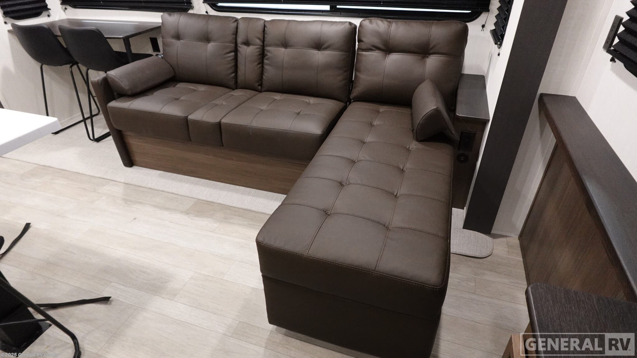 Prime Time Avenger travel trailer 27REI highlights: Dual Opposing Slides Camp King Bed Spacious Full Bath Best-In-Class Pass-Thru Storage There is ample space to move about in this travel trailer thanks to the dual opposing slides! Here, you'll find an L-shaped sofa with a chaise lounge in direct view of TV and fireplace. There is also a hidden pantry behind the TV for snacks and movies! The center farm table includes four stools so you can gather around for meal times, and the desk with a chair will provide a place for you to get some work done if needed. This unit features a full bath towards the front private bedroom for easy access at night, and you're sure to get a great night's rest on the camp king bed! With any Avenger travel trailer by Prime Time RV, you will find innovation, a solid build, and comfort at every turn. Each model is built with Tuff Coat on the exterior metal, a fully enclosed underbelly, and a PVC roof membrane to help extend the life of your trailer. You will also find automotive name badging on the exterior, along with an exterior shower, front rail LED light strips, plus an XL padded entry grab handle to name a few conveniences. There are plenty of storage spaces inside, as well as Congoleum flooring and woven PVC marine grade slide out flooring, a designer shower surround, and seamless pressed countertops. You are sure to appreciate the onboard water filtration system, tankless water heater, plus 30K BTU furnace and 15K ducted A/C to help keep you comfortable.