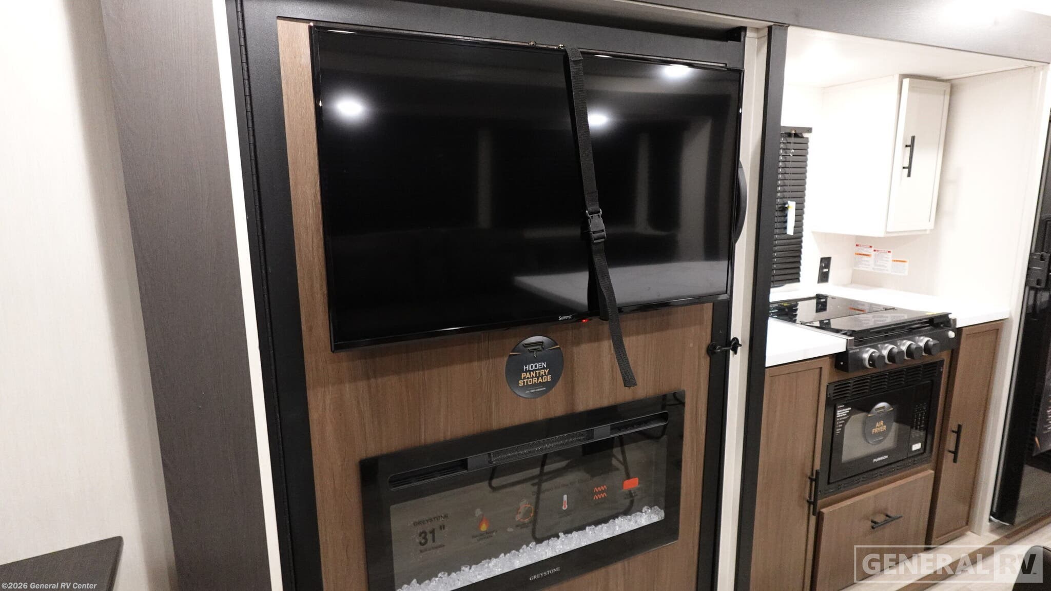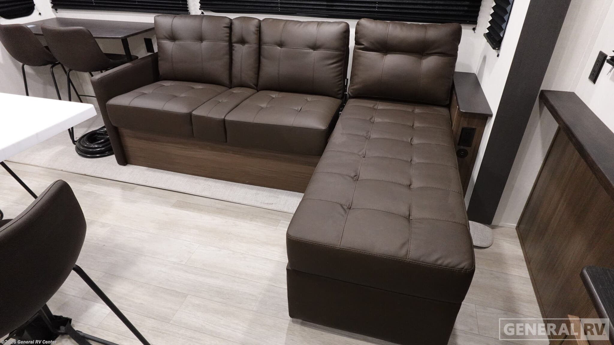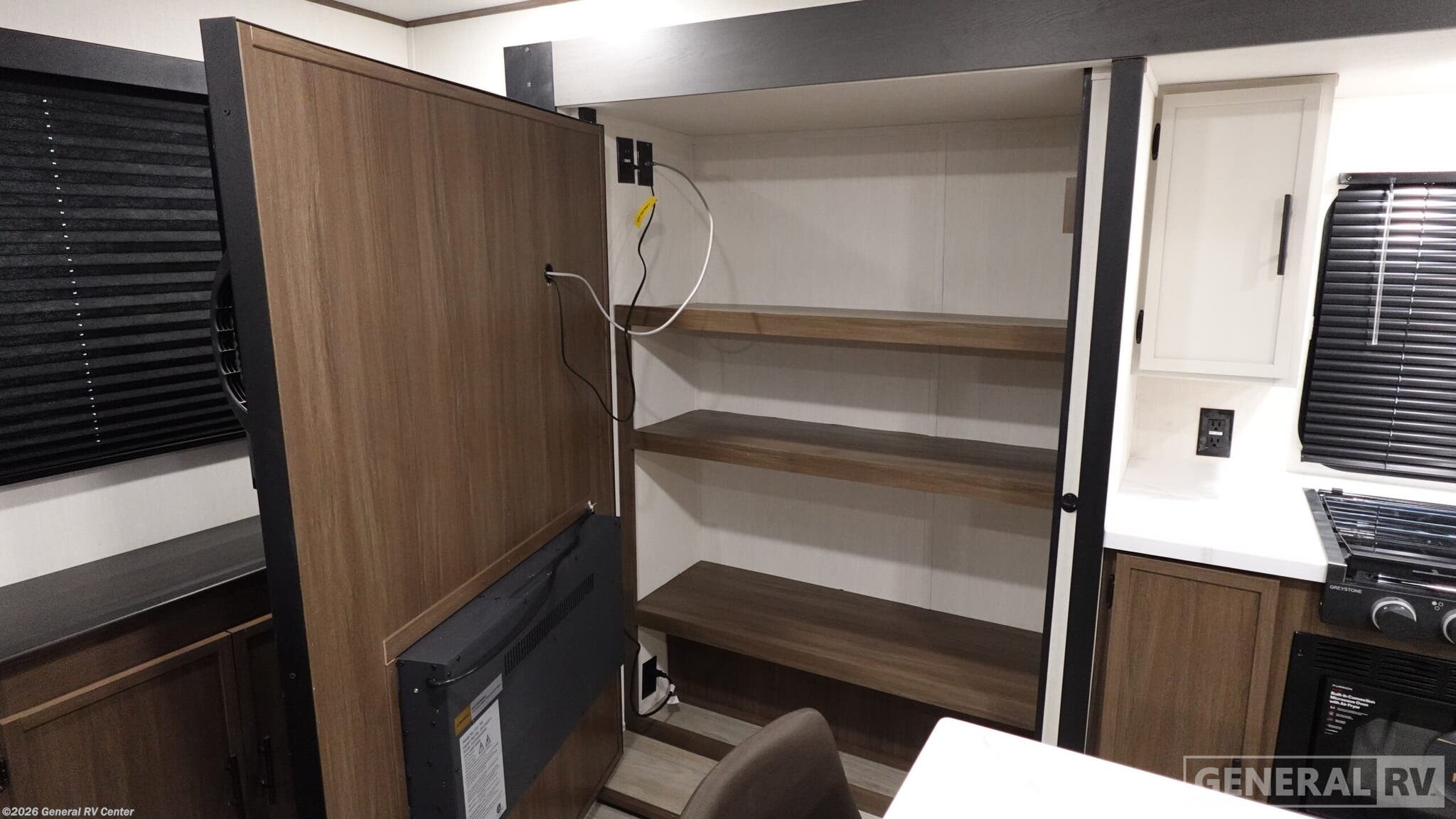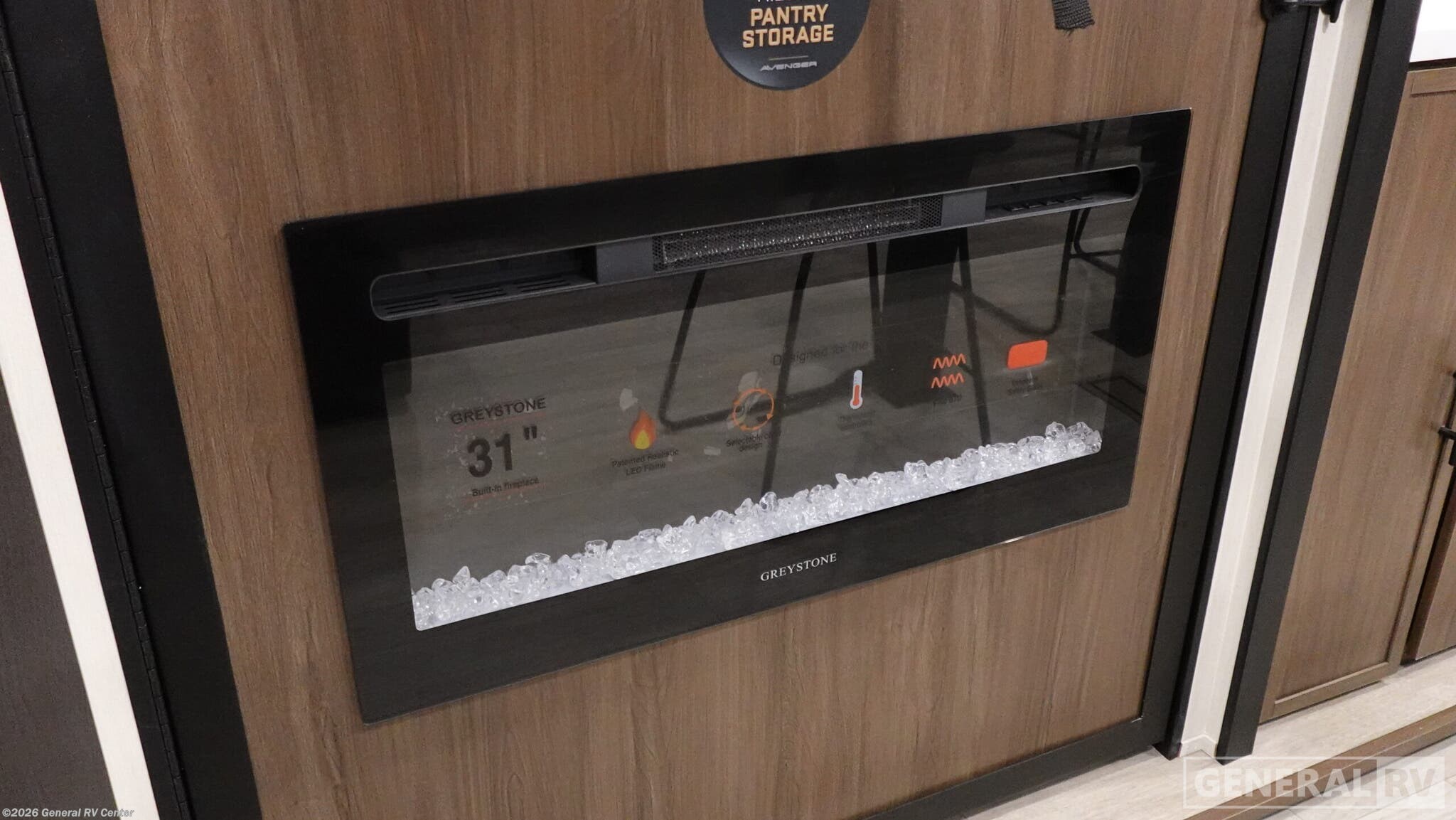 Prime Time Avenger travel trailer 27REI highlights: Dual Opposing Slides Camp King Bed Spacious Full Bath Best-In-Class Pass-Thru Storage There is ample space to move about in this travel trailer thanks to the dual opposing slides! Here, you'll find an L-shaped sofa with a chaise lounge in direct view of TV and fireplace. There is also a hidden pantry behind the TV for snacks and movies! The center farm table includes four stools so you can gather around for meal times, and the desk with a chair will provide a place for you to get some work done if needed. This unit features a full bath towards the front private bedroom for easy access at night, and you're sure to get a great night's rest on the camp king bed! With any Avenger travel trailer by Prime Time RV, you will find innovation, a solid build, and comfort at every turn. Each model is built with Tuff Coat on the exterior metal, a fully enclosed underbelly, and a PVC roof membrane to help extend the life of your trailer. You will also find automotive name badging on the exterior, along with an exterior shower, front rail LED light strips, plus an XL padded entry grab handle to name a few conveniences. There are plenty of storage spaces inside, as well as Congoleum flooring and woven PVC marine grade slide out flooring, a designer shower surround, and seamless pressed countertops. You are sure to appreciate the onboard water filtration system, tankless water heater, plus 30K BTU furnace and 15K ducted A/C to help keep you comfortable.