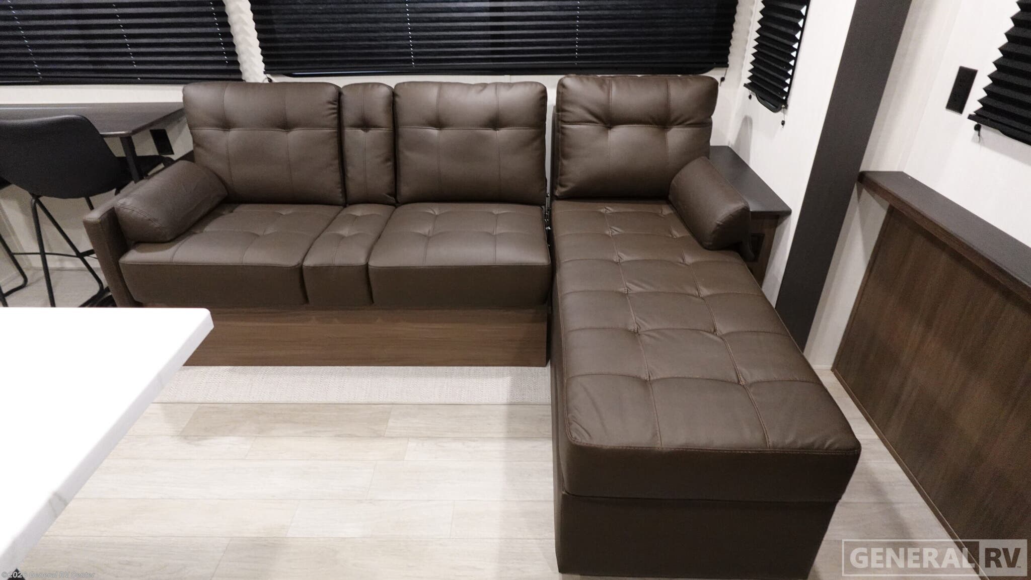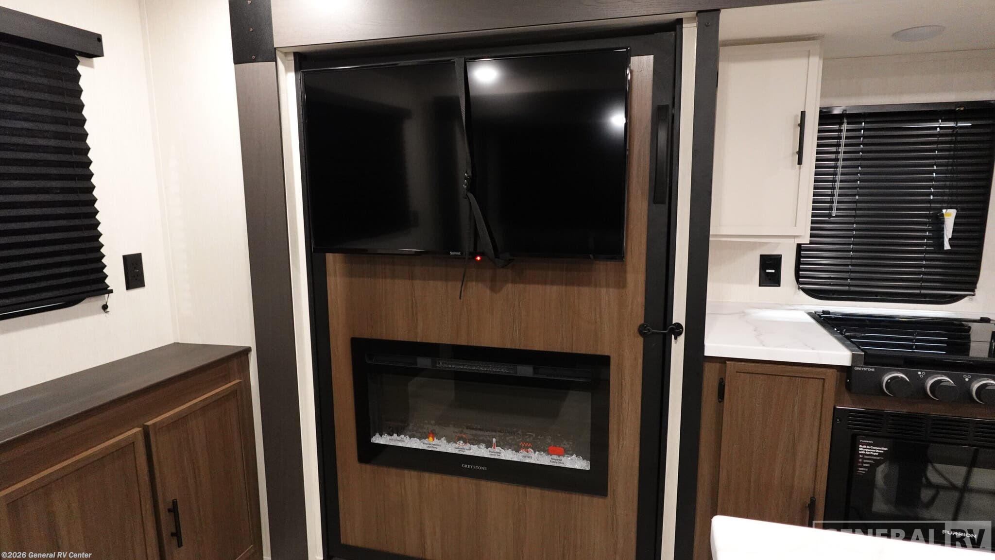 Prime Time Avenger travel trailer 27REI highlights: Dual Opposing Slides Camp King Bed Spacious Full Bath Best-In-Class Pass-Thru Storage There is ample space to move about in this travel trailer thanks to the dual opposing slides! Here, you'll find an L-shaped sofa with a chaise lounge in direct view of TV and fireplace. There is also a hidden pantry behind the TV for snacks and movies! The center farm table includes four stools so you can gather around for meal times, and the desk with a chair will provide a place for you to get some work done if needed. This unit features a full bath towards the front private bedroom for easy access at night, and you're sure to get a great night's rest on the camp king bed! With any Avenger travel trailer by Prime Time RV, you will find innovation, a solid build, and comfort at every turn. Each model is built with Tuff Coat on the exterior metal, a fully enclosed underbelly, and a PVC roof membrane to help extend the life of your trailer. You will also find automotive name badging on the exterior, along with an exterior shower, front rail LED light strips, plus an XL padded entry grab handle to name a few conveniences. There are plenty of storage spaces inside, as well as Congoleum flooring and woven PVC marine grade slide out flooring, a designer shower surround, and seamless pressed countertops. You are sure to appreciate the onboard water filtration system, tankless water heater, plus 30K BTU furnace and 15K ducted A/C to help keep you comfortable.