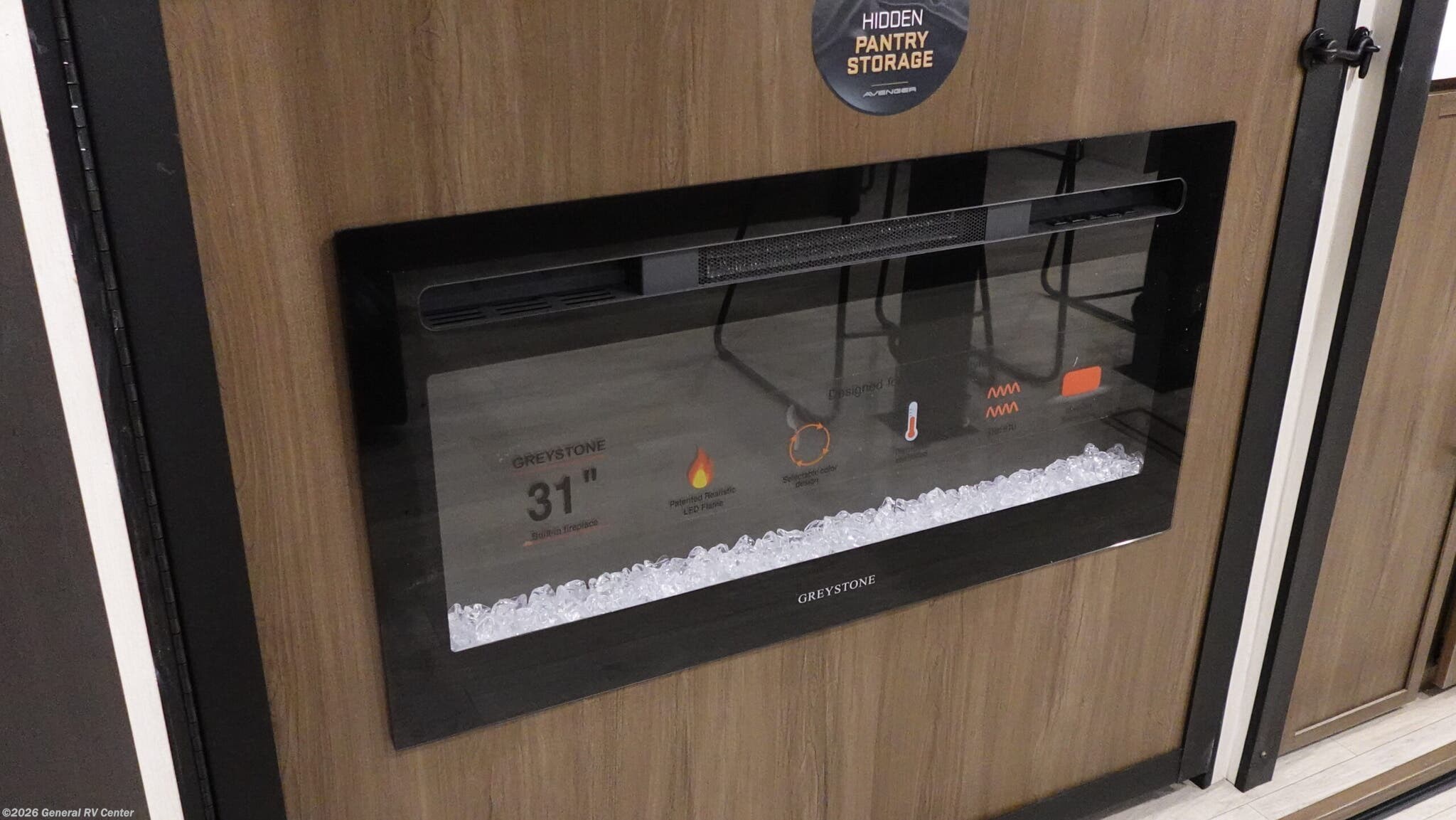 Prime Time Avenger travel trailer 27REI highlights: Dual Opposing Slides Camp King Bed Spacious Full Bath Best-In-Class Pass-Thru Storage There is ample space to move about in this travel trailer thanks to the dual opposing slides! Here, you'll find an L-shaped sofa with a chaise lounge in direct view of TV and fireplace. There is also a hidden pantry behind the TV for snacks and movies! The center farm table includes four stools so you can gather around for meal times, and the desk with a chair will provide a place for you to get some work done if needed. This unit features a full bath towards the front private bedroom for easy access at night, and you're sure to get a great night's rest on the camp king bed! With any Avenger travel trailer by Prime Time RV, you will find innovation, a solid build, and comfort at every turn. Each model is built with Tuff Coat on the exterior metal, a fully enclosed underbelly, and a PVC roof membrane to help extend the life of your trailer. You will also find automotive name badging on the exterior, along with an exterior shower, front rail LED light strips, plus an XL padded entry grab handle to name a few conveniences. There are plenty of storage spaces inside, as well as Congoleum flooring and woven PVC marine grade slide out flooring, a designer shower surround, and seamless pressed countertops. You are sure to appreciate the onboard water filtration system, tankless water heater, plus 30K BTU furnace and 15K ducted A/C to help keep you comfortable.