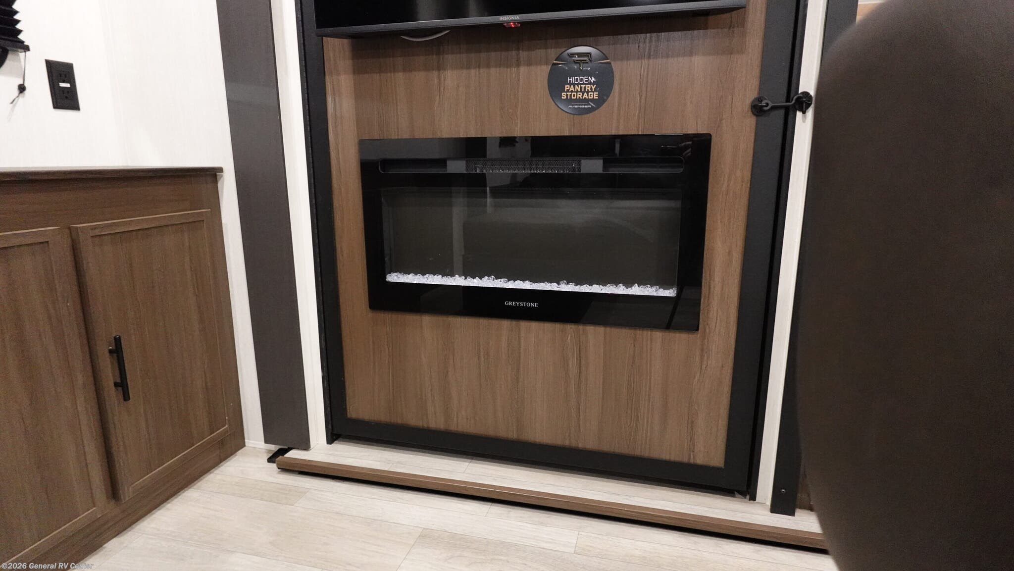 Prime Time Avenger travel trailer 27REI highlights: Dual Opposing Slides Camp King Bed Spacious Full Bath Best-In-Class Pass-Thru Storage There is ample space to move about in this travel trailer thanks to the dual opposing slides! Here, you'll find an L-shaped sofa with a chaise lounge in direct view of TV and fireplace. There is also a hidden pantry behind the TV for snacks and movies! The center farm table includes four stools so you can gather around for meal times, and the desk with a chair will provide a place for you to get some work done if needed. This unit features a full bath towards the front private bedroom for easy access at night, and you're sure to get a great night's rest on the camp king bed! With any Avenger travel trailer by Prime Time RV, you will find innovation, a solid build, and comfort at every turn. Each model is built with Tuff Coat on the exterior metal, a fully enclosed underbelly, and a PVC roof membrane to help extend the life of your trailer. You will also find automotive name badging on the exterior, along with an exterior shower, front rail LED light strips, plus an XL padded entry grab handle to name a few conveniences. There are plenty of storage spaces inside, as well as Congoleum flooring and woven PVC marine grade slide out flooring, a designer shower surround, and seamless pressed countertops. You are sure to appreciate the onboard water filtration system, tankless water heater, plus 30K BTU furnace and 15K ducted A/C to help keep you comfortable.