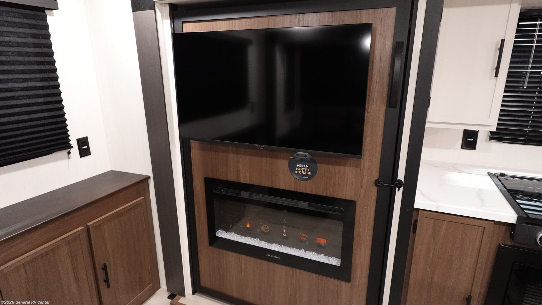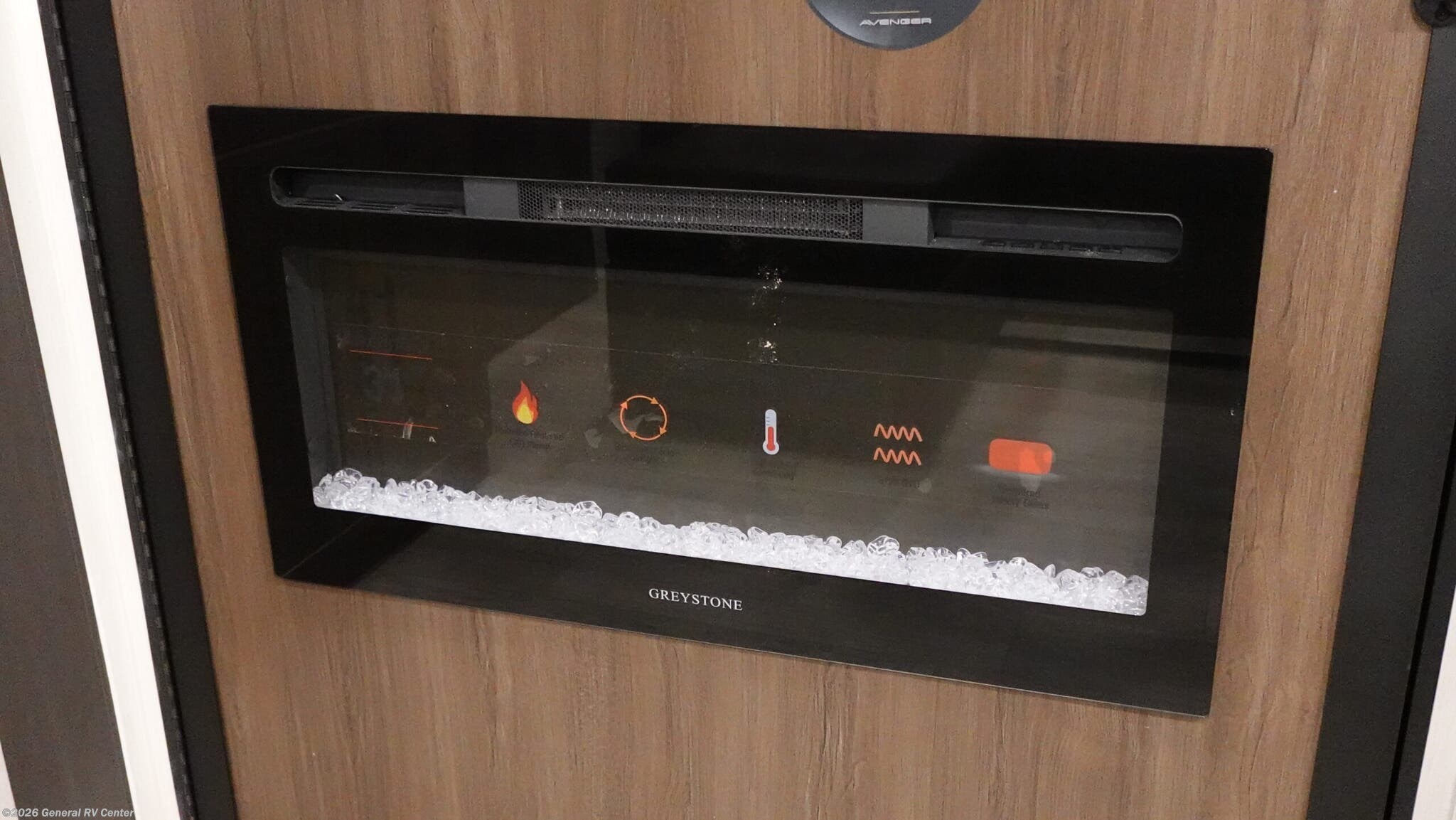 Prime Time Avenger travel trailer 27REI highlights: Dual Opposing Slides Camp King Bed Spacious Full Bath Best-In-Class Pass-Thru Storage There is ample space to move about in this travel trailer thanks to the dual opposing slides! Here, you'll find an L-shaped sofa with a chaise lounge in direct view of TV and fireplace. There is also a hidden pantry behind the TV for snacks and movies! The center farm table includes four stools so you can gather around for meal times, and the desk with a chair will provide a place for you to get some work done if needed. This unit features a full bath towards the front private bedroom for easy access at night, and you're sure to get a great night's rest on the camp king bed! With any Avenger travel trailer by Prime Time RV, you will find innovation, a solid build, and comfort at every turn. Each model is built with Tuff Coat on the exterior metal, a fully enclosed underbelly, and a PVC roof membrane to help extend the life of your trailer. You will also find automotive name badging on the exterior, along with an exterior shower, front rail LED light strips, plus an XL padded entry grab handle to name a few conveniences. There are plenty of storage spaces inside, as well as Congoleum flooring and woven PVC marine grade slide out flooring, a designer shower surround, and seamless pressed countertops. You are sure to appreciate the onboard water filtration system, tankless water heater, plus 30K BTU furnace and 15K ducted A/C to help keep you comfortable.