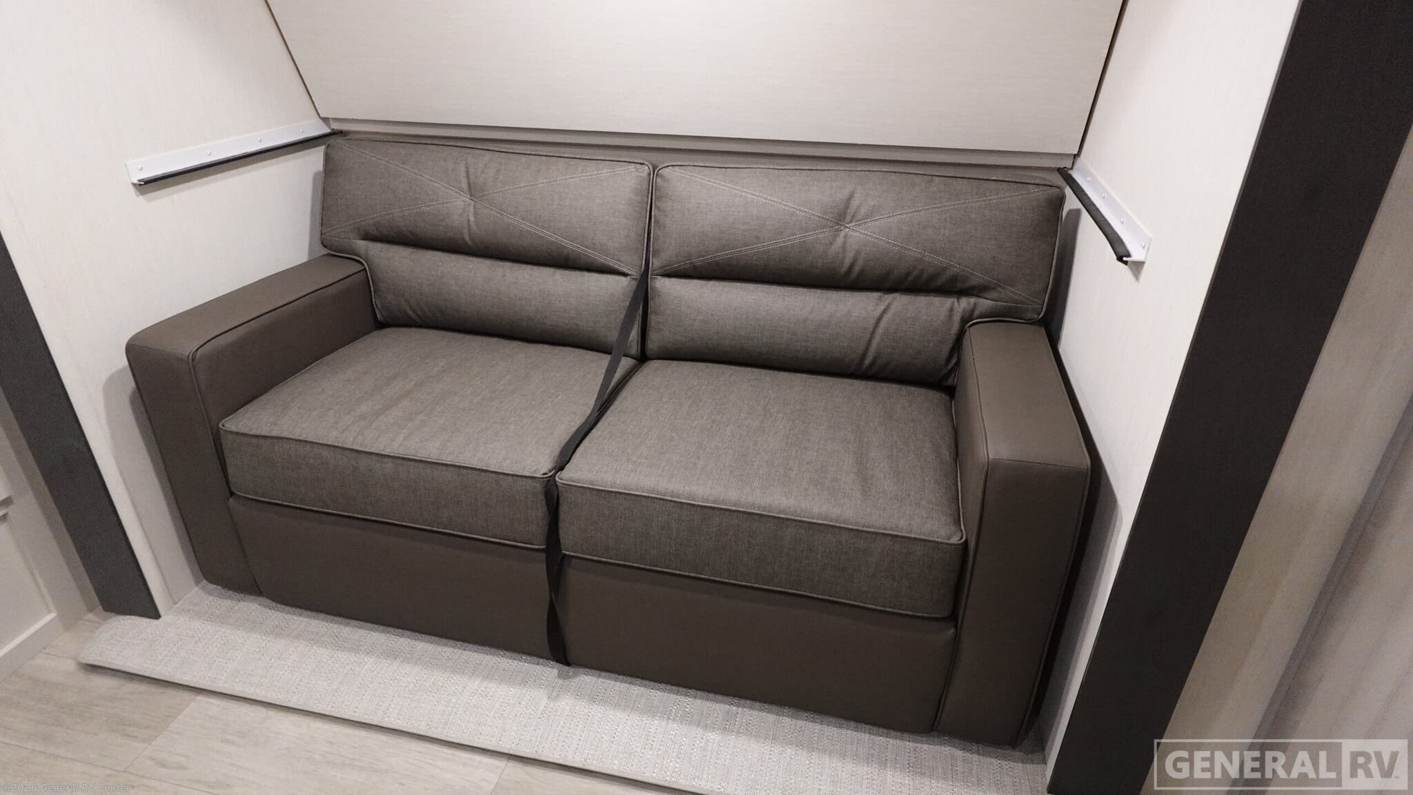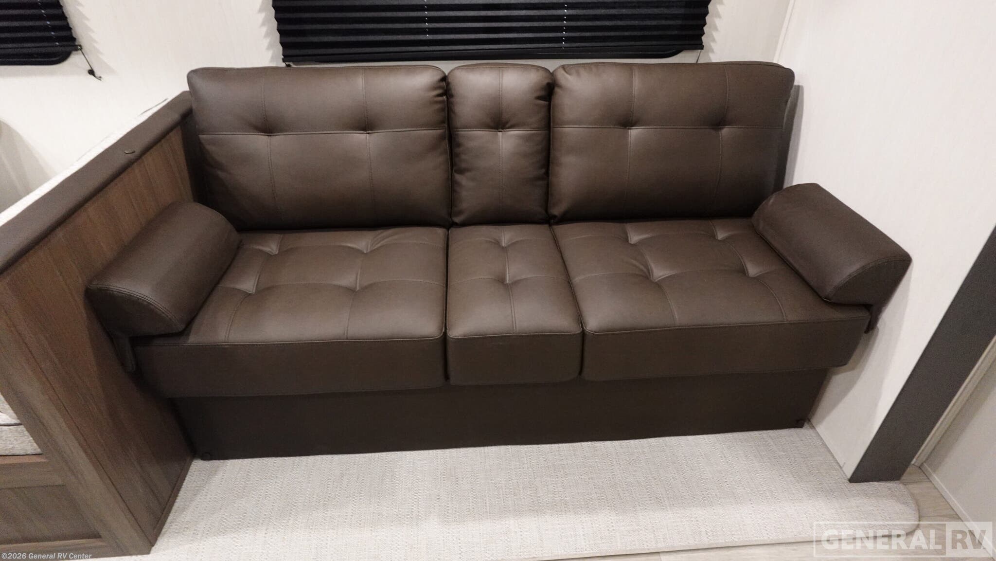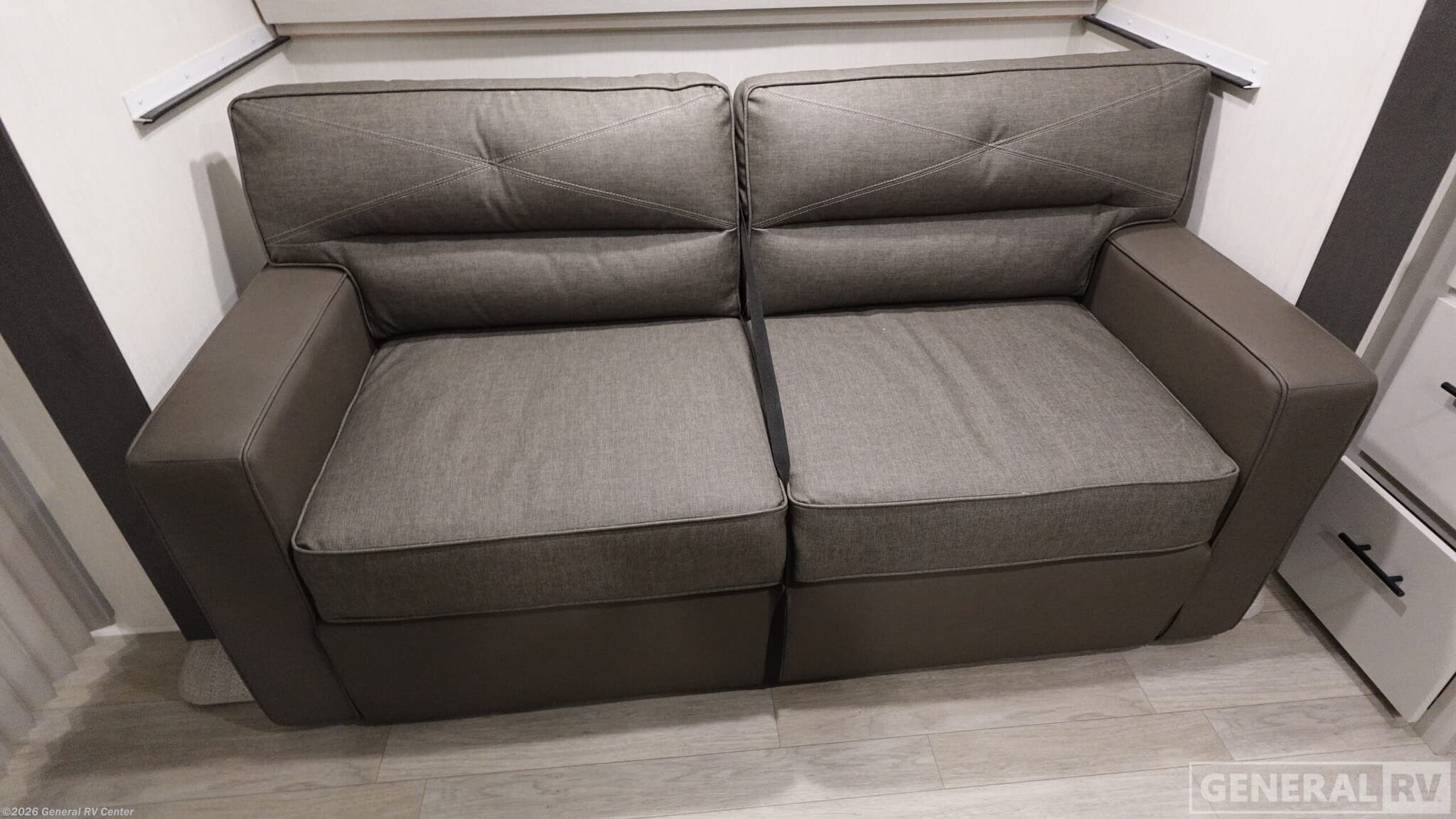 Prime Time Avenger travel trailer 30PO highlights: Triple Slides Sofa with Moveable Storage Ottoman Front Private Bedroom Oversized Bedroom Window Hinged Bunk Beds The whole gang will love camping in this spacious travel trailer that can sleep nine to ten people! The rear bunkhouse features dual opposing slides with hide-a-bed sofas and hinged bunk beds, plus a hidden desk, fireplace, and projector for movie nights! You'll appreciate your own space up front in the private bedroom, complete with a camp king bed and storage space. Everyone can meet in the combined kitchen and living area as the chef of your group makes breakfast in the fully equipped kitchen. There is a sofa and booth dinette here for seating space, or you can take your plate outdoors to sit under the power awning. And the outdoor refrigerator is sure to come in handy when you want another cold drink! With any Avenger travel trailer by Prime Time RV, you will find innovation, a solid build, and comfort at every turn. Each model is built with Tuff Coat on the exterior metal, a fully enclosed underbelly, and a PVC roof membrane to help extend the life of your trailer. You will also find automotive name badging on the exterior, along with an exterior shower, front rail LED light strips, plus an XL padded entry grab handle to name a few conveniences. There are plenty of storage spaces inside, as well as Congoleum flooring and woven PVC marine grade slide out flooring, a designer shower surround, and seamless pressed countertops. You are sure to appreciate the onboard water filtration system, tankless water heater, plus 30K BTU furnace and 15K ducted A/C to help keep you comfortable.