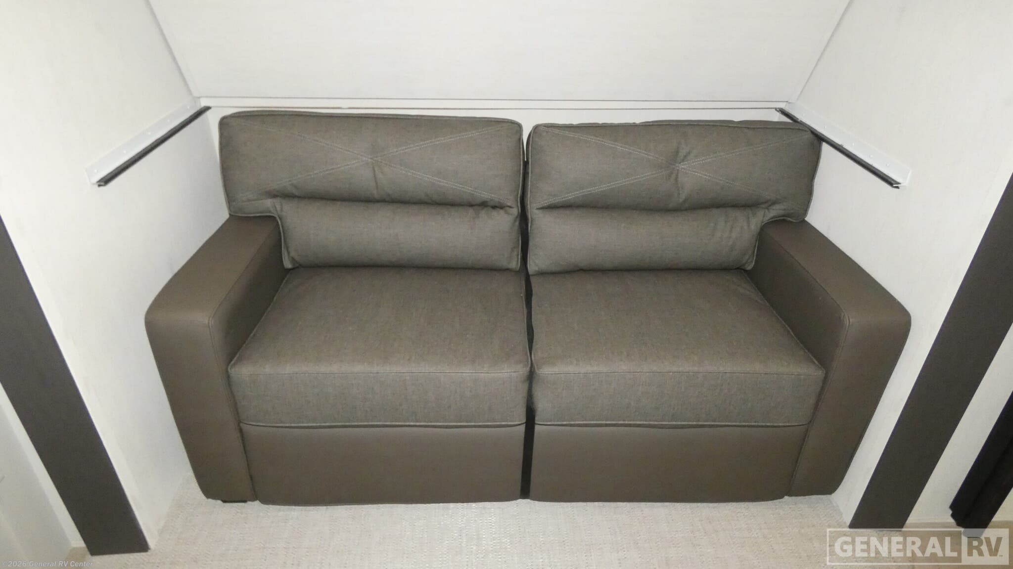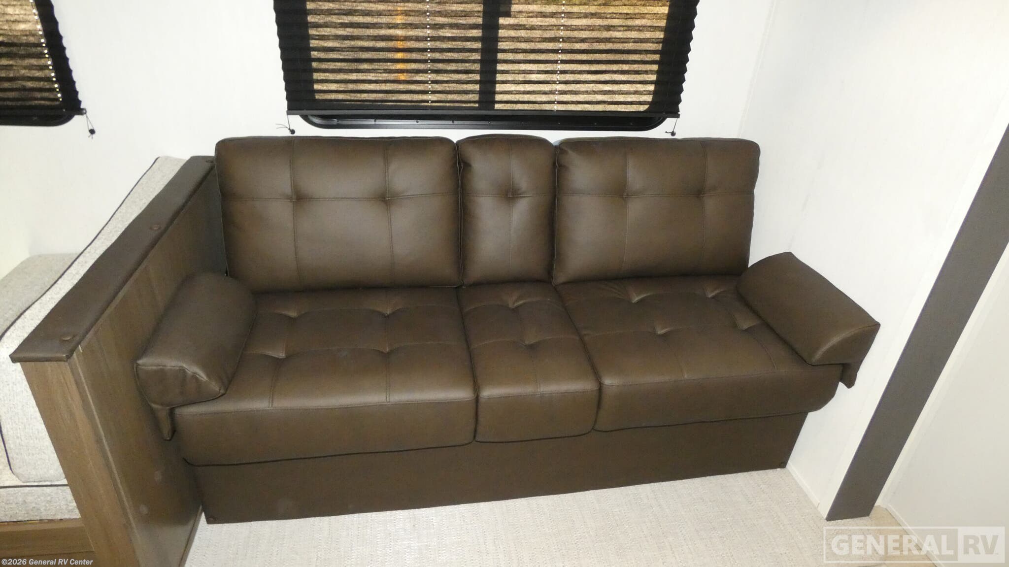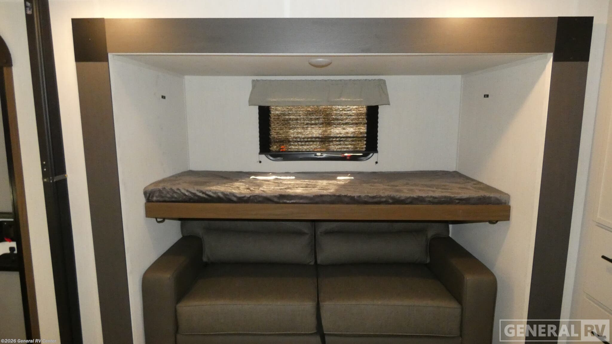 Prime Time Avenger travel trailer 30PO highlights: Triple Slides Sofa with Moveable Storage Ottoman Front Private Bedroom Oversized Bedroom Window Hinged Bunk Beds The whole gang will love camping in this spacious travel trailer that can sleep nine to ten people! The rear bunkhouse features dual opposing slides with hide-a-bed sofas and hinged bunk beds, plus a hidden desk, fireplace, and projector for movie nights! You'll appreciate your own space up front in the private bedroom, complete with a camp king bed and storage space. Everyone can meet in the combined kitchen and living area as the chef of your group makes breakfast in the fully equipped kitchen. There is a sofa and booth dinette here for seating space, or you can take your plate outdoors to sit under the power awning. And the outdoor refrigerator is sure to come in handy when you want another cold drink! With any Avenger travel trailer by Prime Time RV, you will find innovation, a solid build, and comfort at every turn. Each model is built with Tuff Coat on the exterior metal, a fully enclosed underbelly, and a PVC roof membrane to help extend the life of your trailer. You will also find automotive name badging on the exterior, along with an exterior shower, front rail LED light strips, plus an XL padded entry grab handle to name a few conveniences. There are plenty of storage spaces inside, as well as Congoleum flooring and woven PVC marine grade slide out flooring, a designer shower surround, and seamless pressed countertops. You are sure to appreciate the onboard water filtration system, tankless water heater, plus 30K BTU furnace and 15K ducted A/C to help keep you comfortable.
