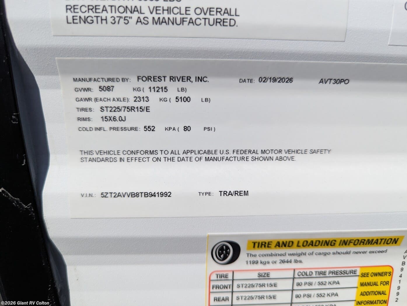 - VIN5ZT2AVVB8TB941992