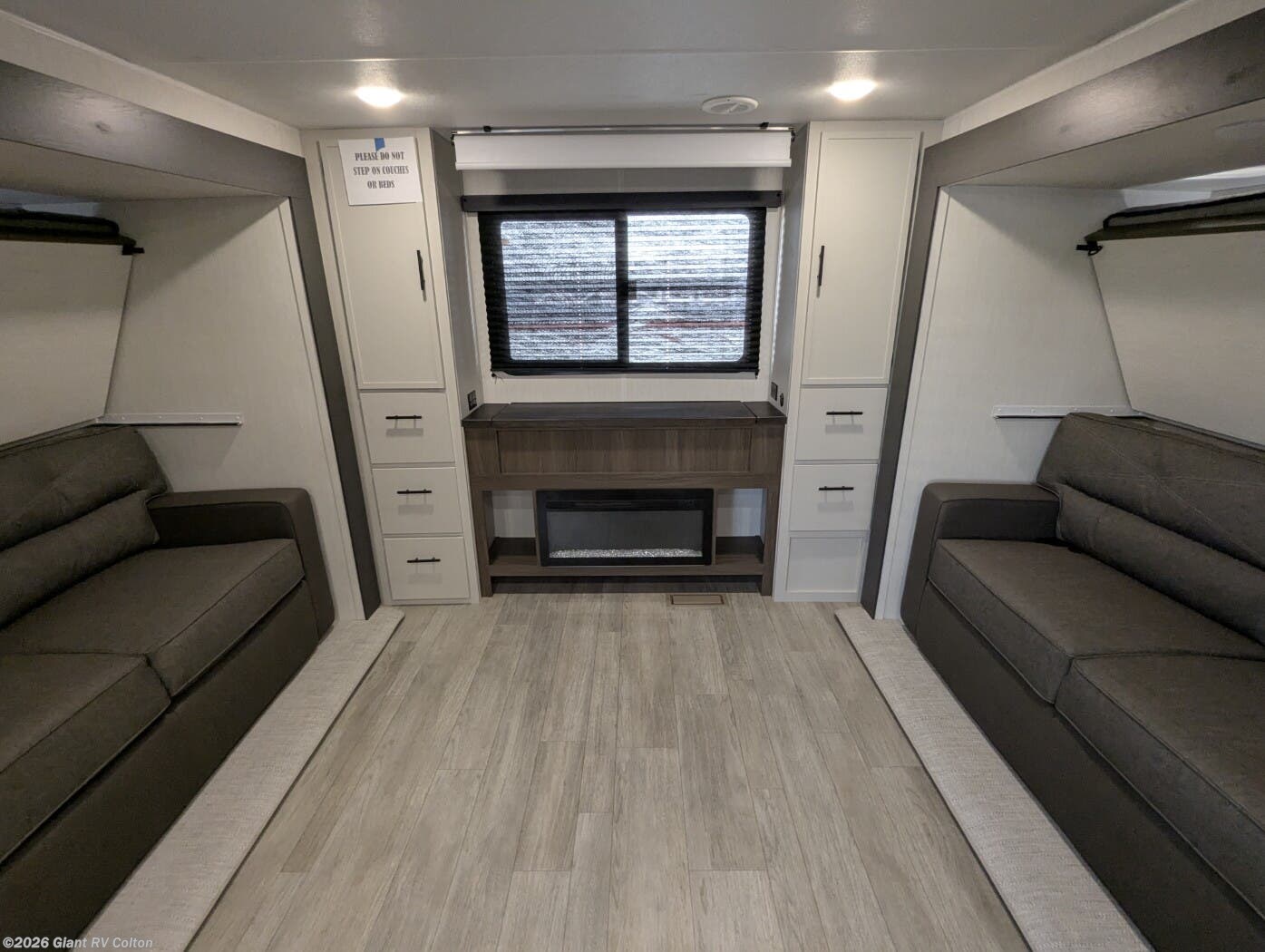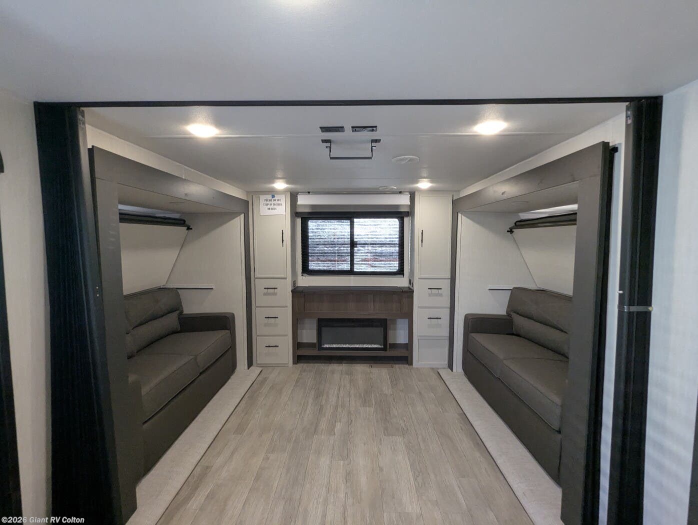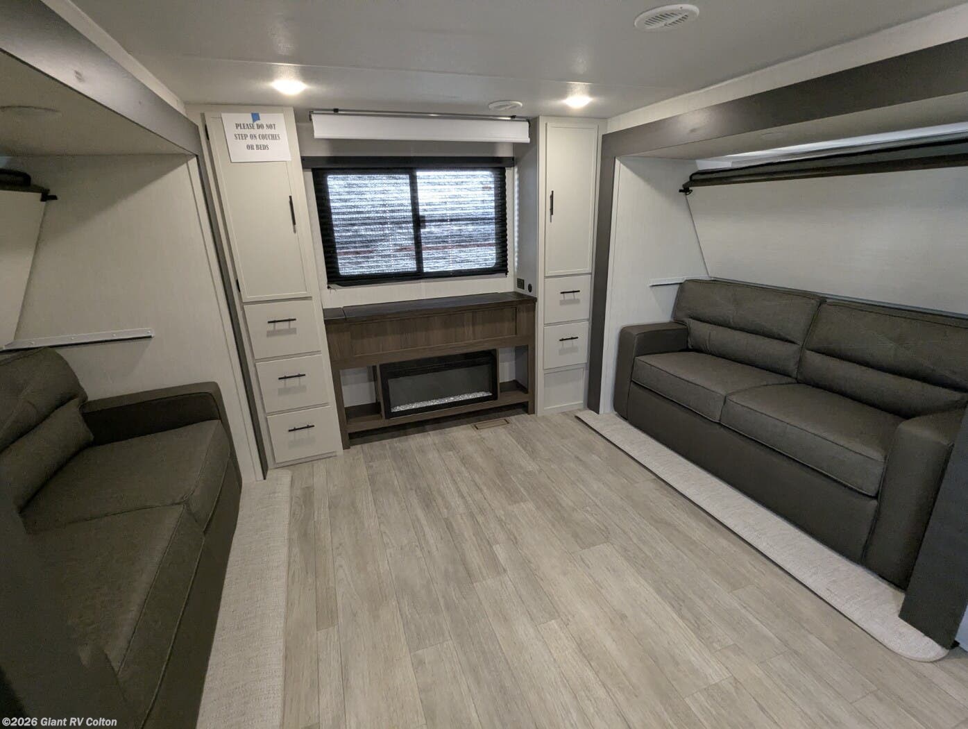 • Dual Living & Bunkhouse Design featuring a rear multi-use room with opposing slides, bunk beds, and sofa seating — perfect as a second living area or private space for kids and guests.