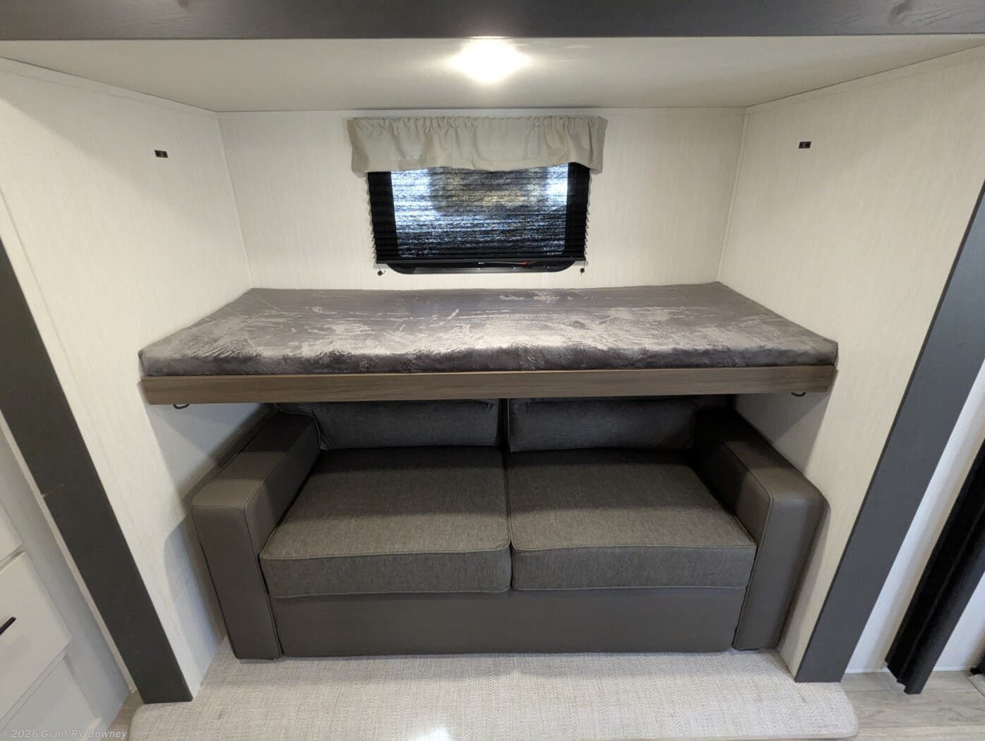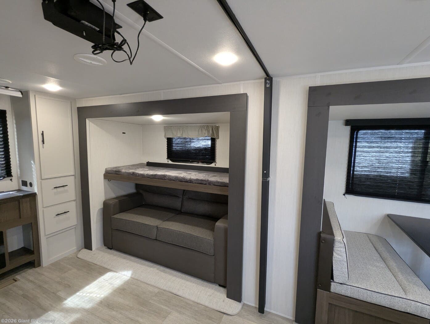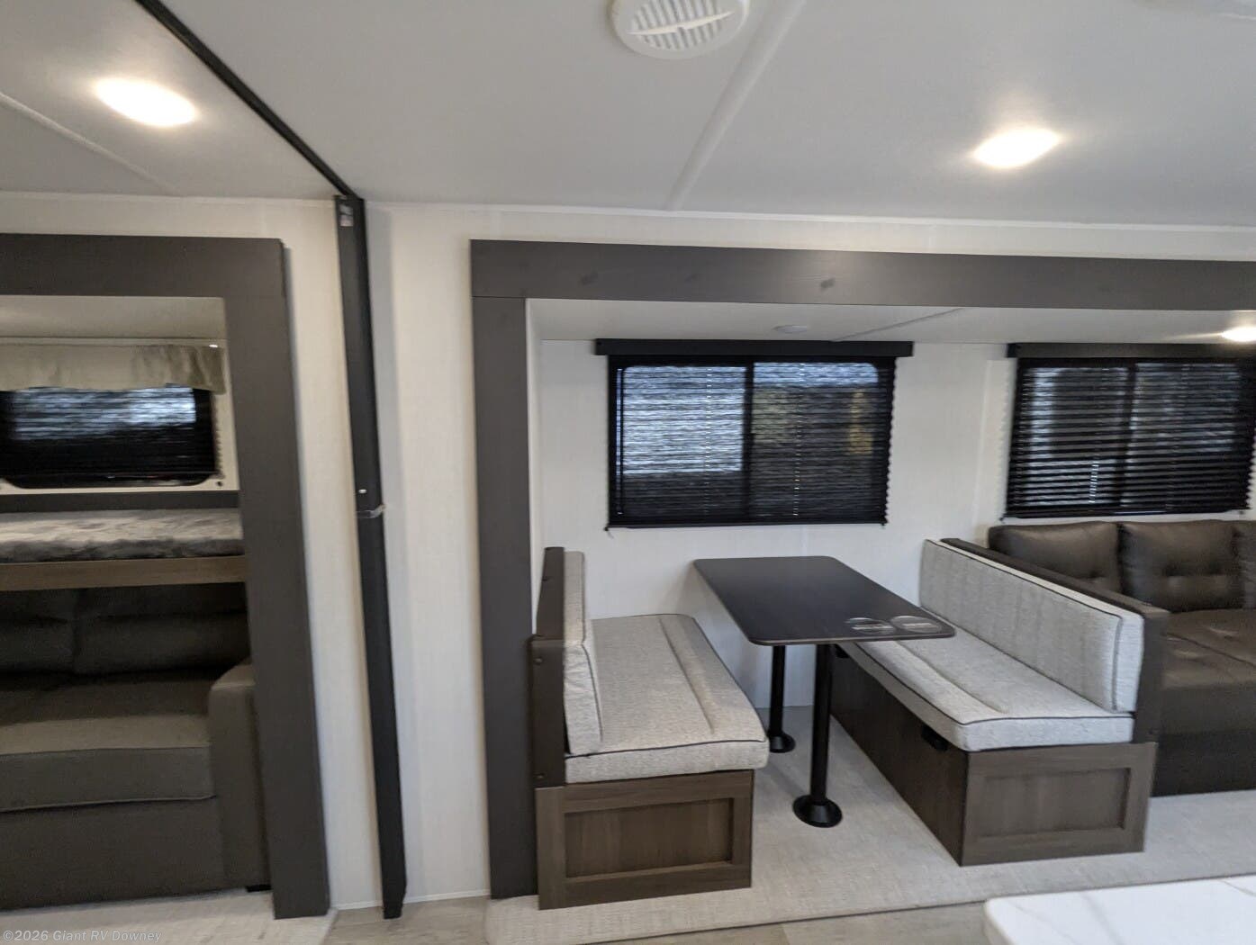 • Dual Living & Bunkhouse Design featuring a rear multi-use room with opposing slides, bunk beds, and sofa seating — perfect as a second living area or private space for kids and guests.