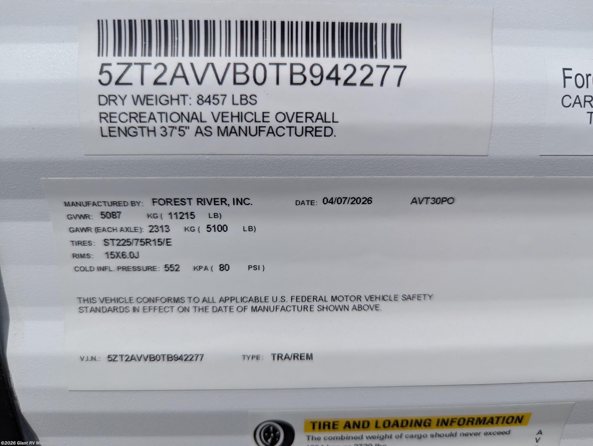 - VIN5ZT2AVVB0TB942277