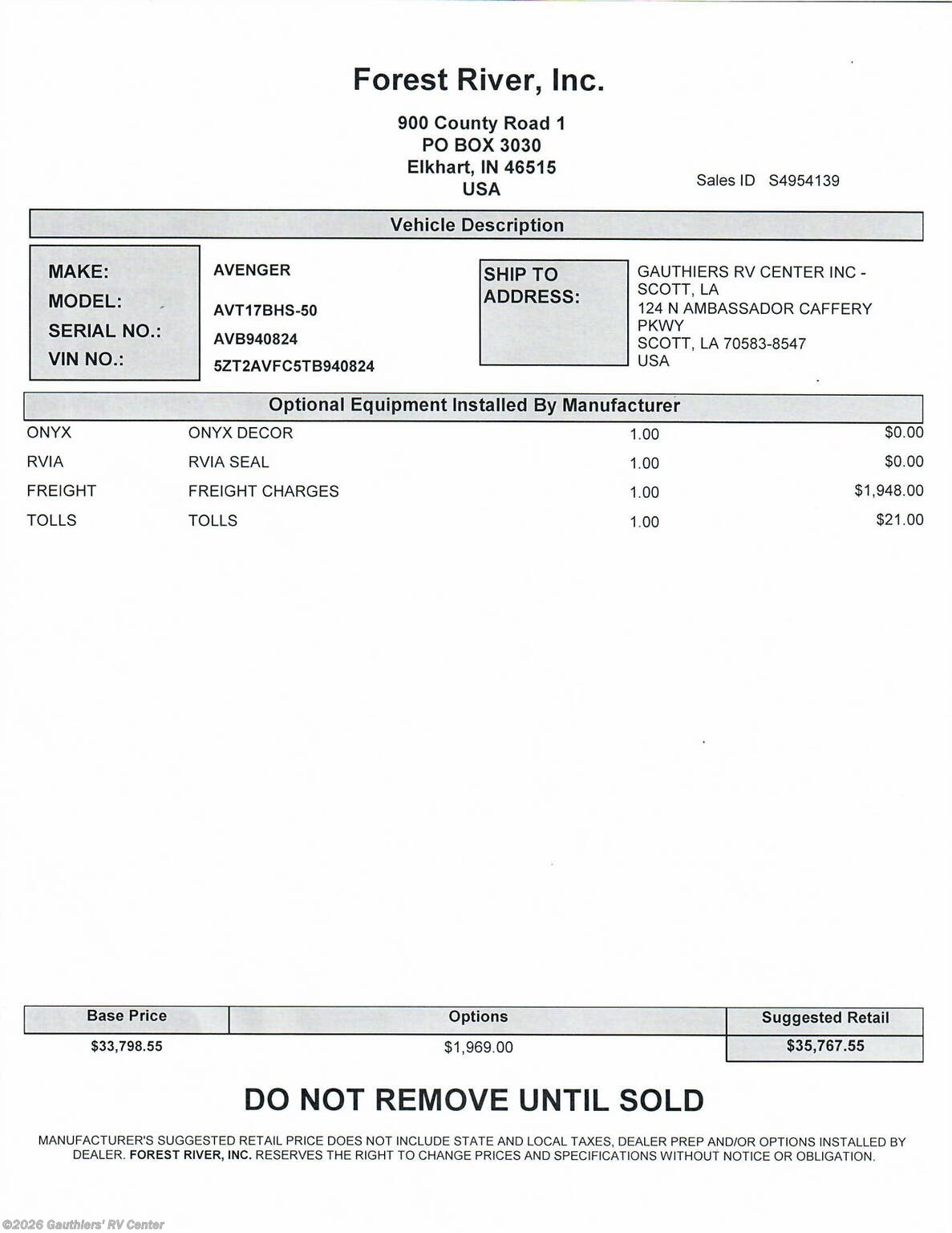 Request More Info on this 2026 Prime Time Avenger LT 17BHS Offered for sale by Gauthiers' RV Center