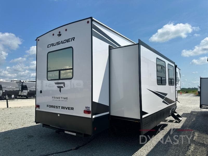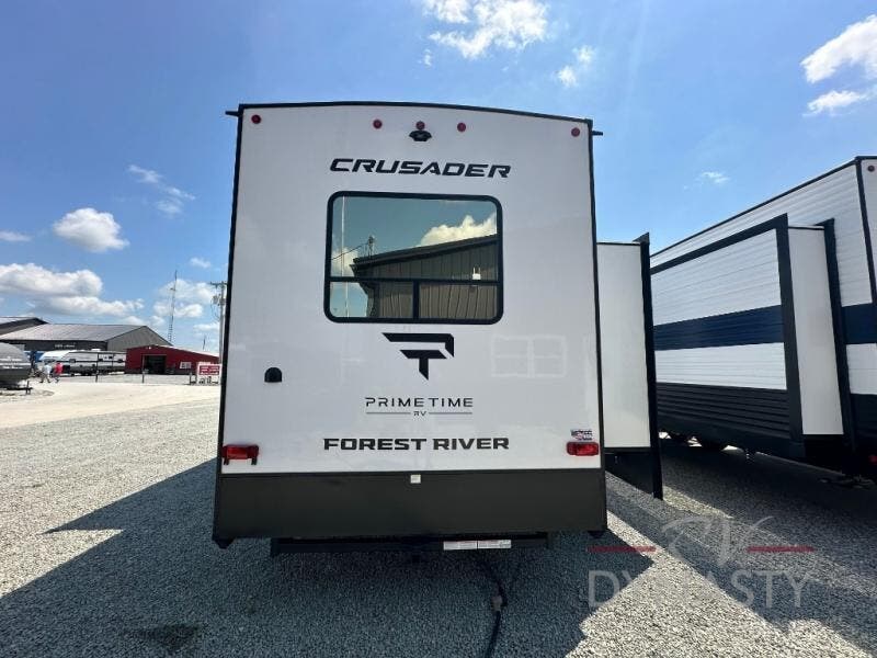 With any Crusader fifth wheel by Prime Time, you will enjoy outstanding quality and premium features! The Dexter E-Z Flex rubberized suspension equalizer will help make towing smoother than ever, and the high gloss gel coated exterior fiberglass is sure to be eye-catching. There are also thick insulated pass-through storage baggage doors outside, along with a 102" wide body, and hassle-free one-touch auto leveling. Inside, you'll find real wood cabinet doors, carpet-less slide rooms, blackout roller shades, and stain resistant, easy clean furniture. The Crusader fifth wheels are built with Eternabond construction, a one-piece PVC roof membrane, radiant foil insulation, plus rack and pinion slide systems.