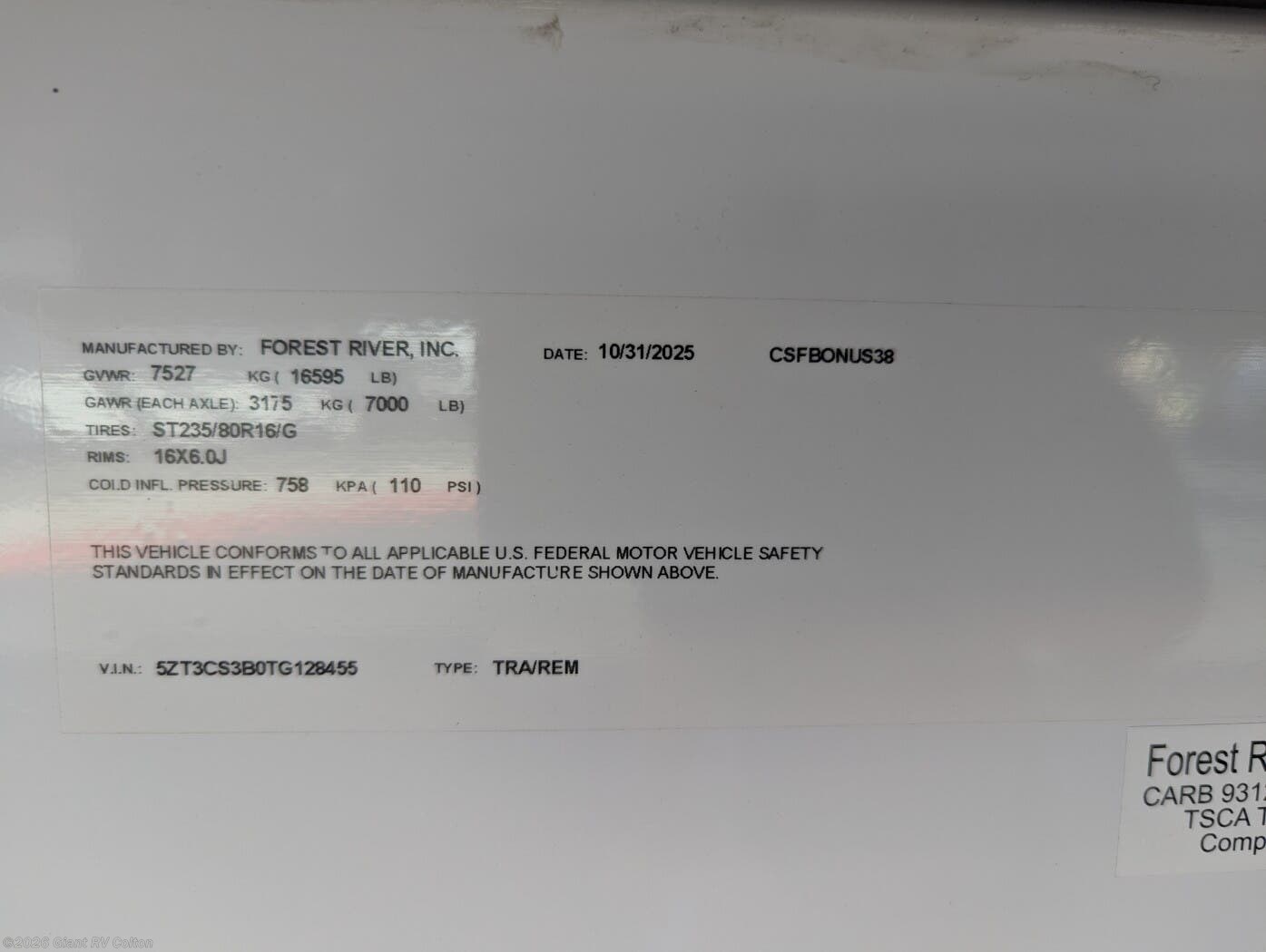 - VIN5ZT3CS3B0TG128455