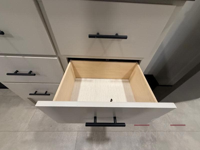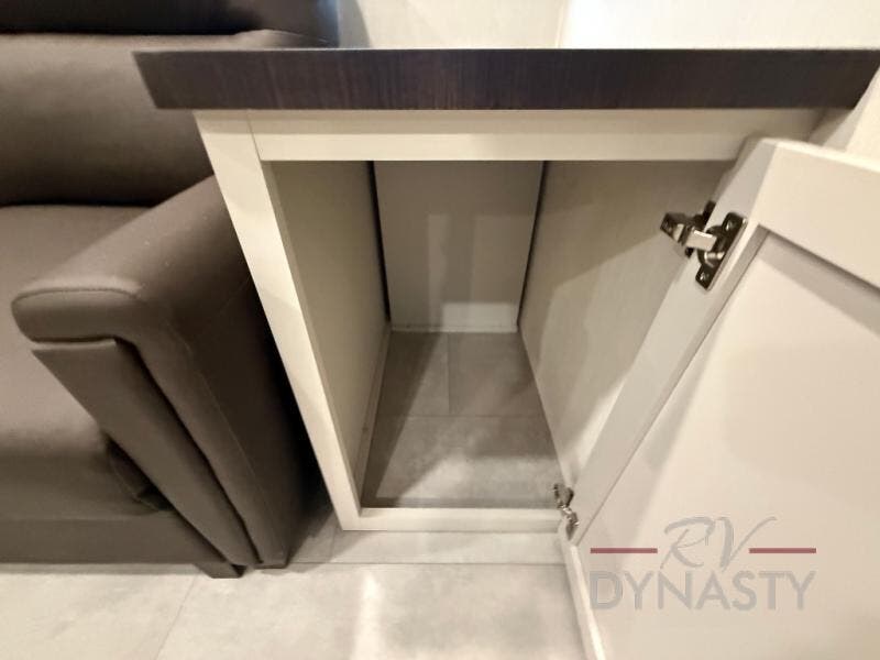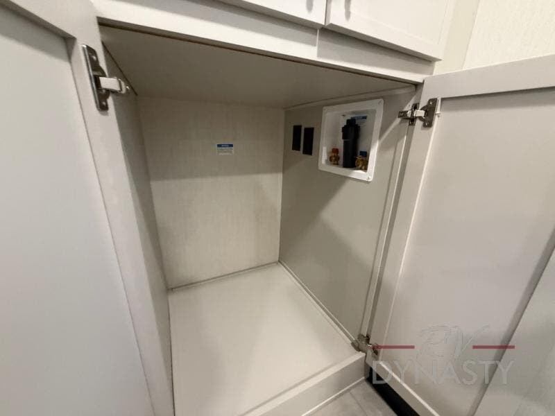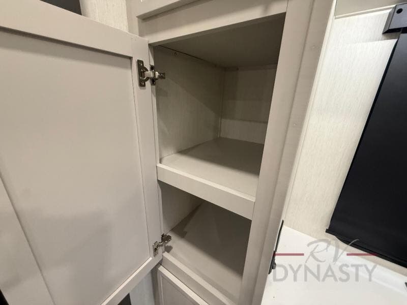 If you enjoy camping with family or friends, this fifth wheel is sure to meet all of your needs! The front bedroom includes a King bed slide out for more space and comfort, plus a front wardrobe/washer and dryer prep. And the full bath is right next door for easy nighttime use. The living room is made spacious thanks to the dual opposing slides, and you'll find a sectional sleeper sofa here, as well as a hybrid desk/dinette, perfect for a quick meal and to catch up with some emails. And don't overlook the rear kitchen with ample counter space, a four burner range, an accessory sink and a French door 12V refrigerator!