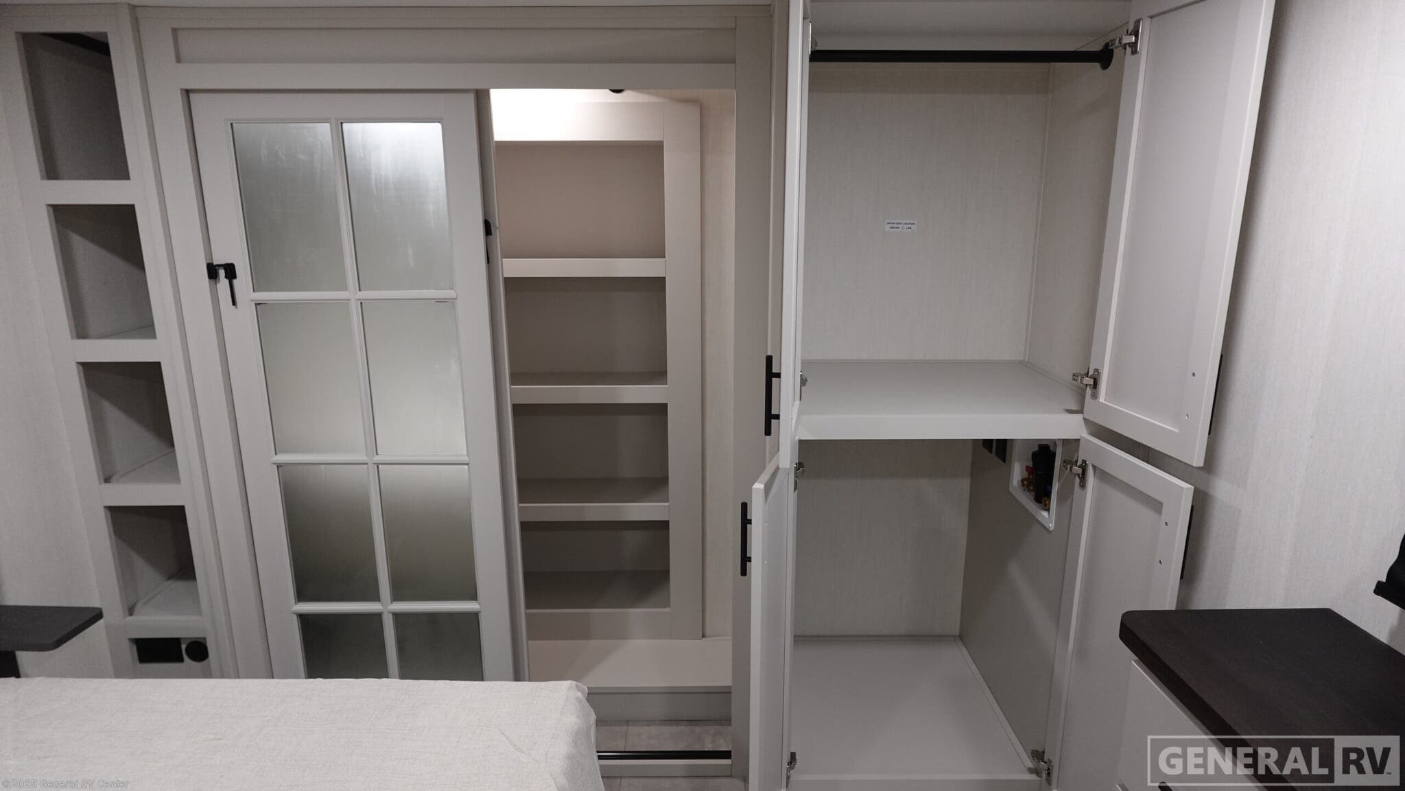 Experience luxury and comfort on the road with the 2026 Prime Time Crusader KING33. This remarkable fifth wheel is designed to accommodate up to four guests, making it perfect for family adventures or entertaining friends. With its expansive 35' 11" foot length and three slide-outs, you'll enjoy a spacious interior that feels more like a home than an RV. The living area is a true highlight, featuring a sectional sleeper sofa and a hybrid desk/dinette, providing ample seating for relaxation or movie nights on the 65" 4K Smart TV. The kitchen is equipped with a 4-burner range and a fridge, ensuring you can prepare delicious meals with ease. An accessory sink adds convenience, while the desk space is perfect for those who need to work remotely. The master suite boasts a comfortable king bed and is prepped for a washer and dryer, adding a touch of home-like convenience. With a fresh water capacity of 54 gallons and generous gray and black water tanks, the Crusader KING33 ensures extended stays are hassle-free. Its thoughtful design and premium features make it a top choice for discerning travelers. To explore this exceptional RV further, visit your nearest General RV Dealership Location.