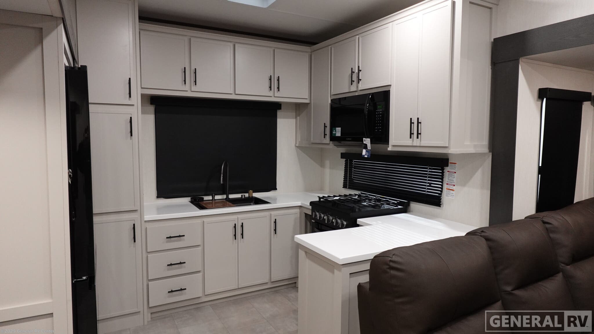 Experience luxury and comfort on the road with the 2026 Prime Time Crusader KING33. This remarkable fifth wheel is designed to accommodate up to four guests, making it perfect for family adventures or entertaining friends. With its expansive 35' 11" foot length and three slide-outs, you'll enjoy a spacious interior that feels more like a home than an RV. The living area is a true highlight, featuring a sectional sleeper sofa and a hybrid desk/dinette, providing ample seating for relaxation or movie nights on the 65" 4K Smart TV. The kitchen is equipped with a 4-burner range and a fridge, ensuring you can prepare delicious meals with ease. An accessory sink adds convenience, while the desk space is perfect for those who need to work remotely. The master suite boasts a comfortable king bed and is prepped for a washer and dryer, adding a touch of home-like convenience. With a fresh water capacity of 54 gallons and generous gray and black water tanks, the Crusader KING33 ensures extended stays are hassle-free. Its thoughtful design and premium features make it a top choice for discerning travelers. To explore this exceptional RV further, visit your nearest General RV Dealership Location.