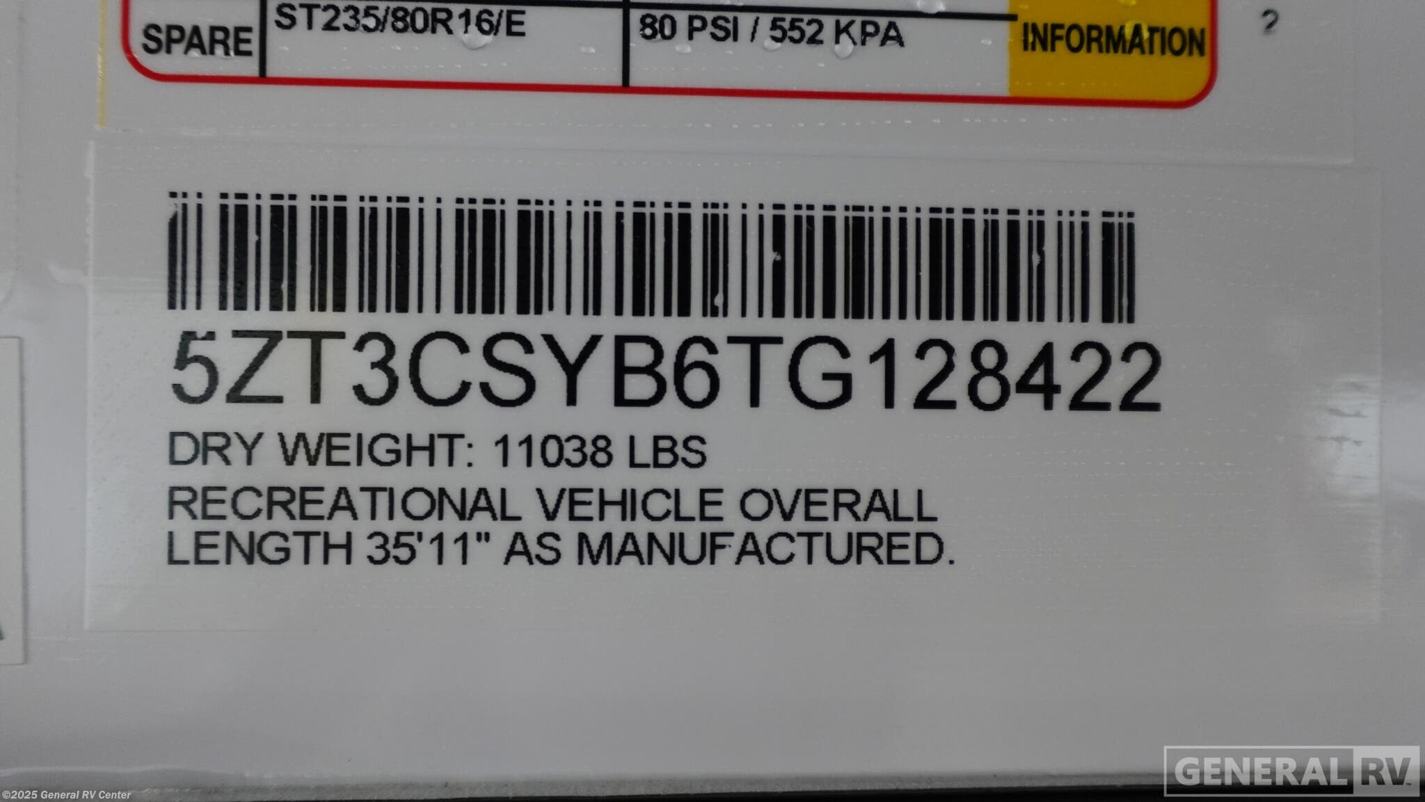 - VIN5ZT3CSYB6TG128422
