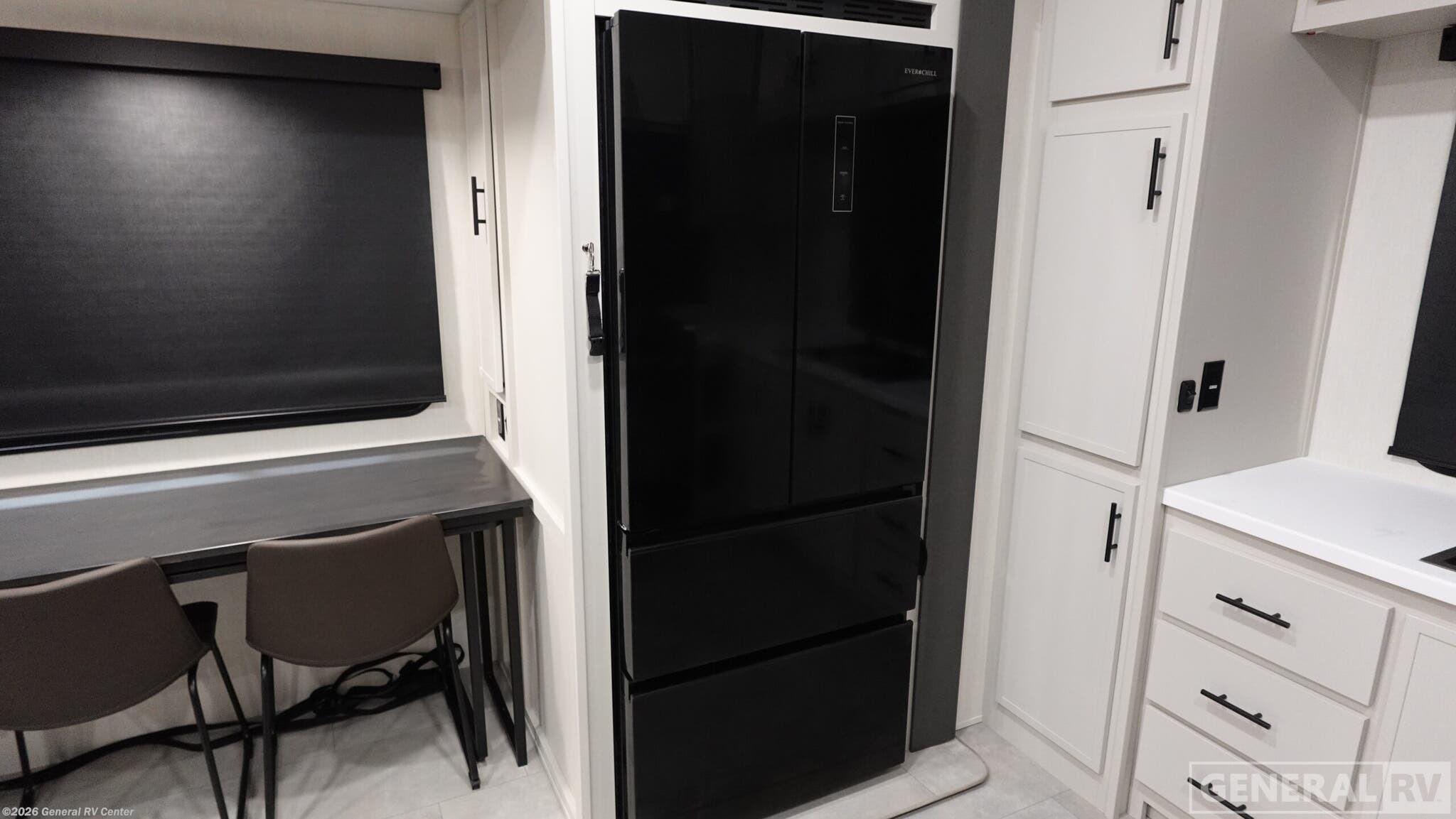 Experience luxury and comfort on the road with the 2026 Prime Time Crusader KING33. This remarkable fifth wheel is designed to accommodate up to four guests, making it perfect for family adventures or entertaining friends. With its expansive 35' 11" foot length and three slide-outs, you'll enjoy a spacious interior that feels more like a home than an RV. The living area is a true highlight, featuring a sectional sleeper sofa and a hybrid desk/dinette, providing ample seating for relaxation or movie nights on the 65" 4K Smart TV. The kitchen is equipped with a 4-burner range and a fridge, ensuring you can prepare delicious meals with ease. An accessory sink adds convenience, while the desk space is perfect for those who need to work remotely. The master suite boasts a comfortable king bed and is prepped for a washer and dryer, adding a touch of home-like convenience. With a fresh water capacity of 54 gallons and generous gray and black water tanks, the Crusader KING33 ensures extended stays are hassle-free. Its thoughtful design and premium features make it a top choice for discerning travelers. To explore this exceptional RV further, visit your nearest General RV Dealership Location.