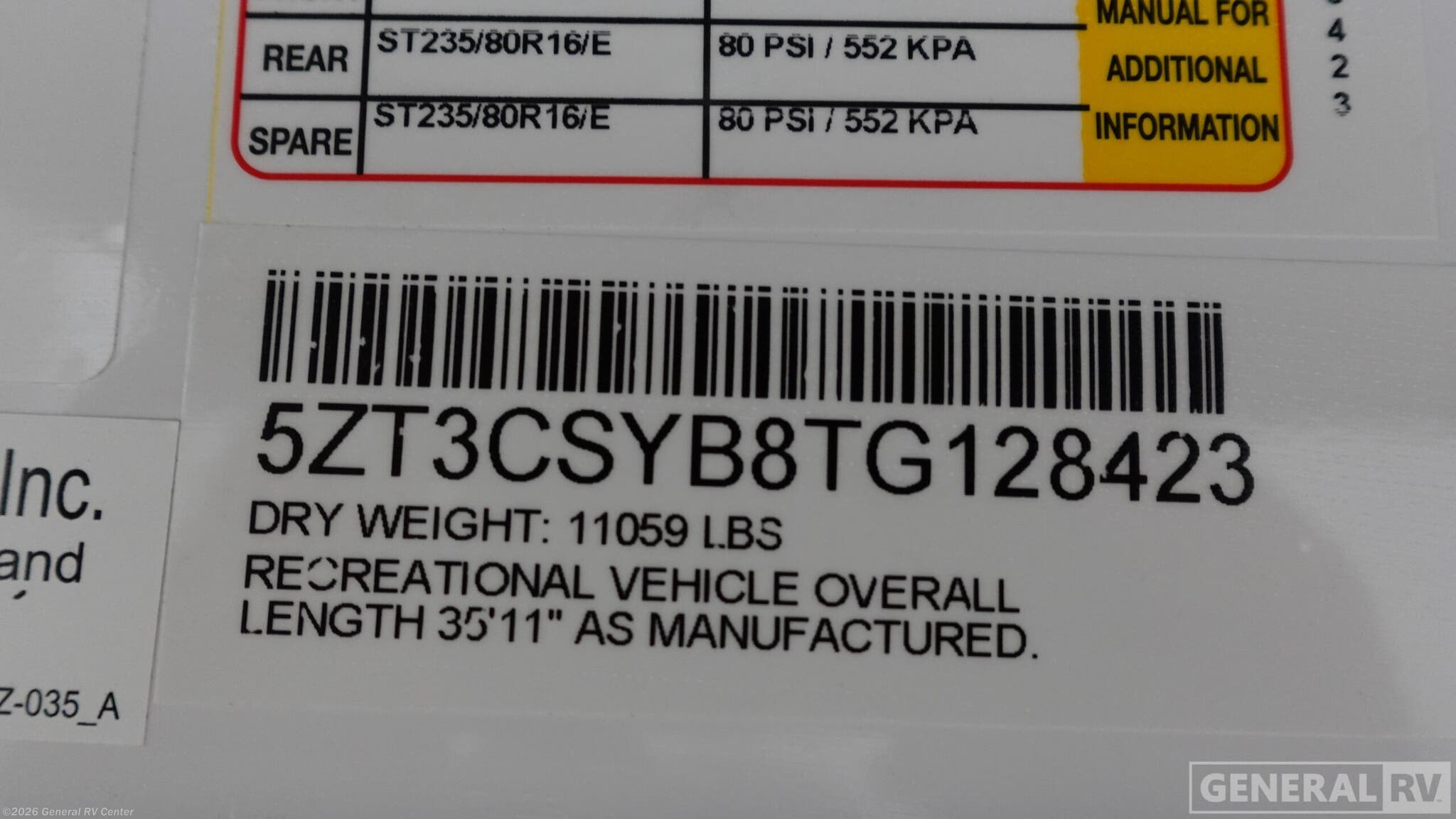 - VIN5ZT3CSYB8TG128423