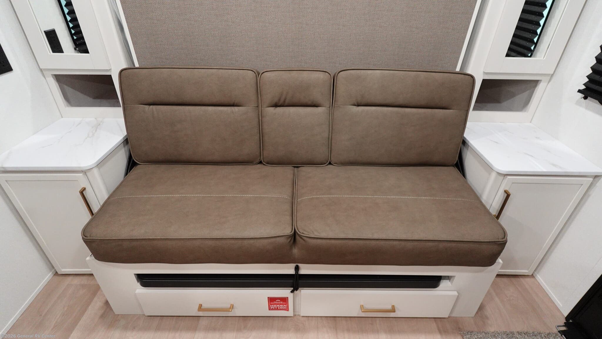 Experience luxury and comfort on the road with the 2026 Prime Time Crusader KING33. This remarkable fifth wheel is designed to accommodate up to four guests, making it perfect for family adventures or entertaining friends. With its expansive 35' 11" foot length and three slide-outs, you'll enjoy a spacious interior that feels more like a home than an RV. The living area is a true highlight, featuring a sectional sleeper sofa and a hybrid desk/dinette, providing ample seating for relaxation or movie nights on the 65" 4K Smart TV. The kitchen is equipped with a 4-burner range and a fridge, ensuring you can prepare delicious meals with ease. An accessory sink adds convenience, while the desk space is perfect for those who need to work remotely. The master suite boasts a comfortable king bed and is prepped for a washer and dryer, adding a touch of home-like convenience. With a fresh water capacity of 54 gallons and generous gray and black water tanks, the Crusader KING33 ensures extended stays are hassle-free. Its thoughtful design and premium features make it a top choice for discerning travelers. To explore this exceptional RV further, visit your nearest General RV Dealership Location.