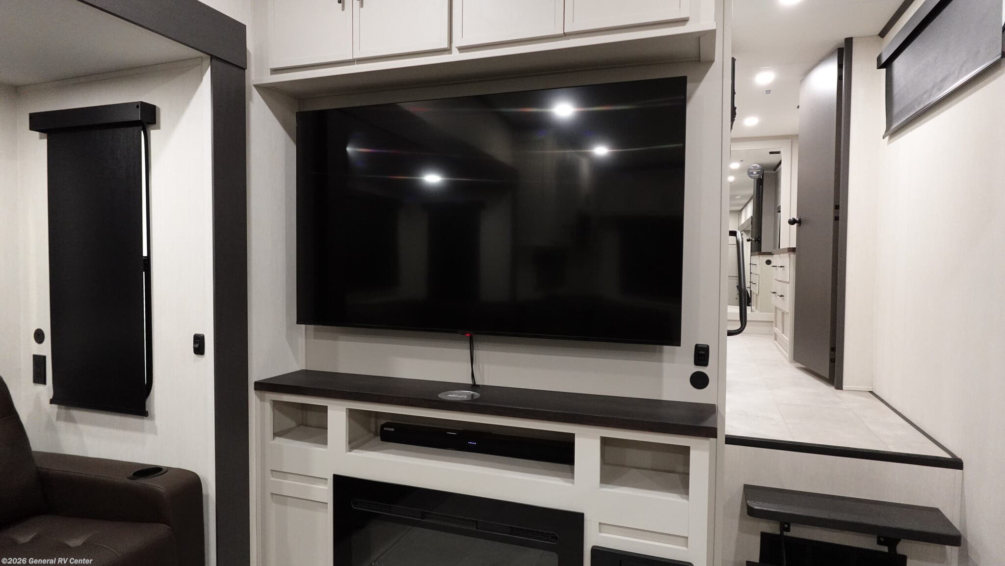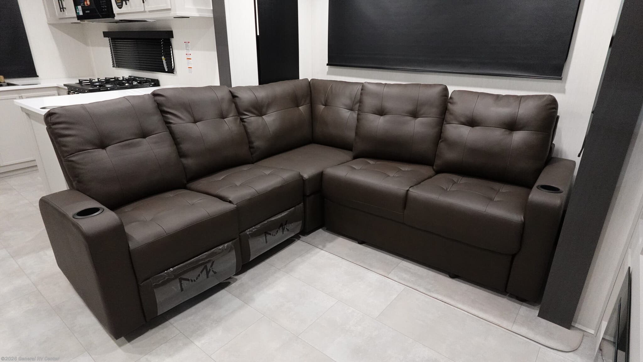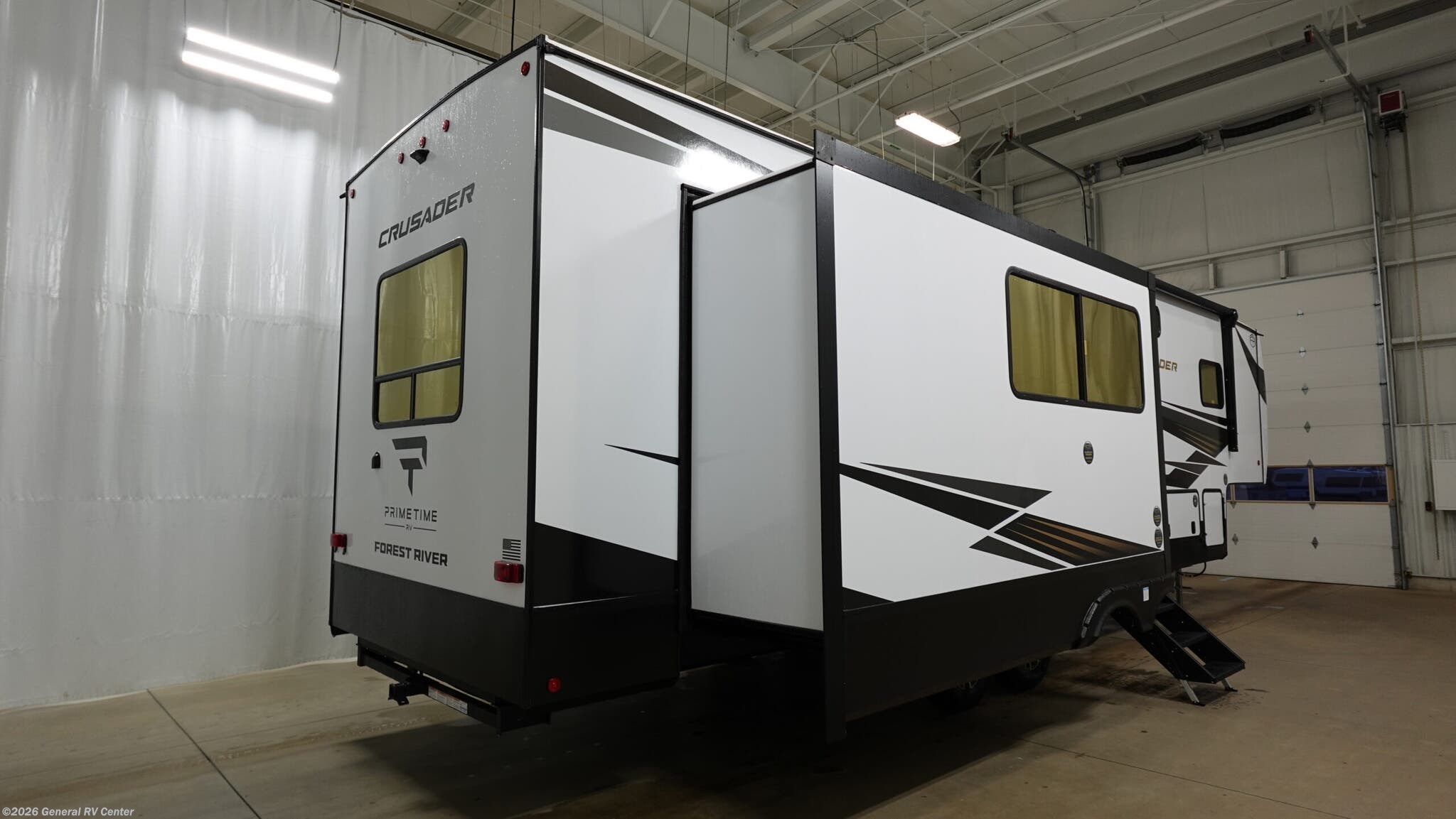 Experience luxury and comfort on the road with the 2026 Prime Time Crusader KING33. This remarkable fifth wheel is designed to accommodate up to four guests, making it perfect for family adventures or entertaining friends. With its expansive 35' 11" foot length and three slide-outs, you'll enjoy a spacious interior that feels more like a home than an RV. The living area is a true highlight, featuring a sectional sleeper sofa and a hybrid desk/dinette, providing ample seating for relaxation or movie nights on the 65" 4K Smart TV. The kitchen is equipped with a 4-burner range and a fridge, ensuring you can prepare delicious meals with ease. An accessory sink adds convenience, while the desk space is perfect for those who need to work remotely. The master suite boasts a comfortable king bed and is prepped for a washer and dryer, adding a touch of home-like convenience. With a fresh water capacity of 54 gallons and generous gray and black water tanks, the Crusader KING33 ensures extended stays are hassle-free. Its thoughtful design and premium features make it a top choice for discerning travelers. To explore this exceptional RV further, visit your nearest General RV Dealership Location.