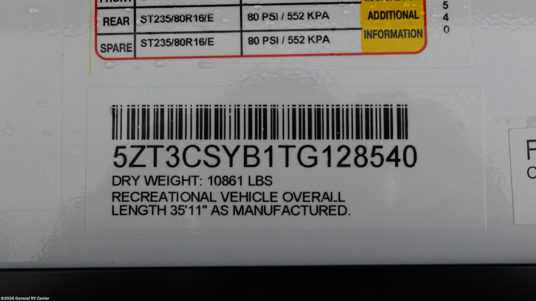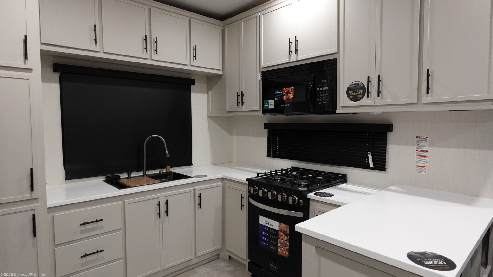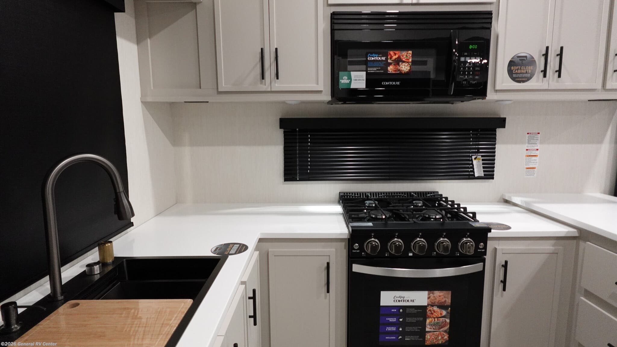 Experience luxury and comfort on the road with the 2026 Prime Time Crusader KING33. This remarkable fifth wheel is designed to accommodate up to four guests, making it perfect for family adventures or entertaining friends. With its expansive 35' 11" foot length and three slide-outs, you'll enjoy a spacious interior that feels more like a home than an RV. The living area is a true highlight, featuring a sectional sleeper sofa and a hybrid desk/dinette, providing ample seating for relaxation or movie nights on the 65" 4K Smart TV. The kitchen is equipped with a 4-burner range and a fridge, ensuring you can prepare delicious meals with ease. An accessory sink adds convenience, while the desk space is perfect for those who need to work remotely. The master suite boasts a comfortable king bed and is prepped for a washer and dryer, adding a touch of home-like convenience. With a fresh water capacity of 54 gallons and generous gray and black water tanks, the Crusader KING33 ensures extended stays are hassle-free. Its thoughtful design and premium features make it a top choice for discerning travelers. To explore this exceptional RV further, visit your nearest General RV Dealership Location.