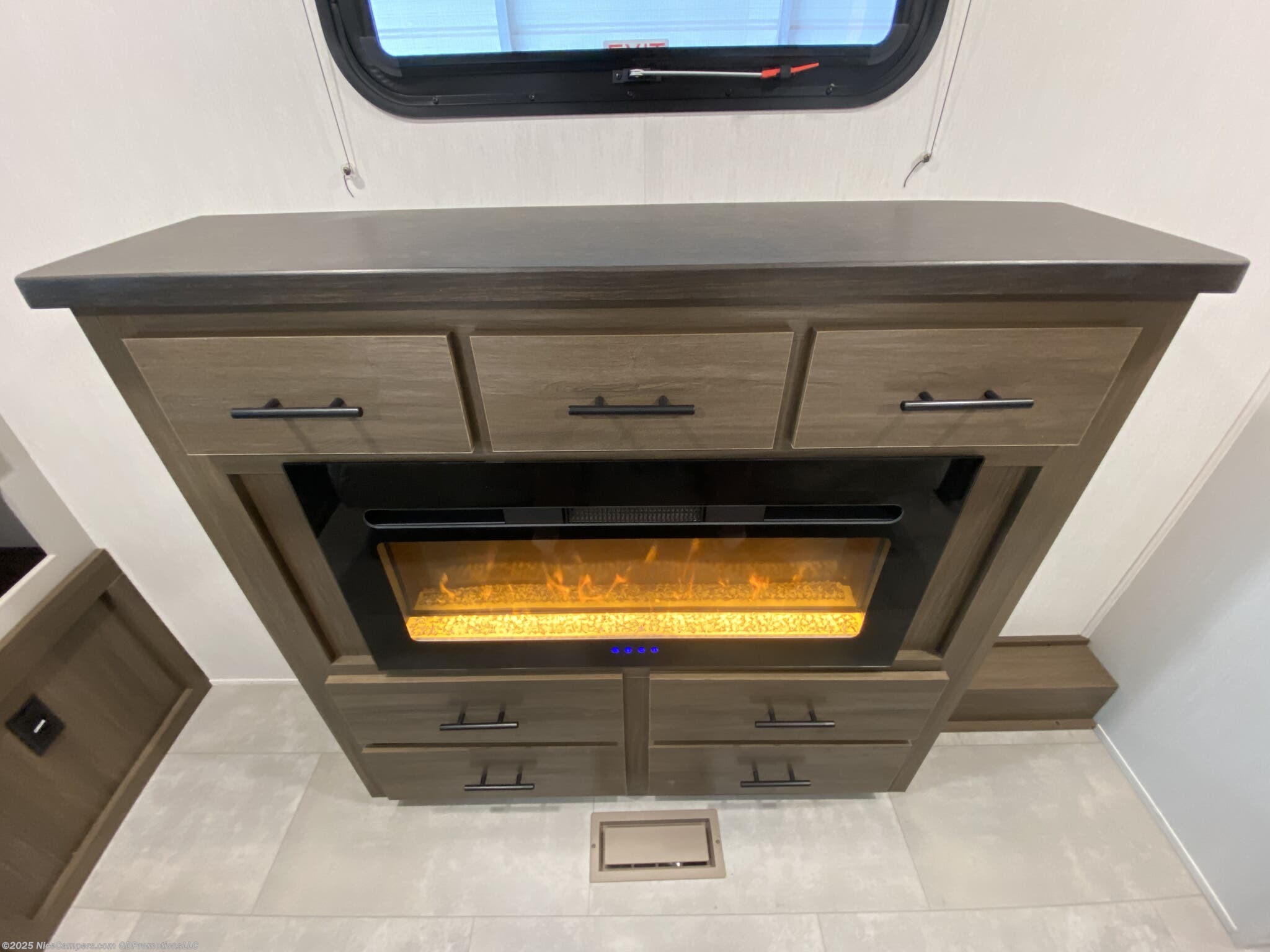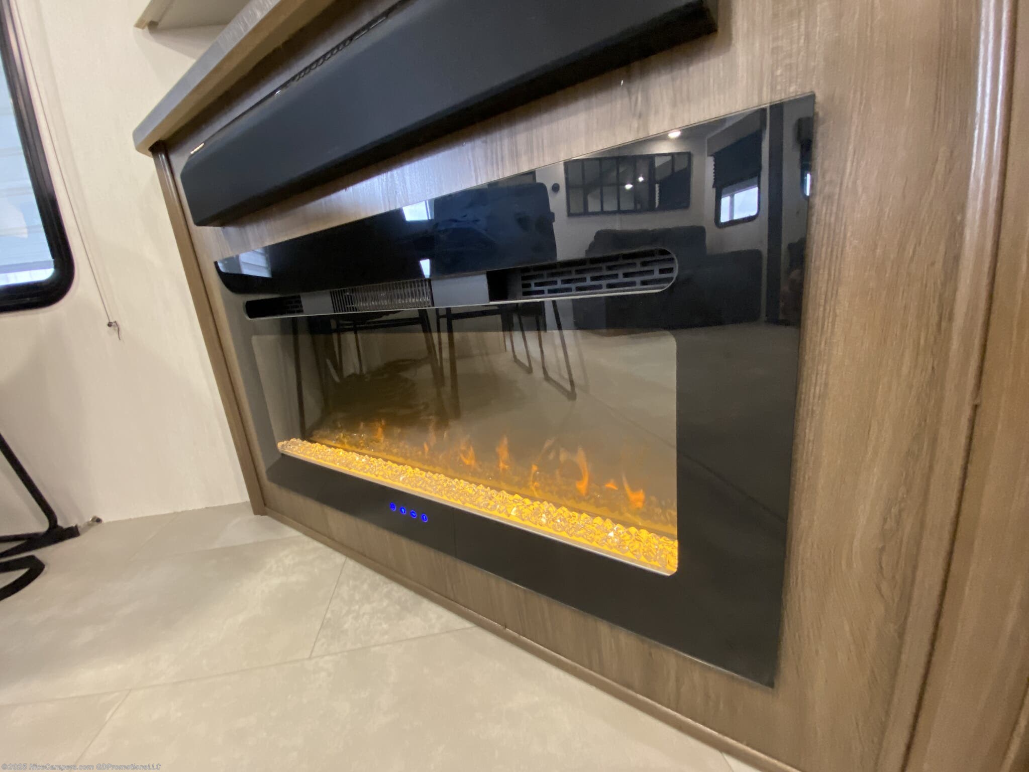 Fireplace, Free Standing Dinette w/Chairs, King Size Bed, Medicine Cabinet, Rocker Recliner(s), Roof Vents, Shower, Sofa Bed, Solid Surface Countertops, Toilet -