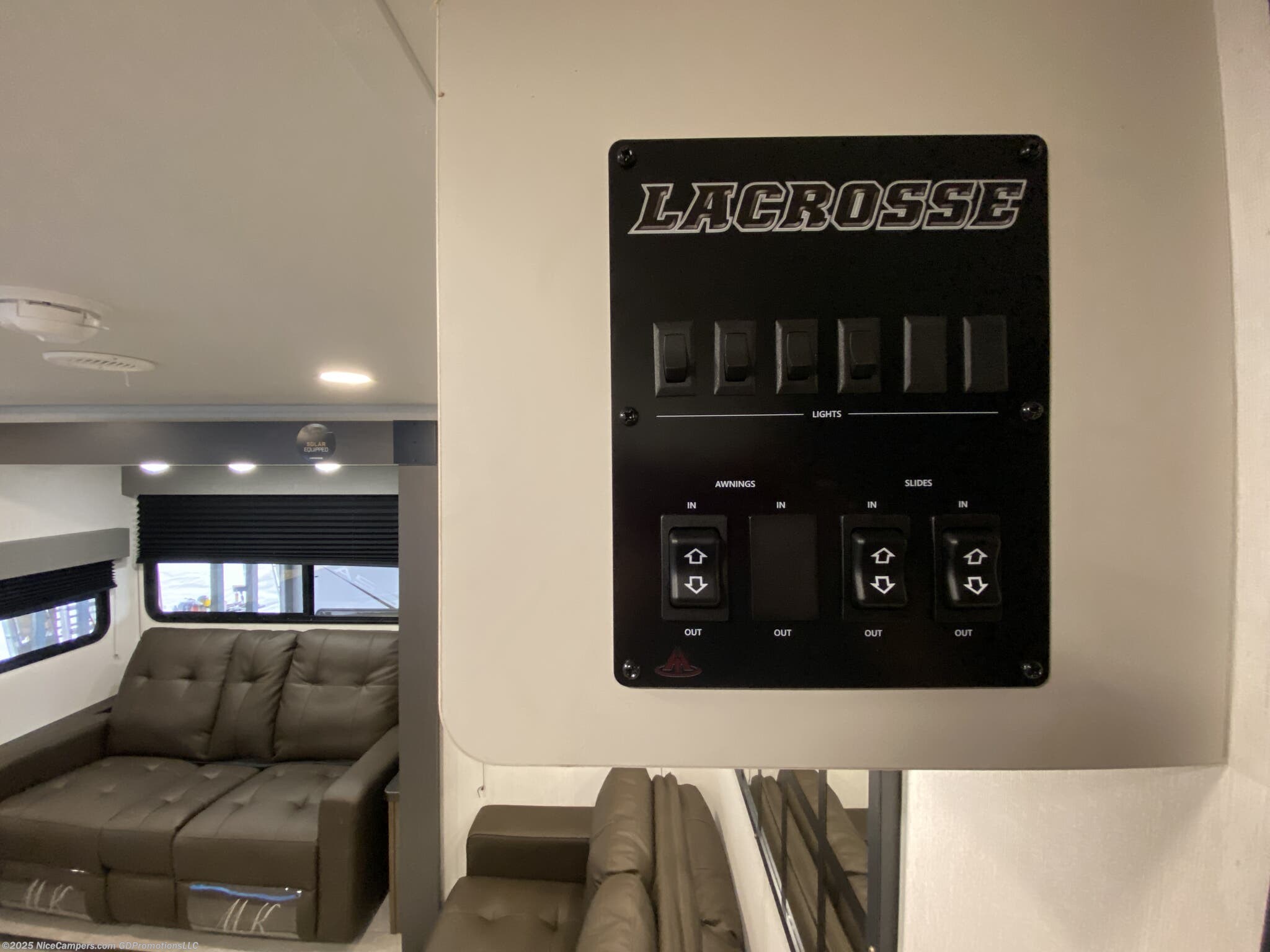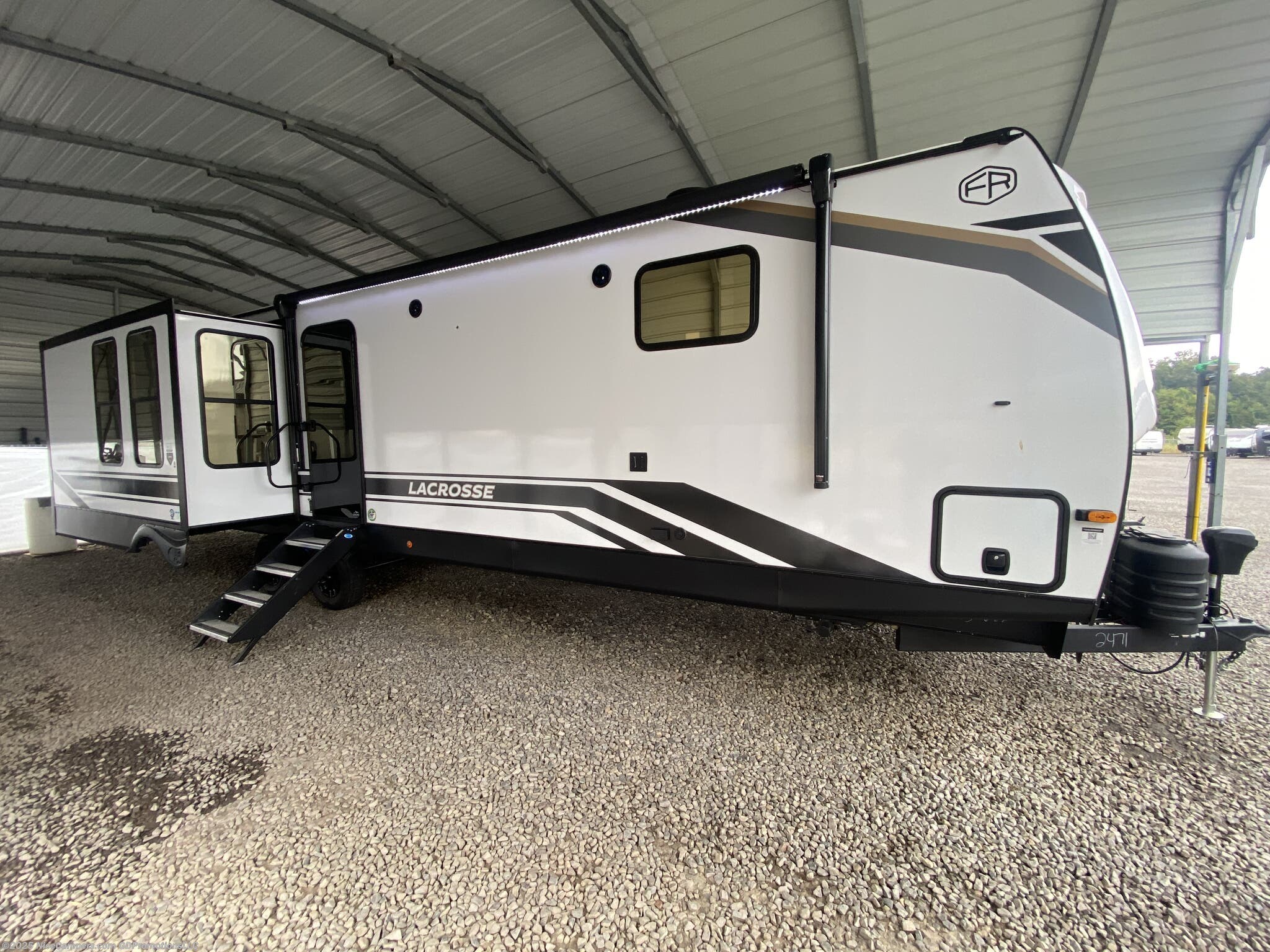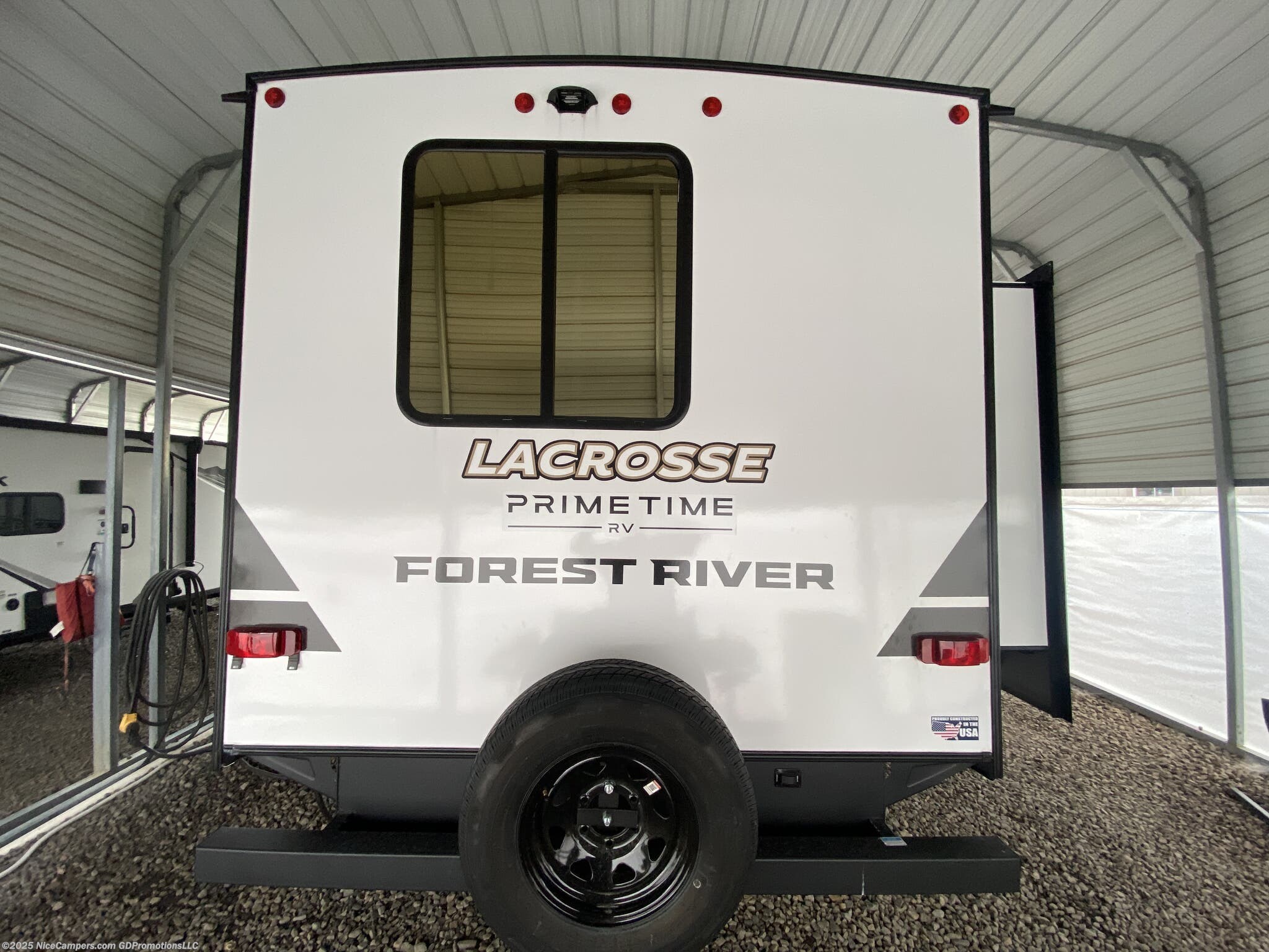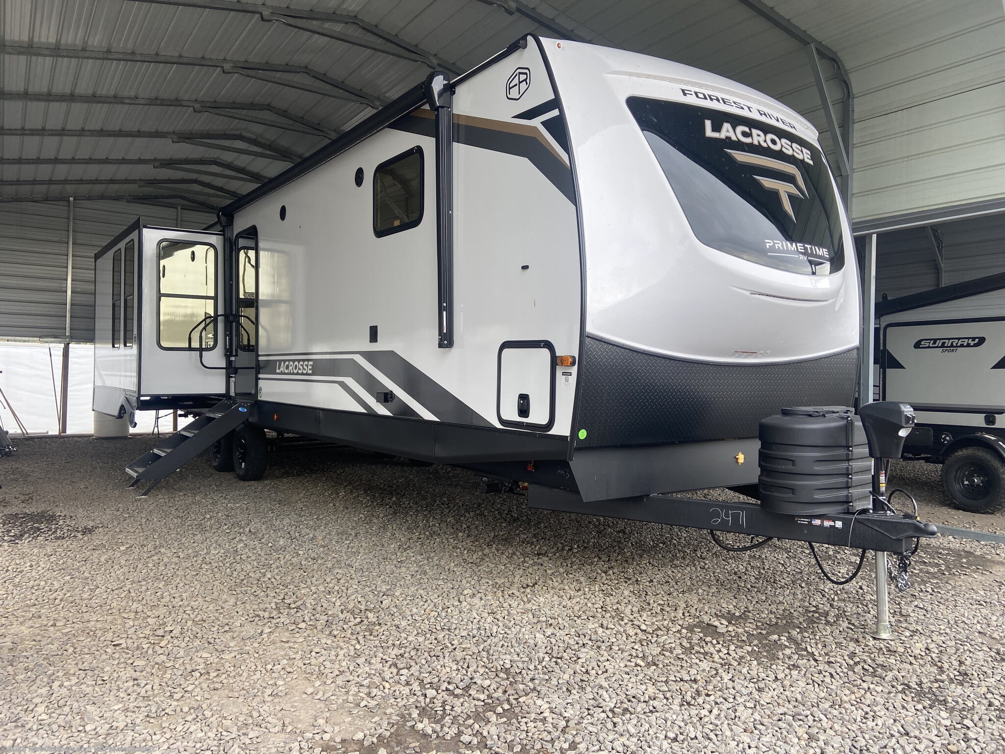 Make memories together as a family with this 2026 Prime Time LaCrosse 3411RK! Be a part of the Prime Time family with this 2026 Prime Time LaCrosse 3411RK. This rig sleeps 4, so it makes the perfect family RV. There’s plenty of room for the whole family thanks to three spacious slides. Entertain or cook up a cozy meal just for you in this RV kitchen equipped with the fridge, oven, stove. Spend time together as a family in the living area with the TV. Use the free standing dinette w/chairs for dinner time, homeschooling or remote work days. Sweet dreams are made of the king size bed in this RV bedroom. You’ll never get too hot or too cold inside your rig thanks to the heating option. Go longer without filling up thanks to the 42 gallon fresh water tanks. While the inside of this rig is enough on its own, the outside also features awning, black tank flush, enclosed underbelly, exterior speakers, external shower, leveling jacks, power awning, power roof vent, power stabilizer jacks, pvc roof, roof deck, skylight, slam latch baggage doors, slideout, spare tire kit and stabilizer jacks. Make sure kids don’t track mud inside with the outside shower.