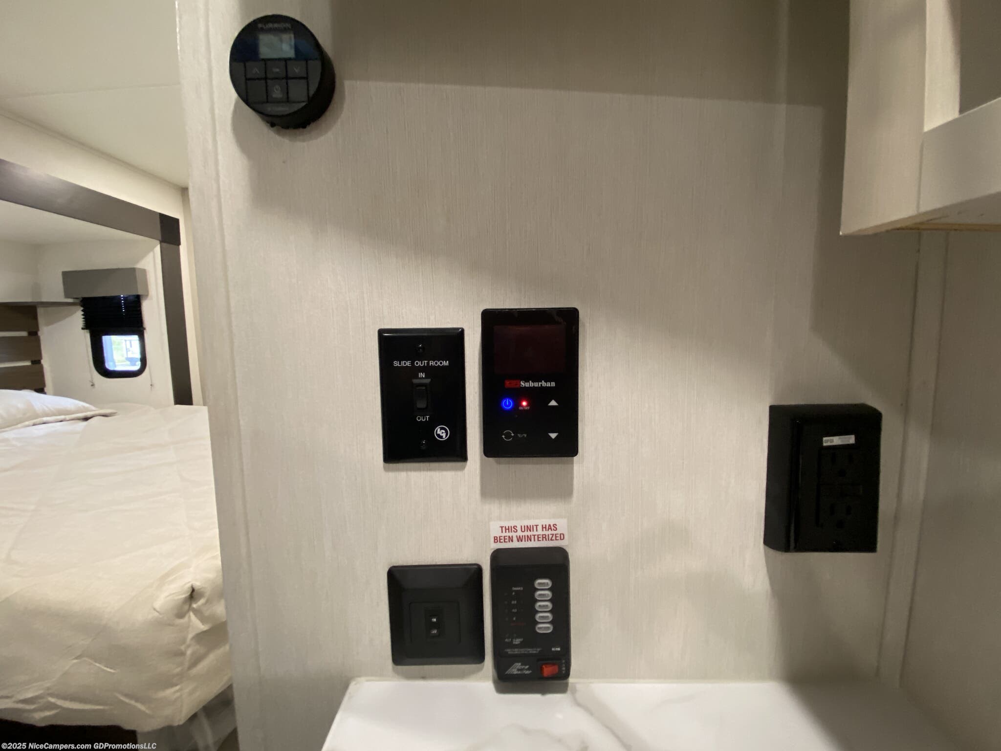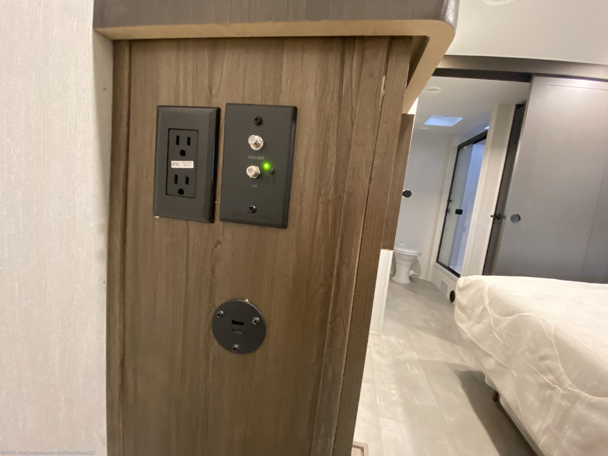 Awning, Black Tank Flush, Enclosed Underbelly, Exterior Speakers, External Shower, Leveling Jacks, Power Awning, Power Roof Vent, Power Stabilizer Jacks, PVC Roof, Roof Deck, Skylight, Slam Latch Baggage Doors, Slideout, Spare Tire Kit, Stabilizer Jacks -