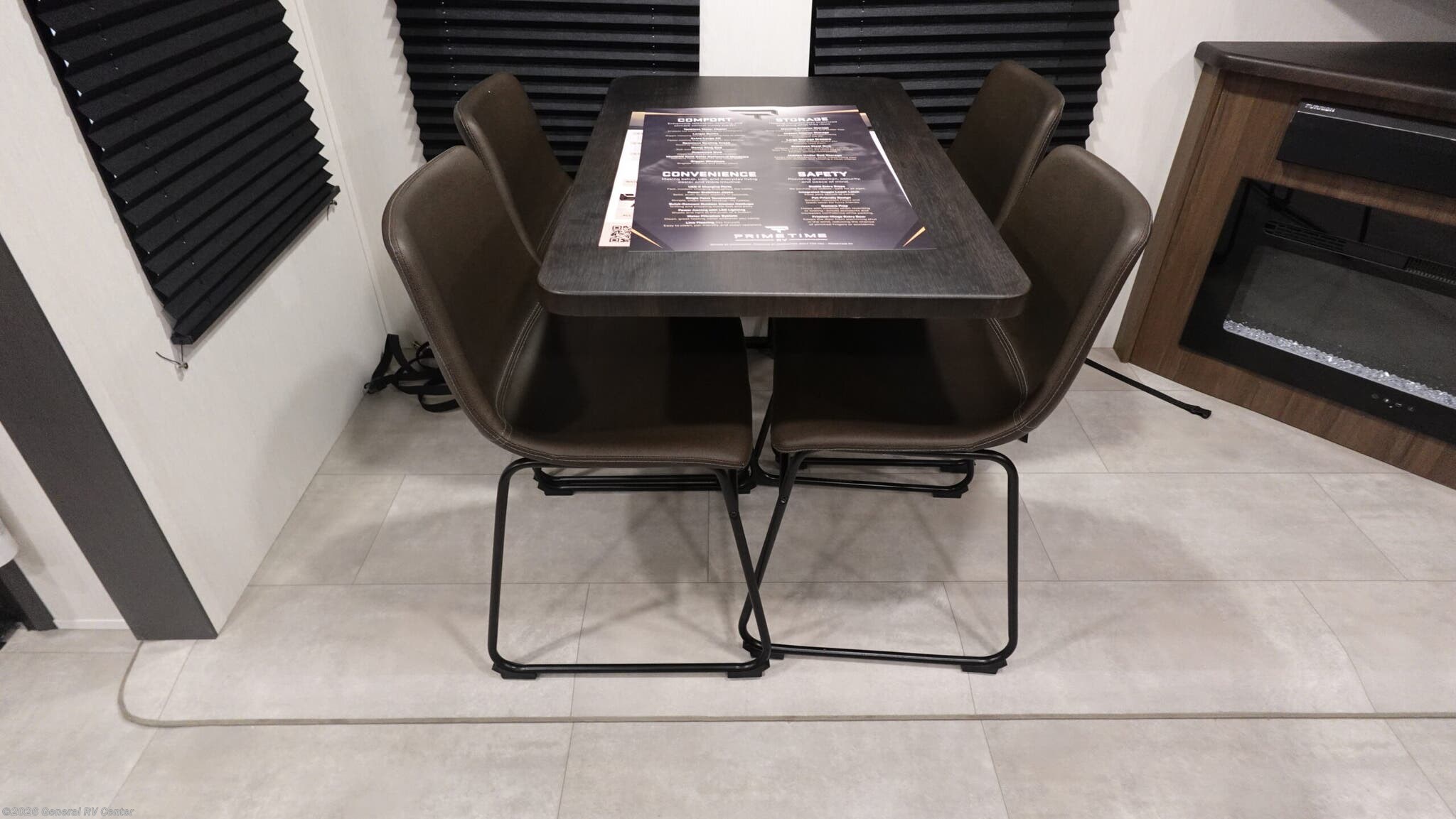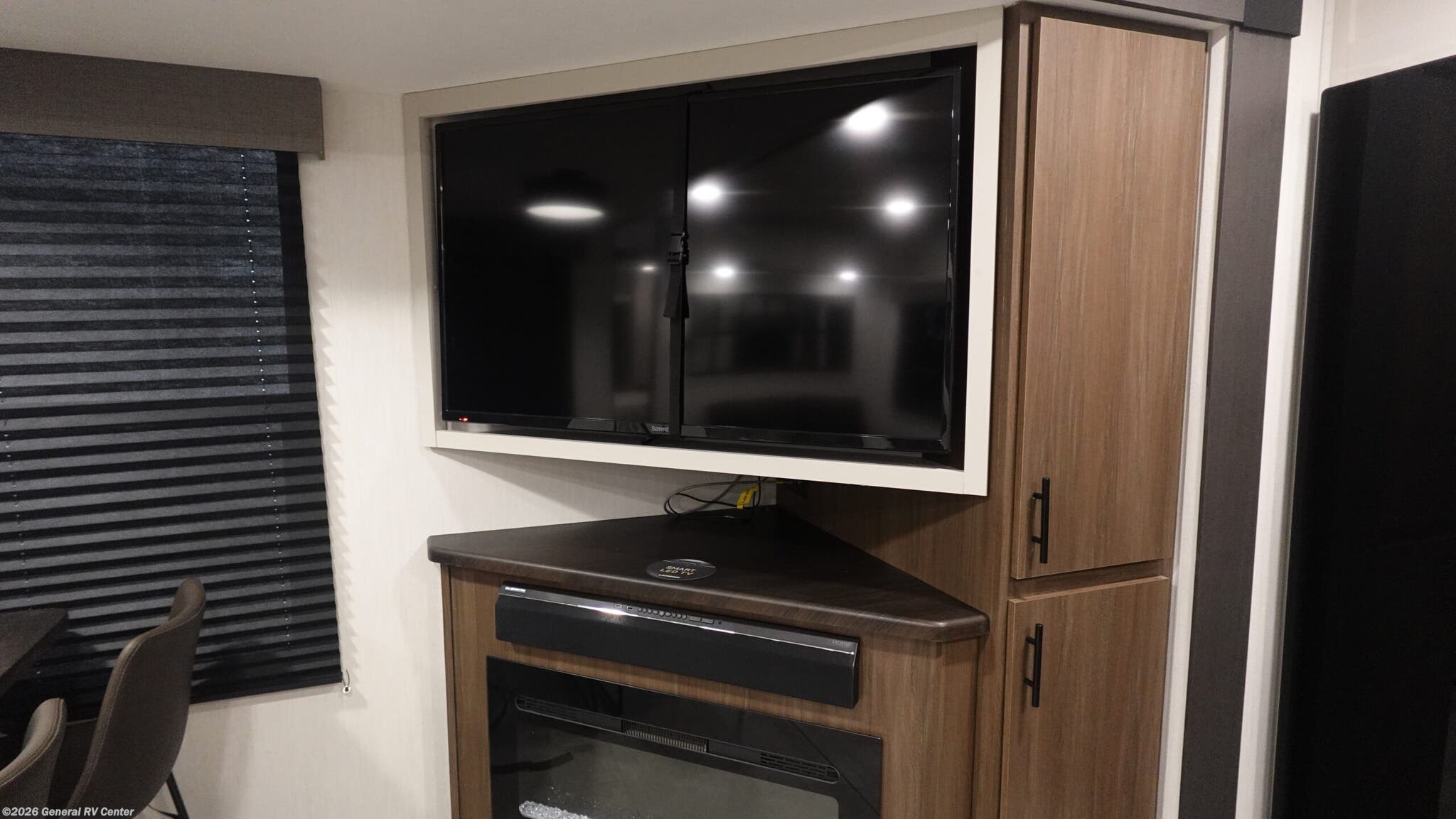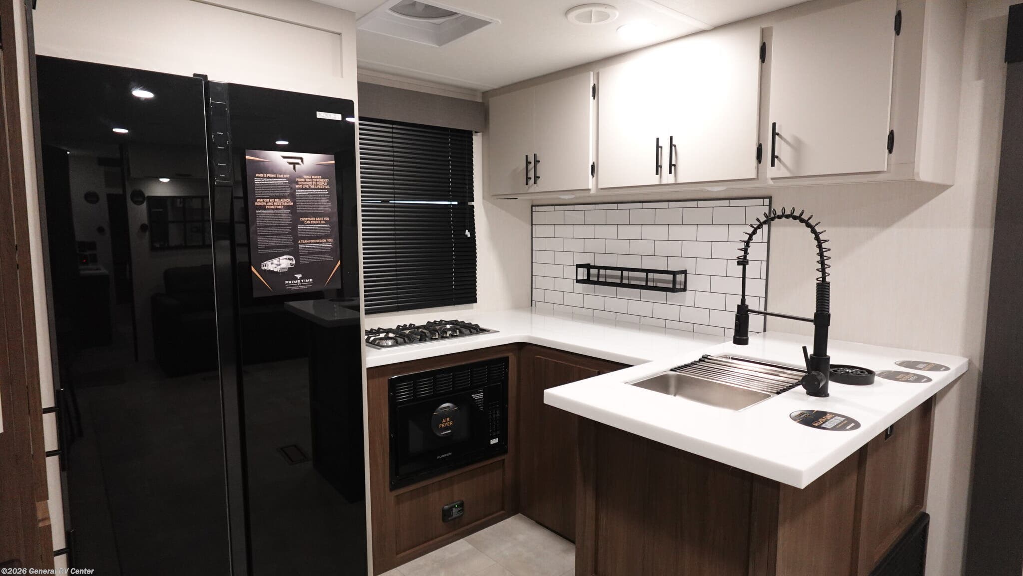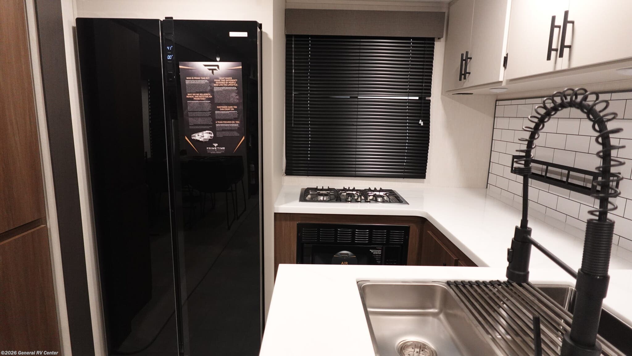 The 2026 Prime Time LaCrosse 3411RK is a marvel of modern RV design, offering an inviting blend of comfort and functionality. With its spacious layout, this travel trailer is perfect for couples or small families, comfortably sleeping up to four. The king-sized bed in the front bedroom provides a luxurious retreat, while the convertible seating in the center living area offers additional sleeping space when needed. The rear kitchen is a chef's delight, fully equipped with a full-size electric refrigerator and a three-burner cooktop, ensuring you have everything you need to whip up your favorite meals on the road. The LaCrosse 3411RK is designed with relaxation in mind. The center living area features a cozy theater seat and a hide-a-bed, perfect for unwinding after a day of adventure. A fireplace adds a touch of warmth and ambiance, making it a great spot to curl up with a good book or enjoy a movie night. With three slides, the interior is spacious and airy, providing plenty of room to move around. The 16 ft. powered retractable awning extends your living space outdoors, offering shade and shelter as you enjoy the great outdoors. This model is also prepped for a washer and dryer, adding to its convenience for longer trips. With ample storage throughout, including wardrobes and additional storage compartments, you can bring along all the essentials and more. If you're ready to explore this fantastic RV further, visit your nearest General RV dealership to see it in person.