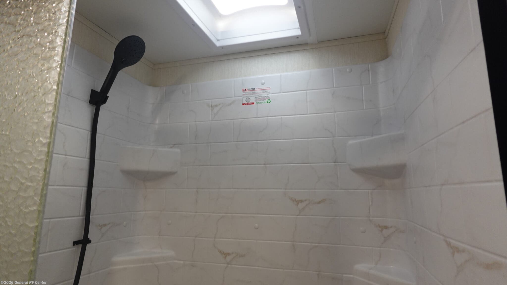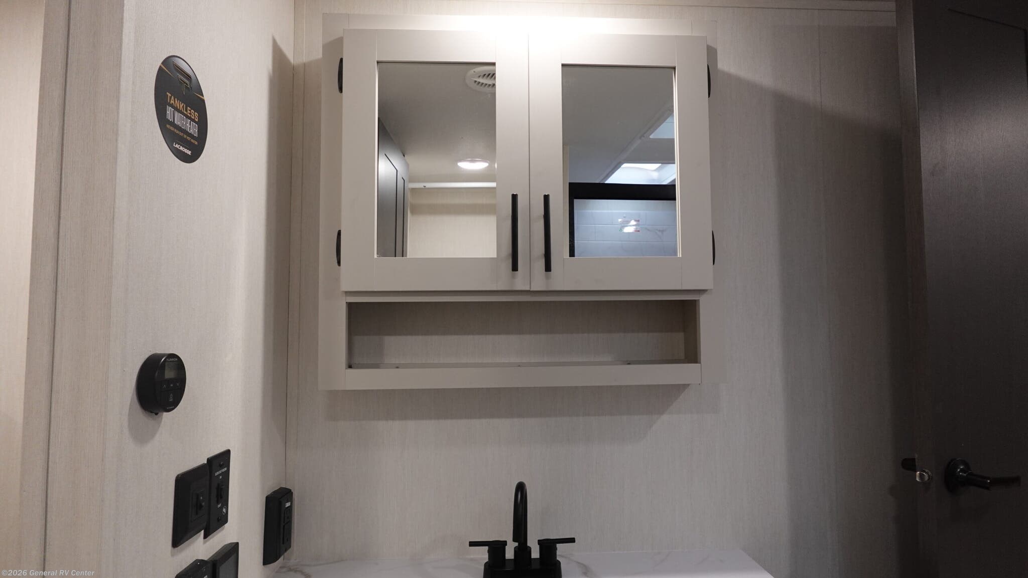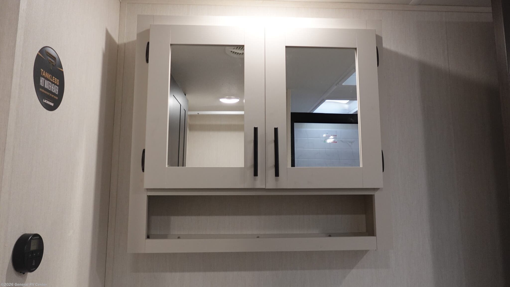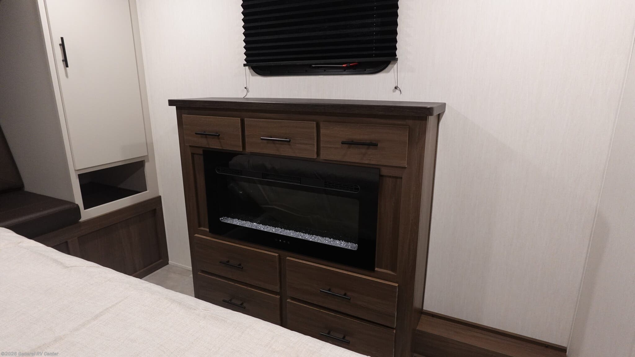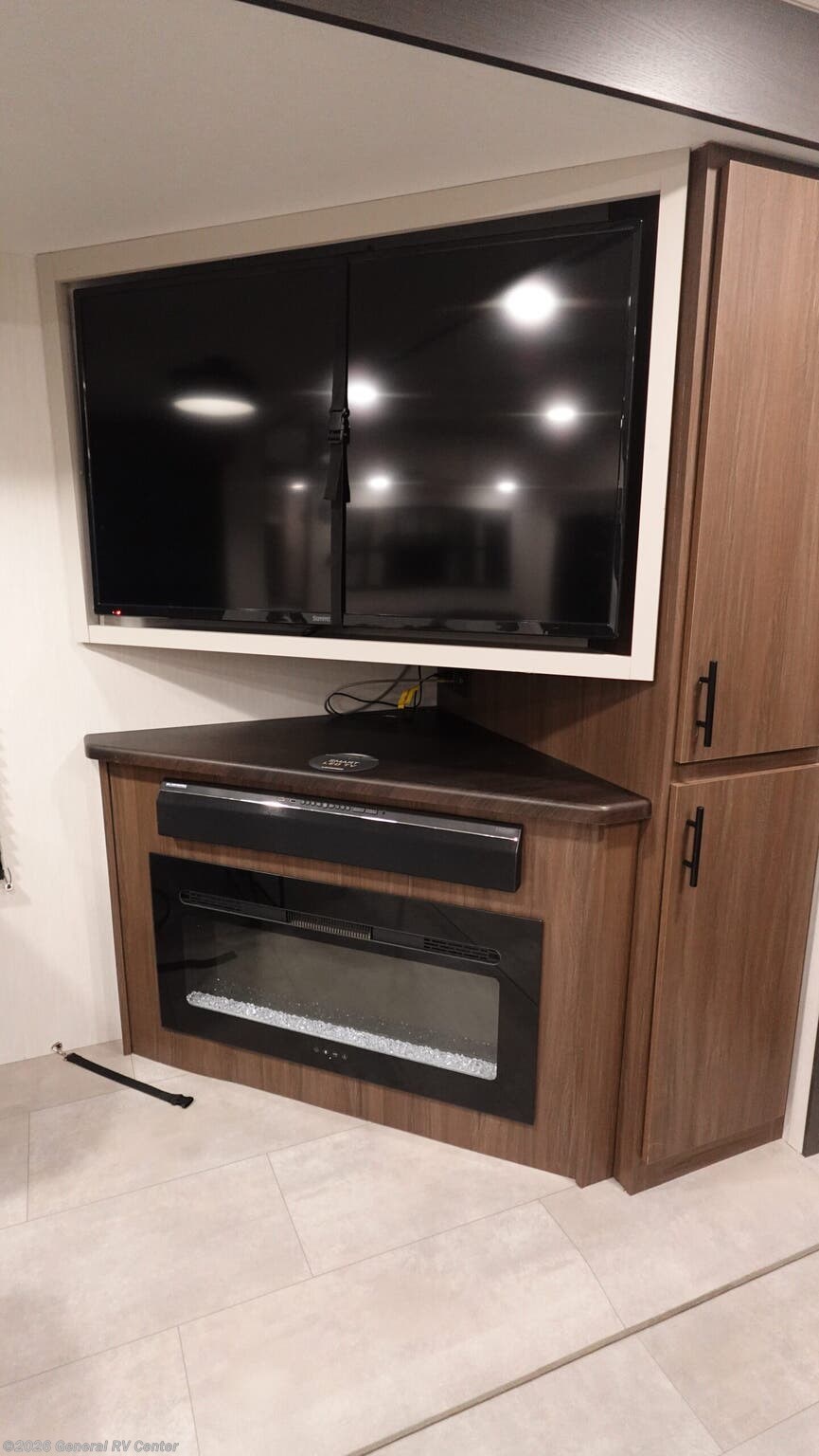 The 2026 Prime Time LaCrosse 3411RK is a marvel of modern RV design, offering an inviting blend of comfort and functionality. With its spacious layout, this travel trailer is perfect for couples or small families, comfortably sleeping up to four. The king-sized bed in the front bedroom provides a luxurious retreat, while the convertible seating in the center living area offers additional sleeping space when needed. The rear kitchen is a chef's delight, fully equipped with a full-size electric refrigerator and a three-burner cooktop, ensuring you have everything you need to whip up your favorite meals on the road. The LaCrosse 3411RK is designed with relaxation in mind. The center living area features a cozy theater seat and a hide-a-bed, perfect for unwinding after a day of adventure. A fireplace adds a touch of warmth and ambiance, making it a great spot to curl up with a good book or enjoy a movie night. With three slides, the interior is spacious and airy, providing plenty of room to move around. The 16 ft. powered retractable awning extends your living space outdoors, offering shade and shelter as you enjoy the great outdoors. This model is also prepped for a washer and dryer, adding to its convenience for longer trips. With ample storage throughout, including wardrobes and additional storage compartments, you can bring along all the essentials and more. If you're ready to explore this fantastic RV further, visit your nearest General RV dealership to see it in person.