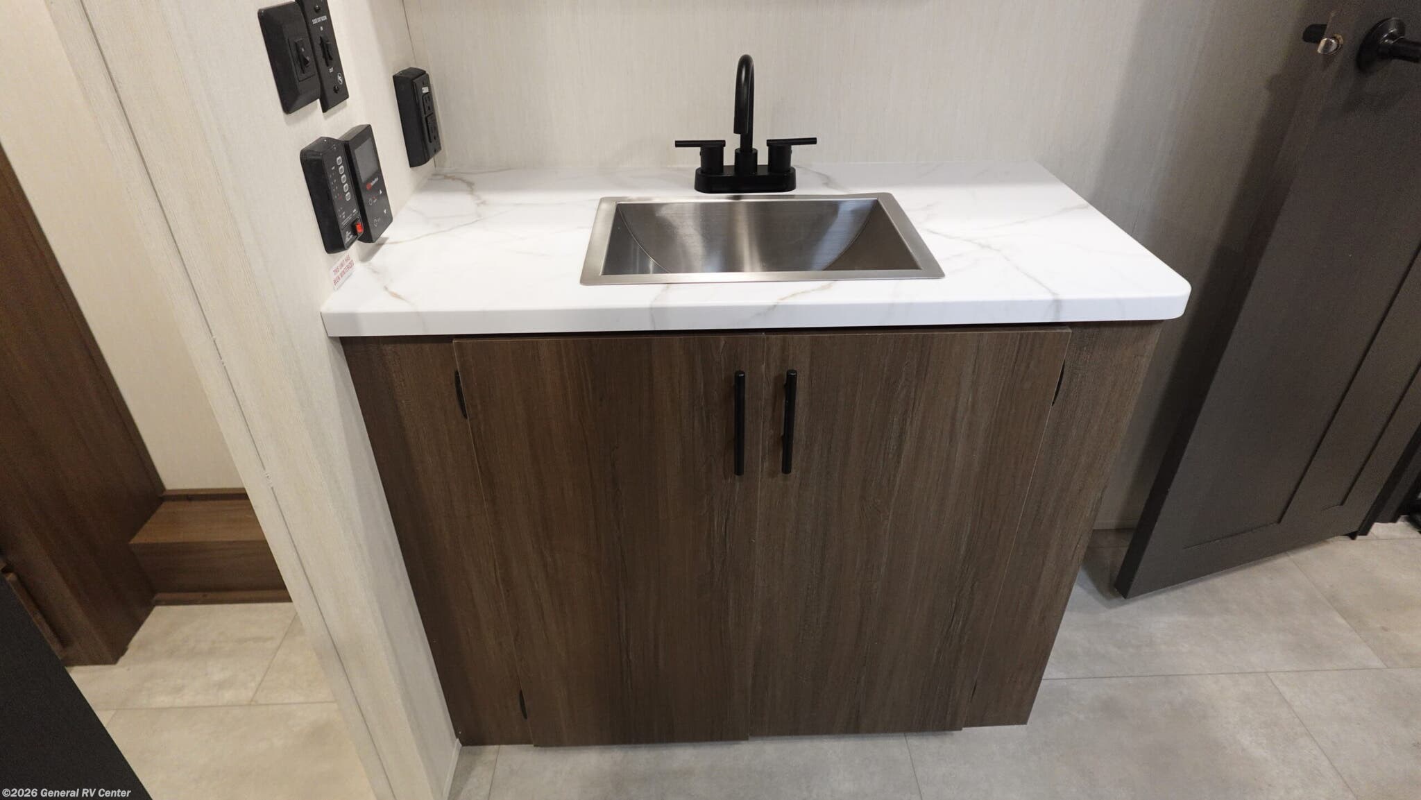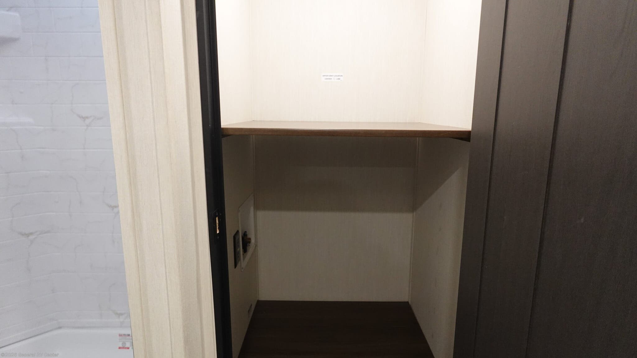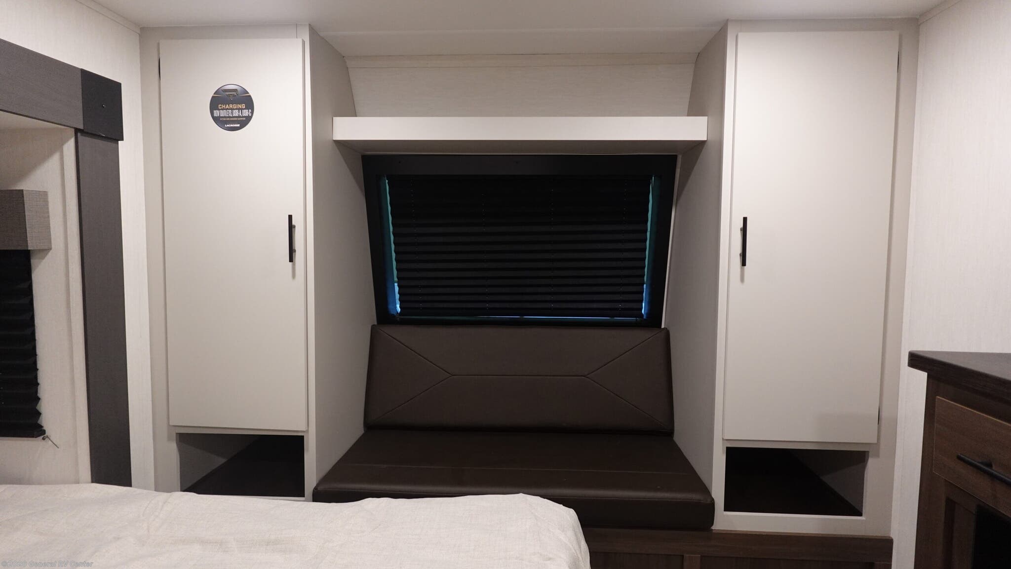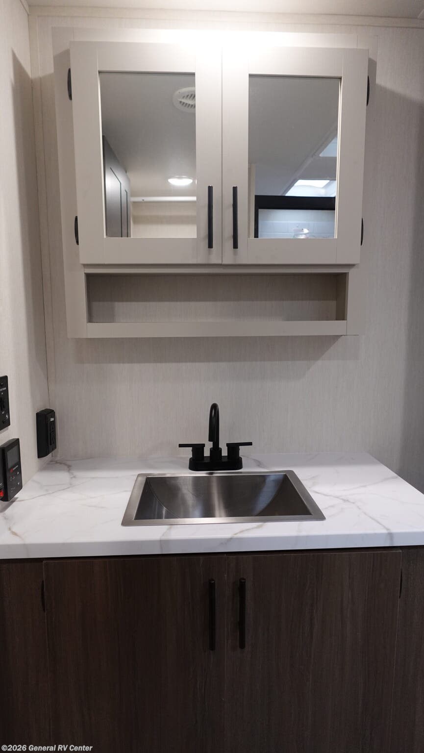 The 2026 Prime Time LaCrosse 3411RK is a marvel of modern RV design, offering an inviting blend of comfort and functionality. With its spacious layout, this travel trailer is perfect for couples or small families, comfortably sleeping up to four. The king-sized bed in the front bedroom provides a luxurious retreat, while the convertible seating in the center living area offers additional sleeping space when needed. The rear kitchen is a chef's delight, fully equipped with a full-size electric refrigerator and a three-burner cooktop, ensuring you have everything you need to whip up your favorite meals on the road. The LaCrosse 3411RK is designed with relaxation in mind. The center living area features a cozy theater seat and a hide-a-bed, perfect for unwinding after a day of adventure. A fireplace adds a touch of warmth and ambiance, making it a great spot to curl up with a good book or enjoy a movie night. With three slides, the interior is spacious and airy, providing plenty of room to move around. The 16 ft. powered retractable awning extends your living space outdoors, offering shade and shelter as you enjoy the great outdoors. This model is also prepped for a washer and dryer, adding to its convenience for longer trips. With ample storage throughout, including wardrobes and additional storage compartments, you can bring along all the essentials and more. If you're ready to explore this fantastic RV further, visit your nearest General RV dealership to see it in person.