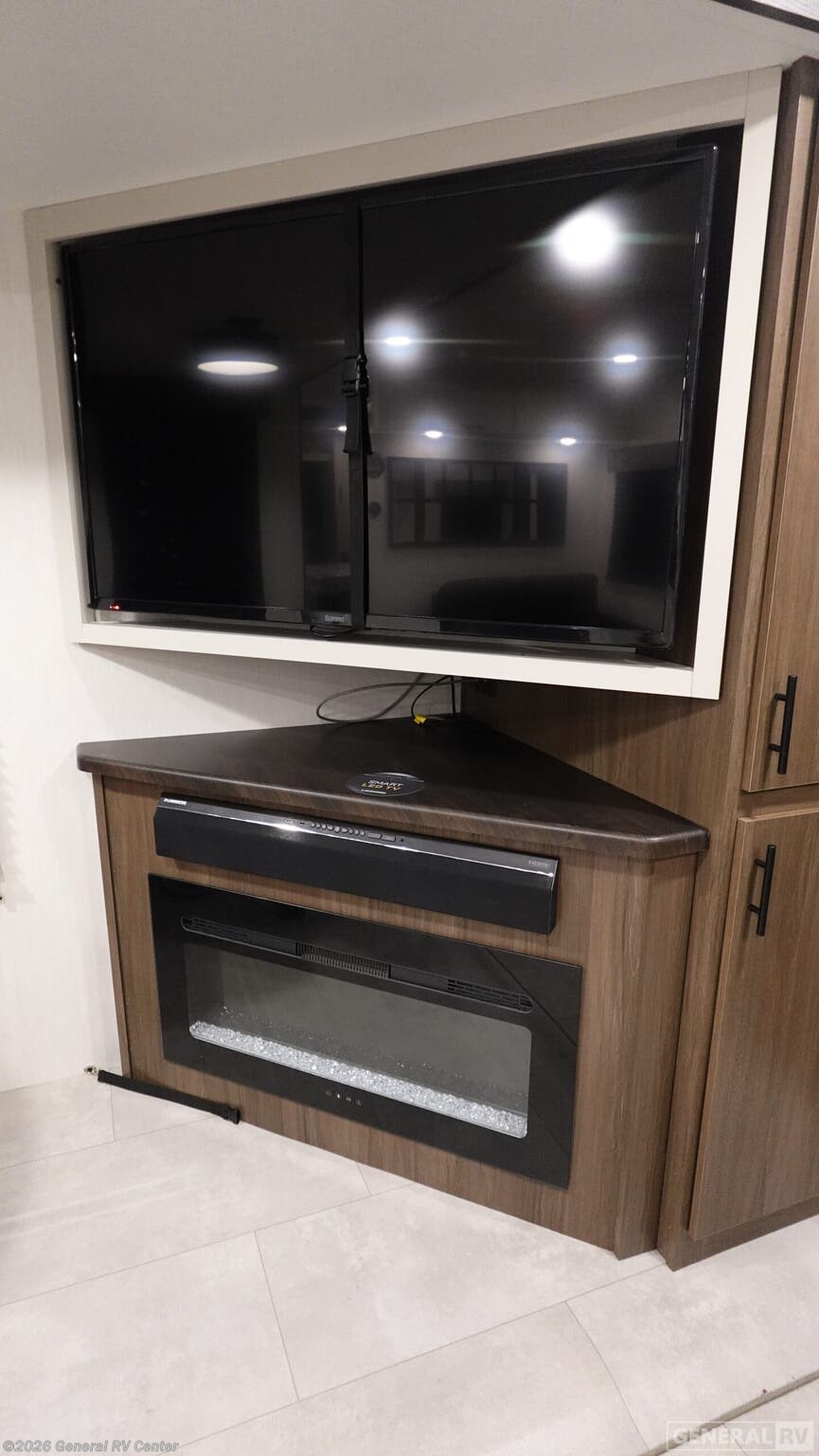 The 2026 Prime Time LaCrosse 3411RK is a marvel of modern RV design, offering an inviting blend of comfort and functionality. With its spacious layout, this travel trailer is perfect for couples or small families, comfortably sleeping up to four. The king-sized bed in the front bedroom provides a luxurious retreat, while the convertible seating in the center living area offers additional sleeping space when needed. The rear kitchen is a chef's delight, fully equipped with a full-size electric refrigerator and a three-burner cooktop, ensuring you have everything you need to whip up your favorite meals on the road. The LaCrosse 3411RK is designed with relaxation in mind. The center living area features a cozy theater seat and a hide-a-bed, perfect for unwinding after a day of adventure. A fireplace adds a touch of warmth and ambiance, making it a great spot to curl up with a good book or enjoy a movie night. With three slides, the interior is spacious and airy, providing plenty of room to move around. The 16 ft. powered retractable awning extends your living space outdoors, offering shade and shelter as you enjoy the great outdoors. This model is also prepped for a washer and dryer, adding to its convenience for longer trips. With ample storage throughout, including wardrobes and additional storage compartments, you can bring along all the essentials and more. If you're ready to explore this fantastic RV further, visit your nearest General RV dealership to see it in person.