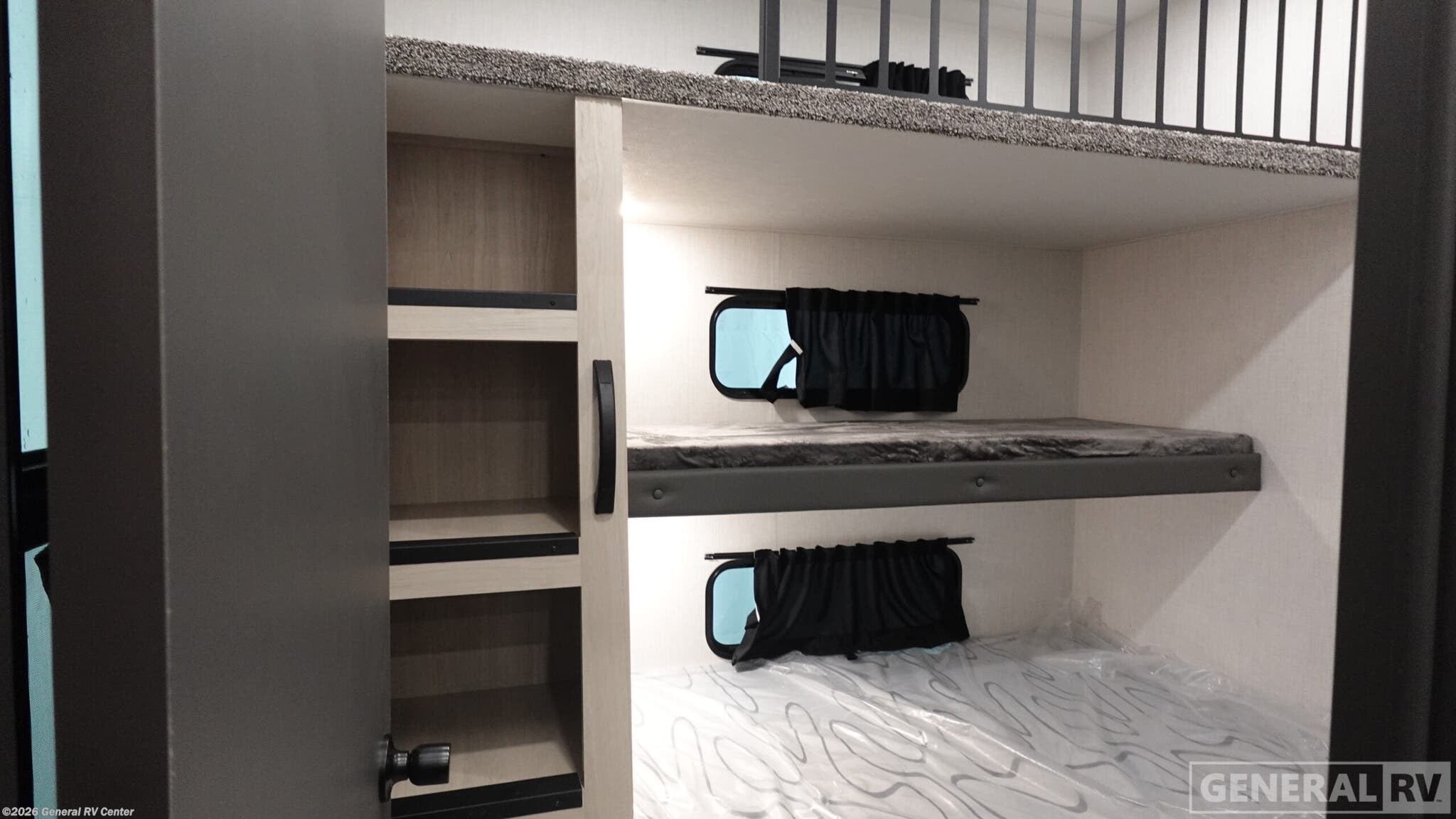 Prime Time LaCrosse 40+ foot travel trailer 44PARK highlights: Front Bathroom Bunkhouse Fireplace Two Full Bathrooms This stunning travel trailer is designed for families and travelers who crave comfort. Two rear bunk beds and a cozy loft above them create a fun and playful sleeping area for kids or guests, perfect for family bonding and sweet dreams. The full bathroom is equipped with everything you need to start your day feeling refreshed and revitalized. In the living area, the entertainment center features a warm fireplace, ideal for chilly evenings and cozy movie nights, while the plush L sofa is the perfect spot to unwind and enjoy quality time with loved ones. The pantry is stocked with storage for your favorite snacks and ingredients, while the fridge keeps everything fresh. There is a well-equipped kitchen with a spacious countertop for added convenience. Plus, the main bedroom is a peaceful sanctuary, featuring a luxurious king bed, spacious wardrobes, a stylish dresser, and the front bathroom is a thoughtful touch, offering privacy for your family or guests. If you used to think that you had to spend a fortune to get a luxury RV, think again because the Prime Time LaCrosse travel trailer proves that you can combine luxury with value! The LaCrosse features premium, solid entry steps, fireplace, 17 cu. ft. residential-style refrigerator, and Tufflex PVC roof. On the exterior, the fully enclosed underbelly protects your unit so that you can adventure during colder weather, and the power awning w/ LED lights is certainly a valuable feature that allows you to sit outside underneath some shade on a sunny afternoon. Come choose your model today!