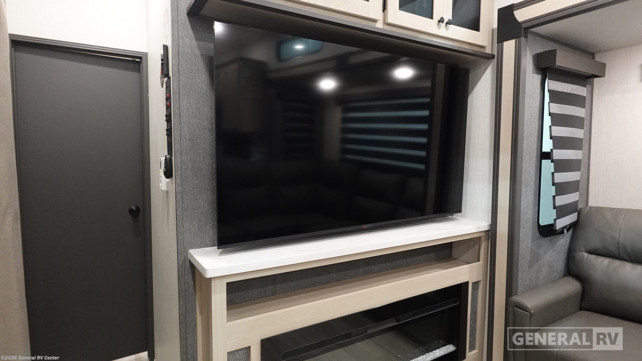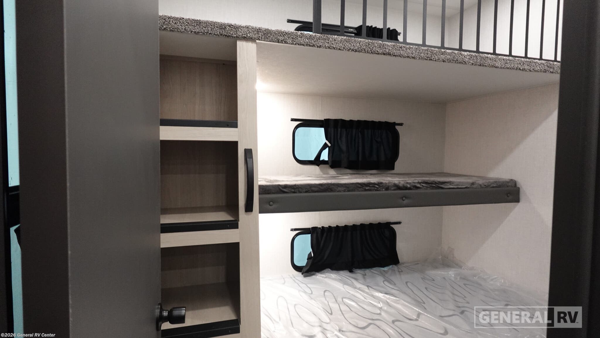 Prime Time LaCrosse 40+ foot travel trailer 44PARK highlights: Front Bathroom Bunkhouse Fireplace Two Full Bathrooms This stunning travel trailer is designed for families and travelers who crave comfort. Two rear bunk beds and a cozy loft above them create a fun and playful sleeping area for kids or guests, perfect for family bonding and sweet dreams. The full bathroom is equipped with everything you need to start your day feeling refreshed and revitalized. In the living area, the entertainment center features a warm fireplace, ideal for chilly evenings and cozy movie nights, while the plush L sofa is the perfect spot to unwind and enjoy quality time with loved ones. The pantry is stocked with storage for your favorite snacks and ingredients, while the fridge keeps everything fresh. There is a well-equipped kitchen with a spacious countertop for added convenience. Plus, the main bedroom is a peaceful sanctuary, featuring a luxurious king bed, spacious wardrobes, a stylish dresser, and the front bathroom is a thoughtful touch, offering privacy for your family or guests. If you used to think that you had to spend a fortune to get a luxury RV, think again because the Prime Time LaCrosse travel trailer proves that you can combine luxury with value! The LaCrosse features premium, solid entry steps, fireplace, 17 cu. ft. residential-style refrigerator, and Tufflex PVC roof. On the exterior, the fully enclosed underbelly protects your unit so that you can adventure during colder weather, and the power awning w/ LED lights is certainly a valuable feature that allows you to sit outside underneath some shade on a sunny afternoon. Come choose your model today!