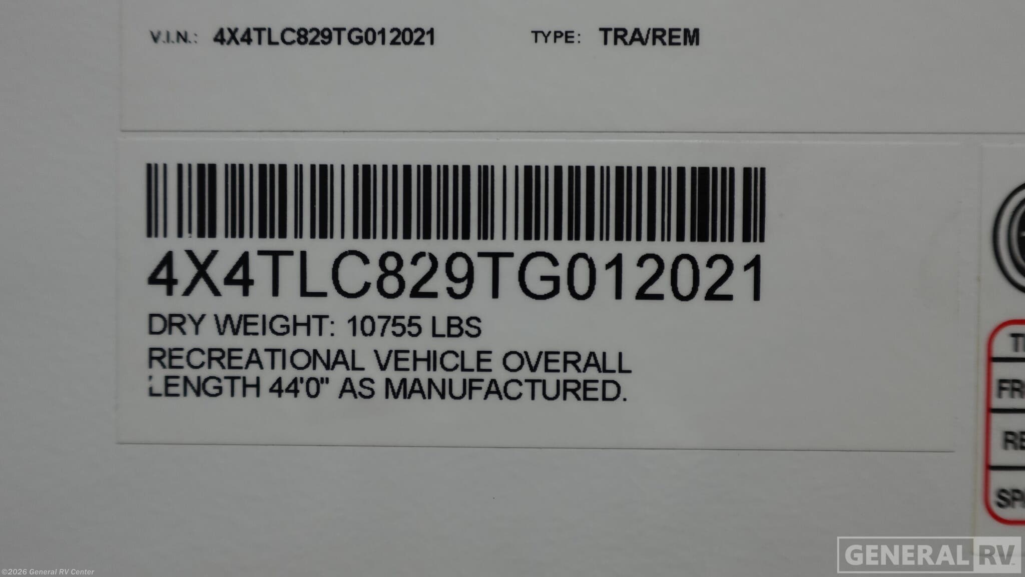 - VIN4X4TLC829TG012021