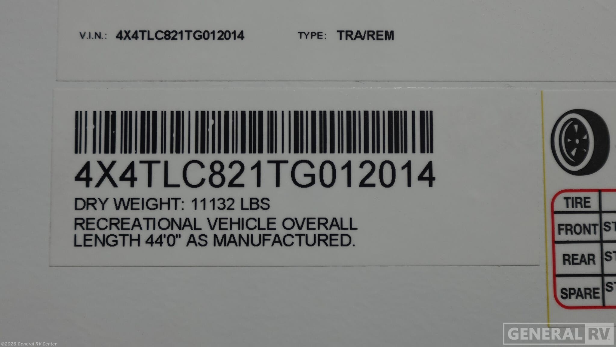 - VIN4X4TLC821TG012014