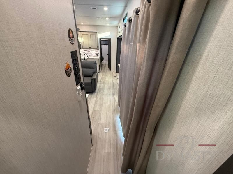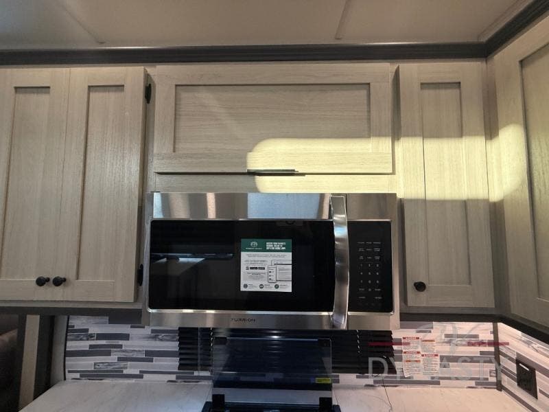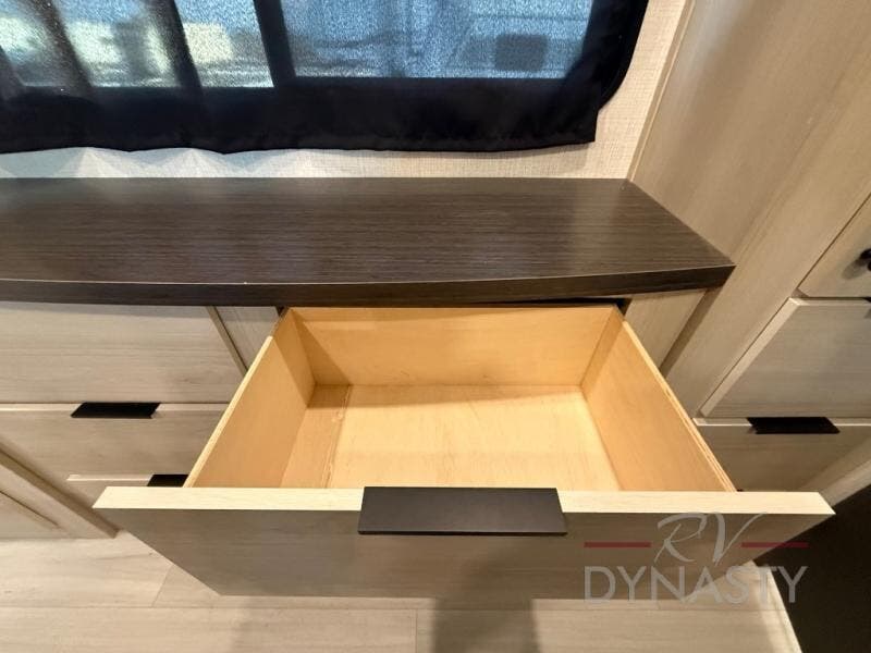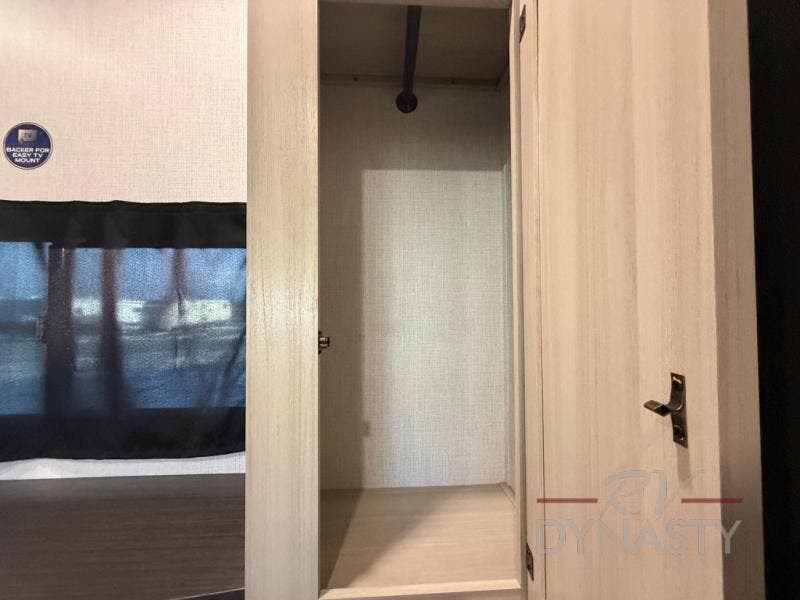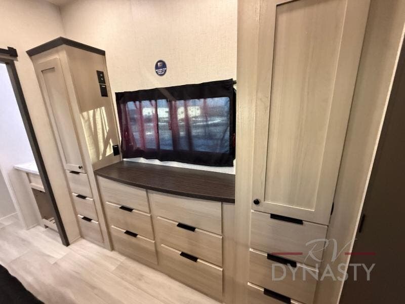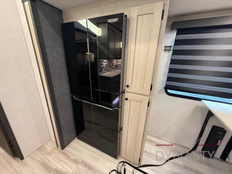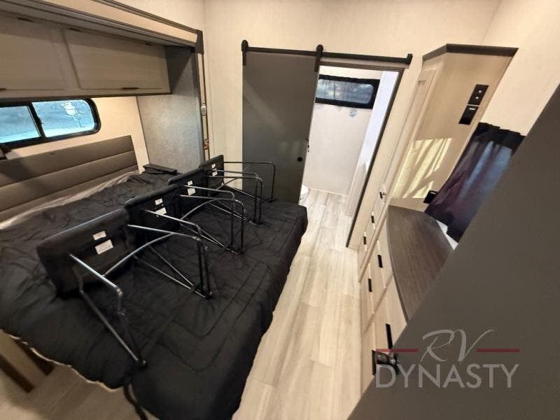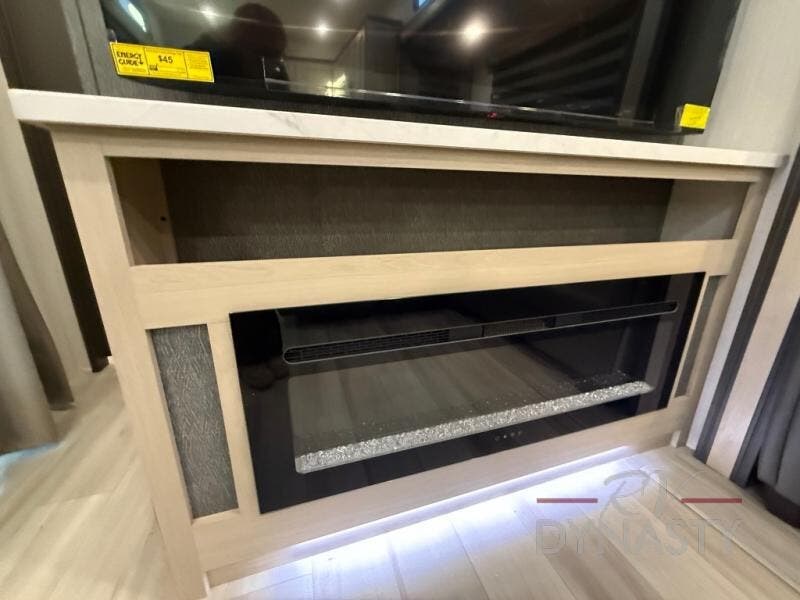 This stunning travel trailer is designed for families and travelers who crave comfort. Two rear bunk beds and a cozy loft above them create a fun and playful sleeping area for kids or guests, perfect for family bonding and sweet dreams. The full bathroom is equipped with everything you need to start your day feeling refreshed and revitalized. In the living area, the entertainment center features a warm fireplace, ideal for chilly evenings and cozy movie nights, while the plush L sofa is the perfect spot to unwind and enjoy quality time with loved ones. The pantry is stocked with storage for your favorite snacks and ingredients, while the fridge keeps everything fresh. There is a well-equipped kitchen with a spacious countertop for added convenience. Plus, the main bedroom is a peaceful sanctuary, featuring a luxurious king bed, spacious wardrobes, a stylish dresser, and the front bathroom is a thoughtful touch, offering privacy for your family or guests.