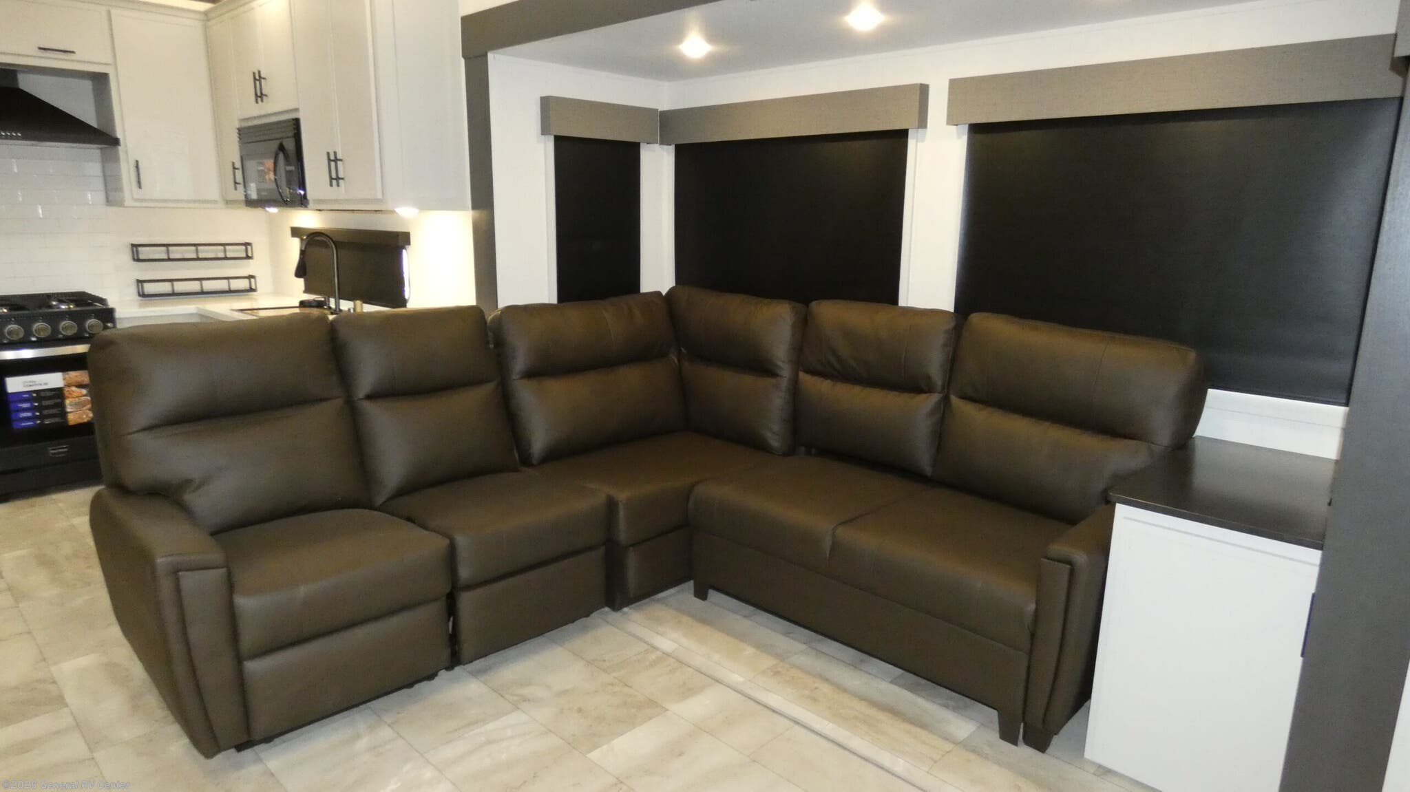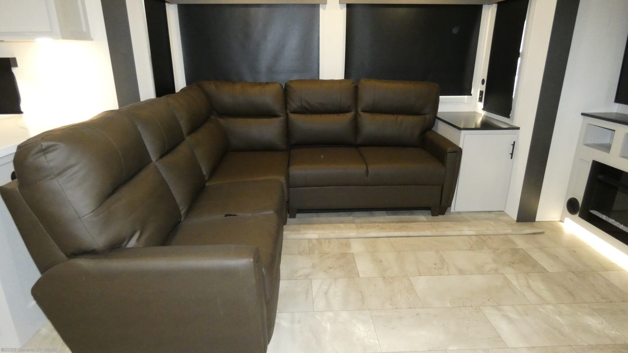**Prime Time RV Sanibel fifth wheel 38LAUNDRY highlights:** * Half Bath * King Bed * Rear Kitchen * Range Hood One of the standout features of the 38LAUNDRY fifth wheel is the convenient stackable washer and dryer located in the half bath, letting you take care of laundry right from the comfort of your trailer, no campground laundromat needed. After a day full of outdoor adventures, everyone can relax together in the spacious living room, which features a large sectional sleeper sofa perfect for movie nights or extra sleeping space. The equipped kitchen includes a four-burner range, giving the chef plenty of room to cook up delicious meals with ease. And when it's time to unwind, the private bedroom offers a peaceful retreat complete with a walk-through private bathroom featuring a dual vanity and a generous walk-in closet, ideal for storing all your clothes and camping gear. The Sanibel series stands out with a combination of unique and highly functional exterior and interior features designed for both convenience and durability. On the outside, a drop-frame pass-through storage area with a rubberized liner offers ample space while protecting your gear from moisture and wear. Setting up camp is effortless thanks to the one-touch auto-leveling system and rubberized suspension equalizer, which provide a smooth and stable foundation. Inside, comfort meets practicality with carpet less slides for easy cleaning and blackout roller shades for privacy and temperature control. The real wood cabinet doors and solid surface countertops add a touch of elegance, no matter where the road takes you.