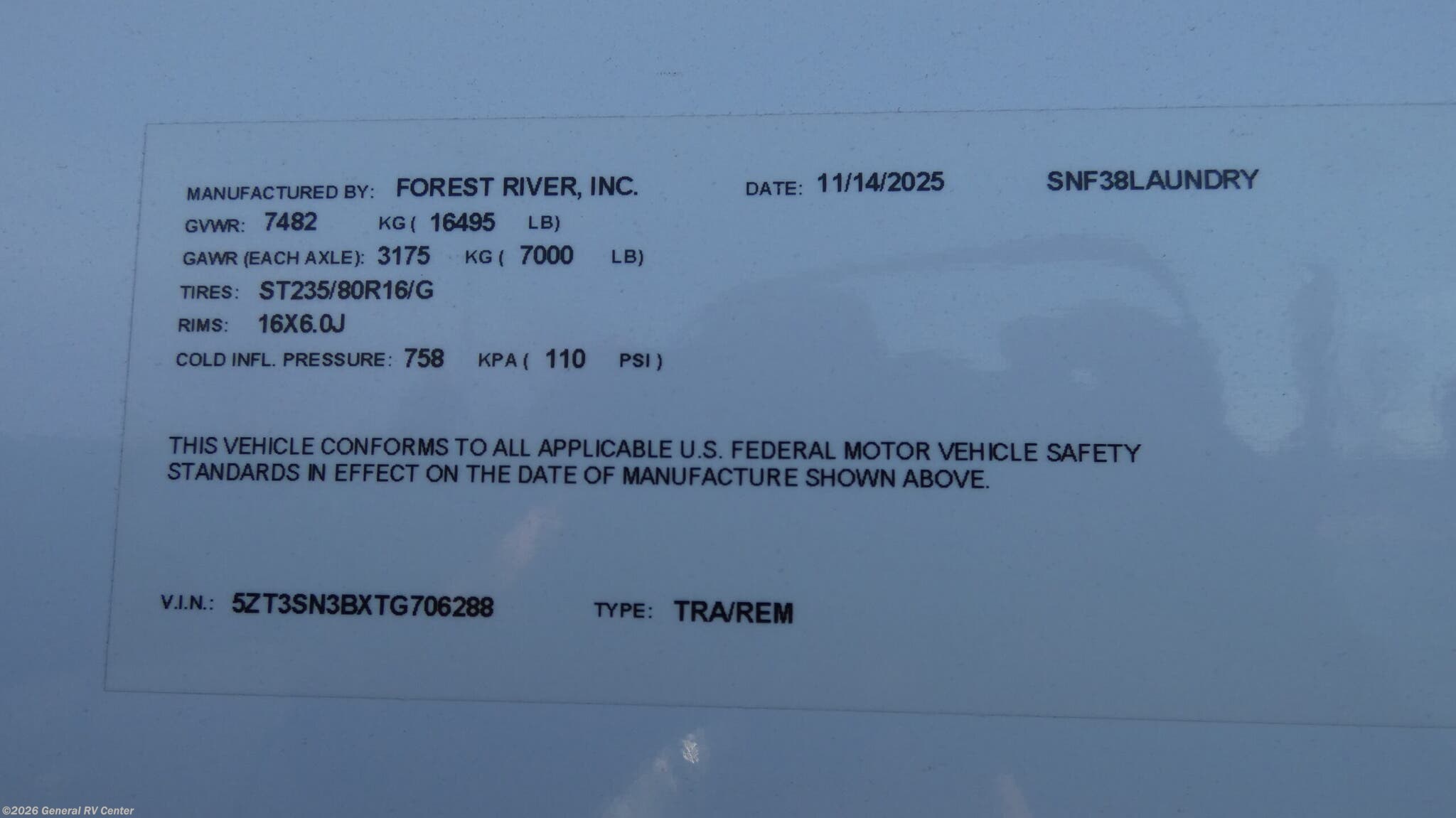 2026 Prime Time Sanibel 38LAUNDRY Specifications