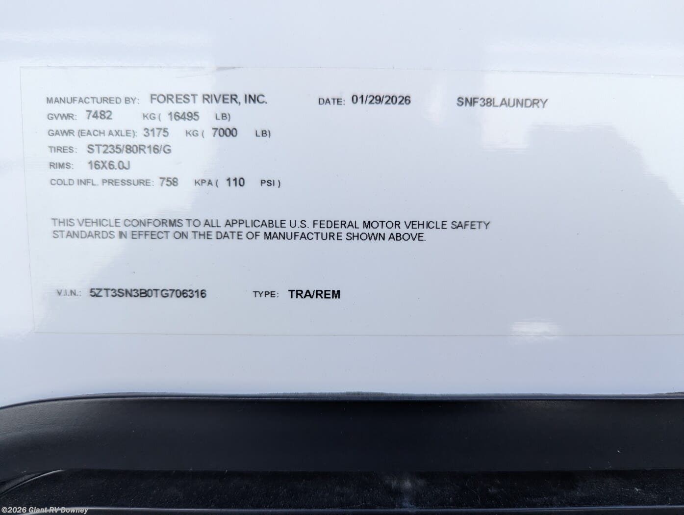 - VIN5ZT3SN3B0TG706316