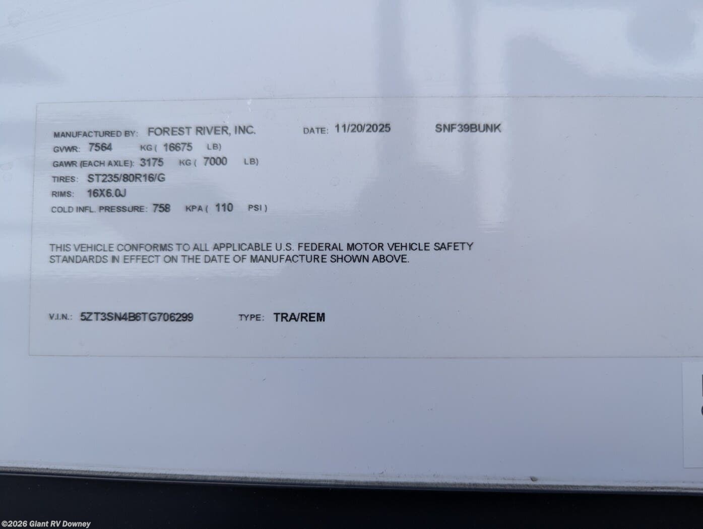 - VIN5ZT3SN4B6TG706299