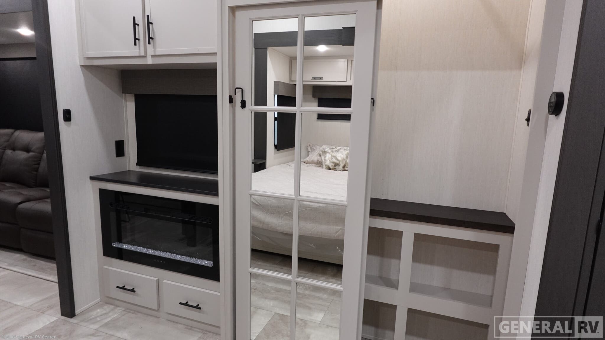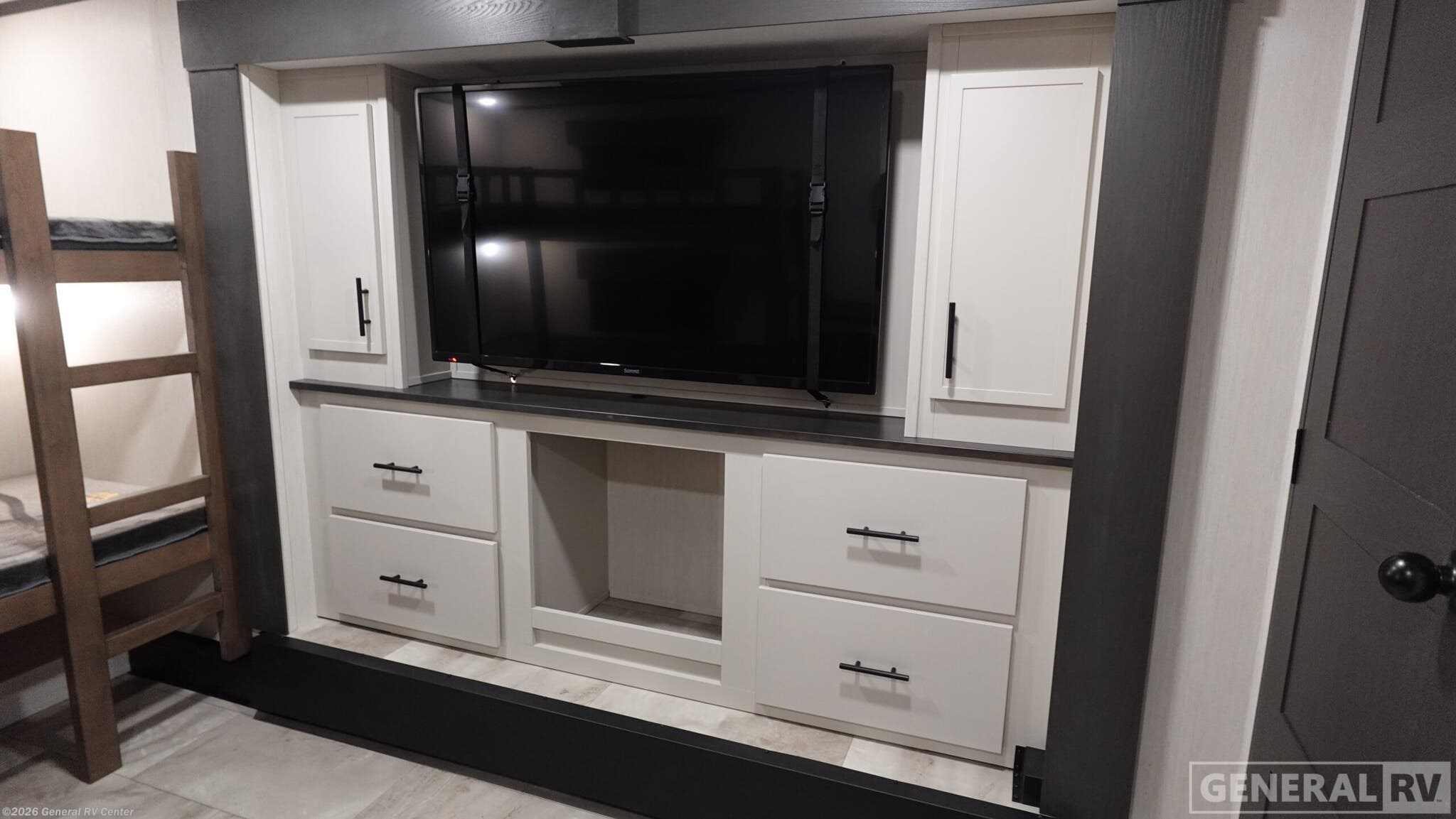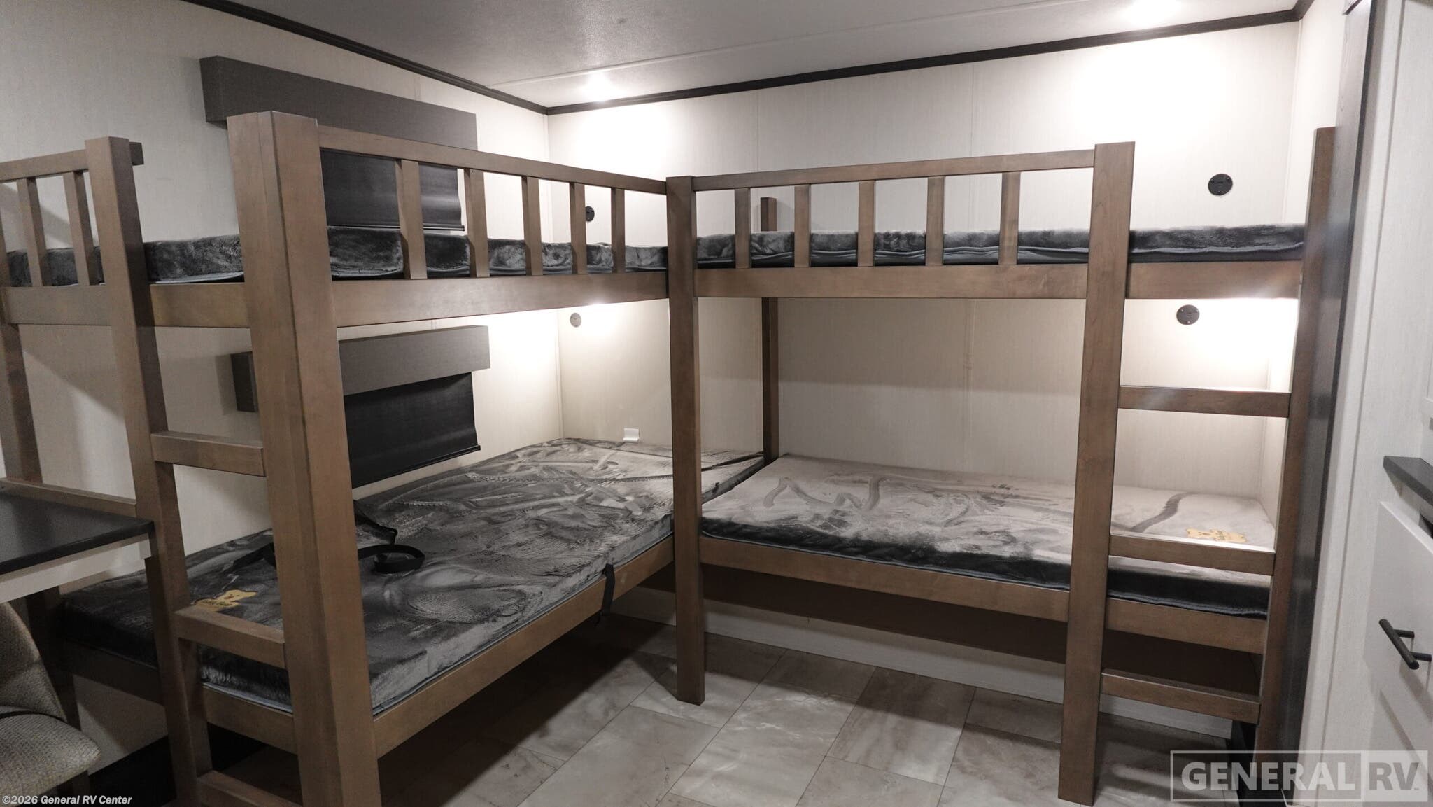 Discover the 2026 Prime Time Sanibel 39BUNK, a haven for families seeking adventure and comfort. At a generous 43 feet in length, this fifth wheel is designed to accommodate up to six sleepers, making it perfect for family trips or gatherings with friends. The spacious interior boasts four slides, providing ample room for everyone to relax and enjoy. The centrally located kitchen is a culinary delight, featuring a sleek island with a sink, surrounded by plenty of counter space for meal prep. Imagine cozy evenings in the living area, where you can unwind on the comfortable seating after a day of exploration. The Sanibel 39BUNK stands out with its thoughtful layout, including a dedicated bunk room that's ideal for kids or guests, offering privacy and comfort. With a fresh water capacity of 54 gallons and both gray and black water capacities of 78 gallons, your off-grid adventures are well-supported. The single awning extends your living space outdoors, perfect for enjoying scenic views and fresh air. Equipped with an 18,000 BTU air conditioner, this RV ensures you stay cool and comfortable no matter where your travels take you. For more details and to experience this model in person, visit your nearest General RV dealership.