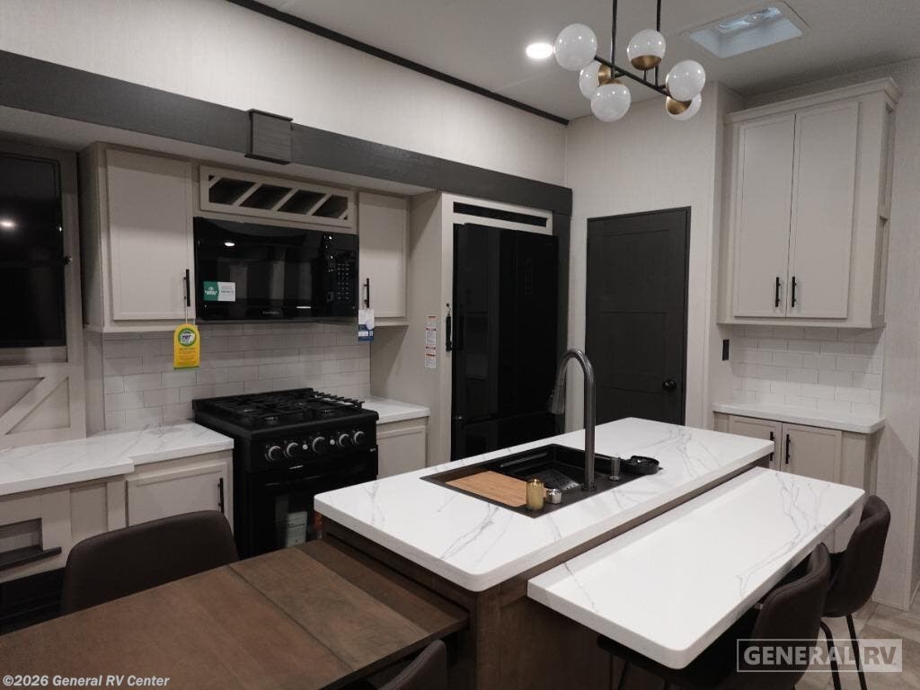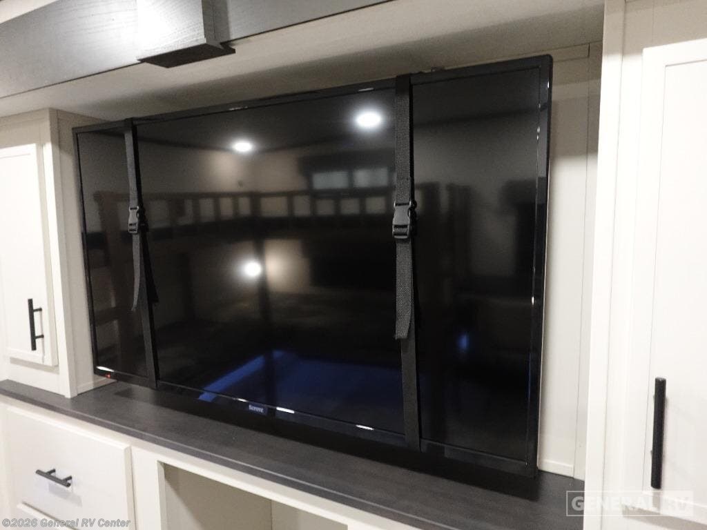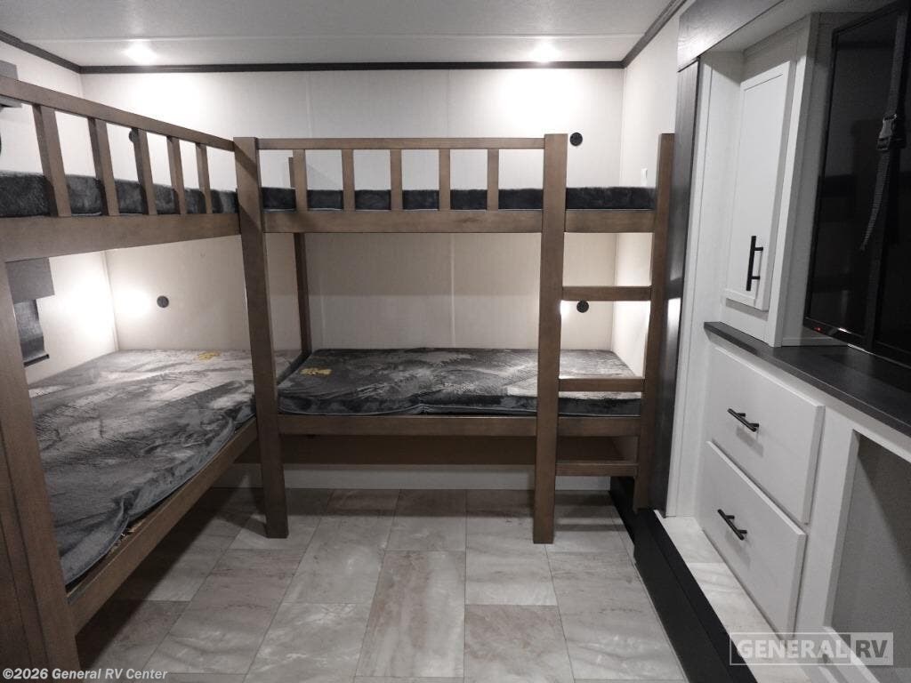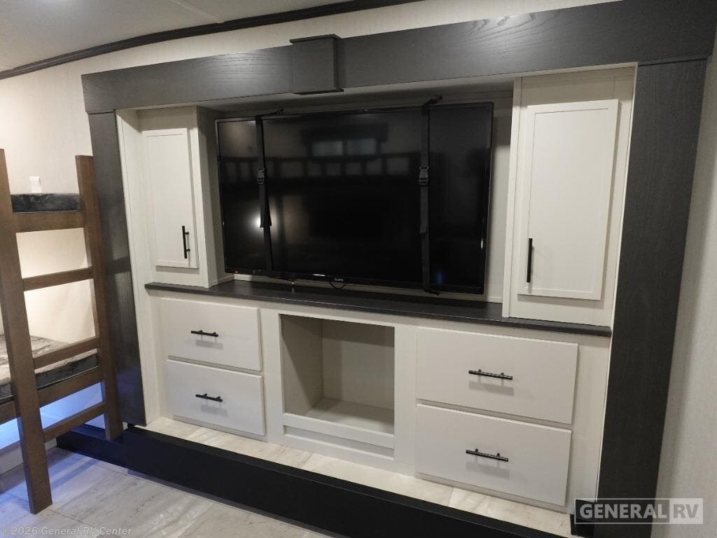 Discover the 2026 Prime Time Sanibel 39BUNK, a haven for families seeking adventure and comfort. At a generous 43 feet in length, this fifth wheel is designed to accommodate up to six sleepers, making it perfect for family trips or gatherings with friends. The spacious interior boasts four slides, providing ample room for everyone to relax and enjoy. The centrally located kitchen is a culinary delight, featuring a sleek island with a sink, surrounded by plenty of counter space for meal prep. Imagine cozy evenings in the living area, where you can unwind on the comfortable seating after a day of exploration. The Sanibel 39BUNK stands out with its thoughtful layout, including a dedicated bunk room that's ideal for kids or guests, offering privacy and comfort. With a fresh water capacity of 54 gallons and both gray and black water capacities of 78 gallons, your off-grid adventures are well-supported. The single awning extends your living space outdoors, perfect for enjoying scenic views and fresh air. Equipped with an 18,000 BTU air conditioner, this RV ensures you stay cool and comfortable no matter where your travels take you. For more details and to experience this model in person, visit your nearest General RV dealership.